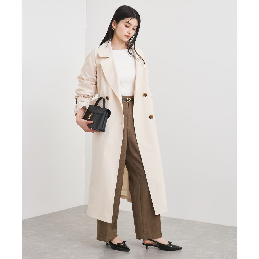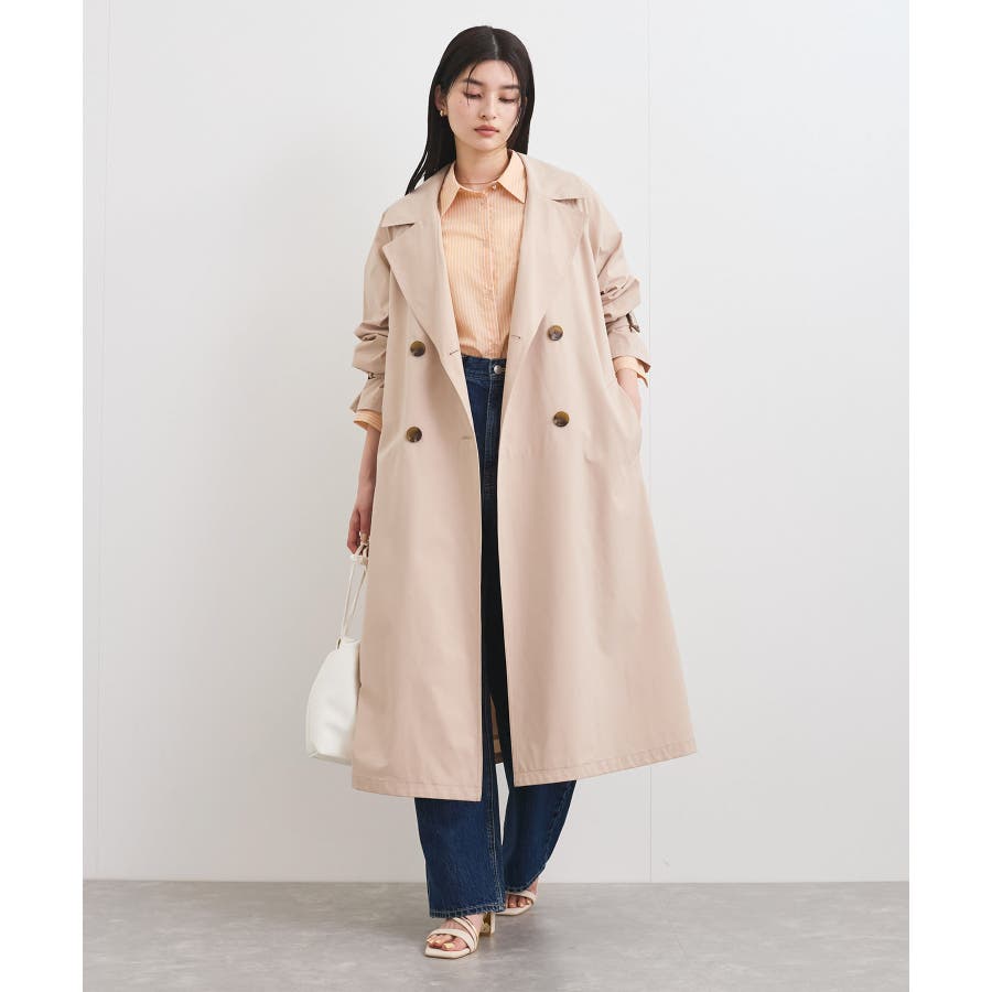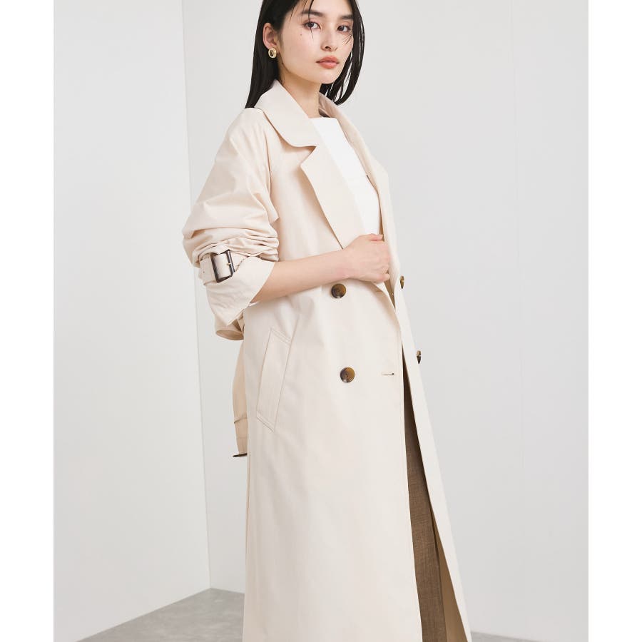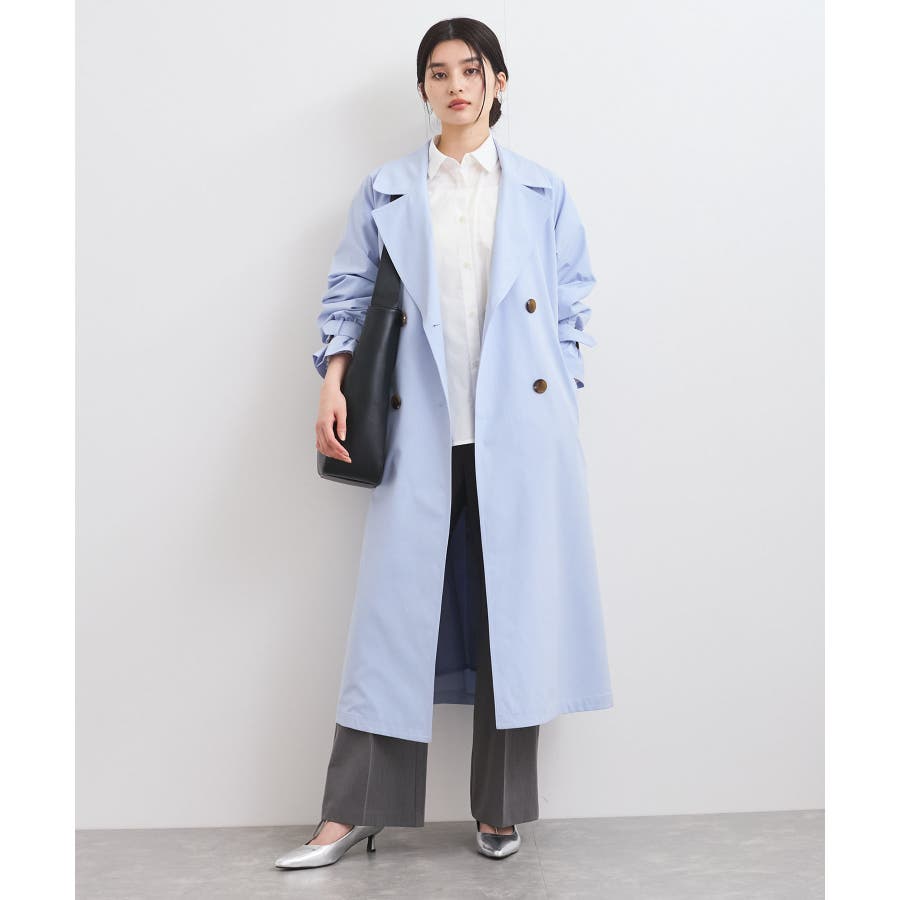 着丈が長いのでパンツ、スカートとどんなアイテムもはまりやすい万能トレンチコートです。