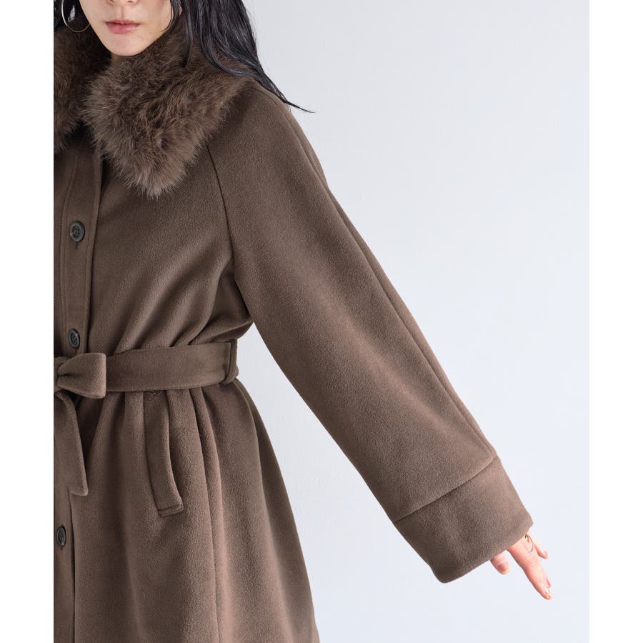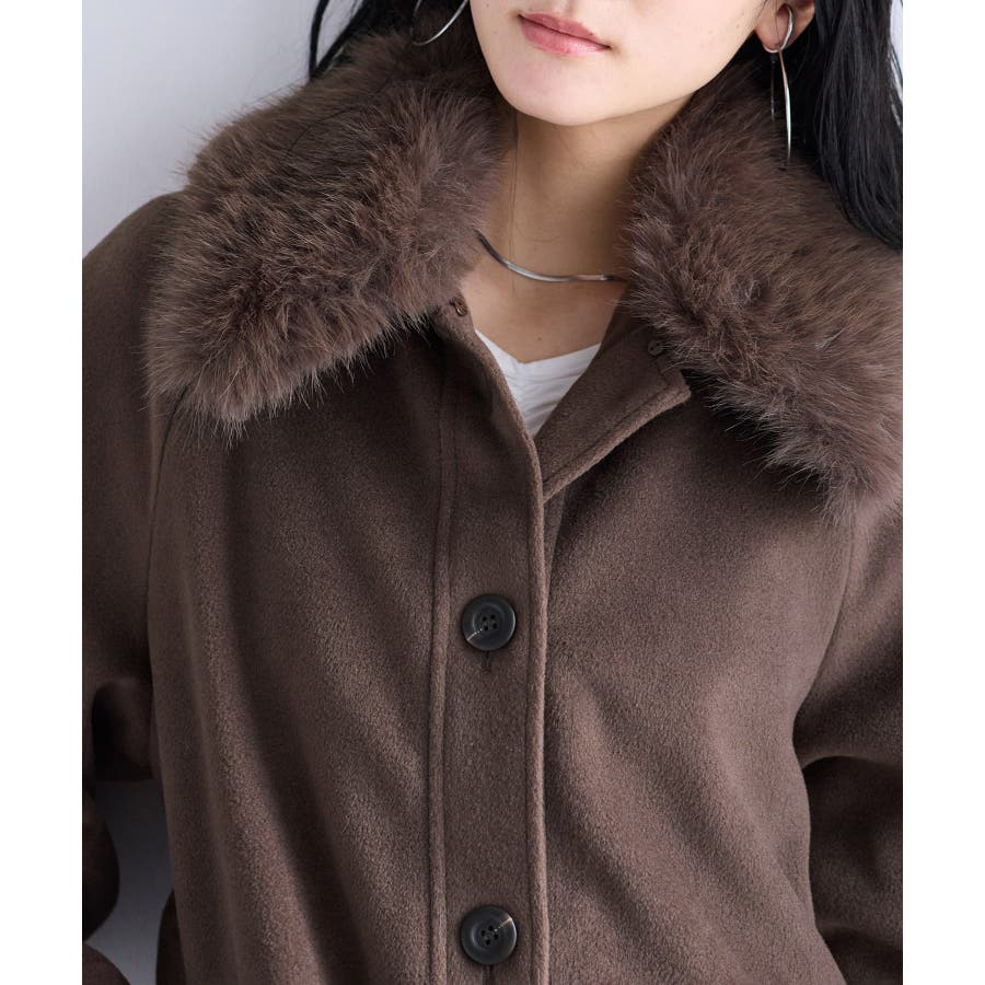 襟のファーはFOX調の毛足の長い素材。
