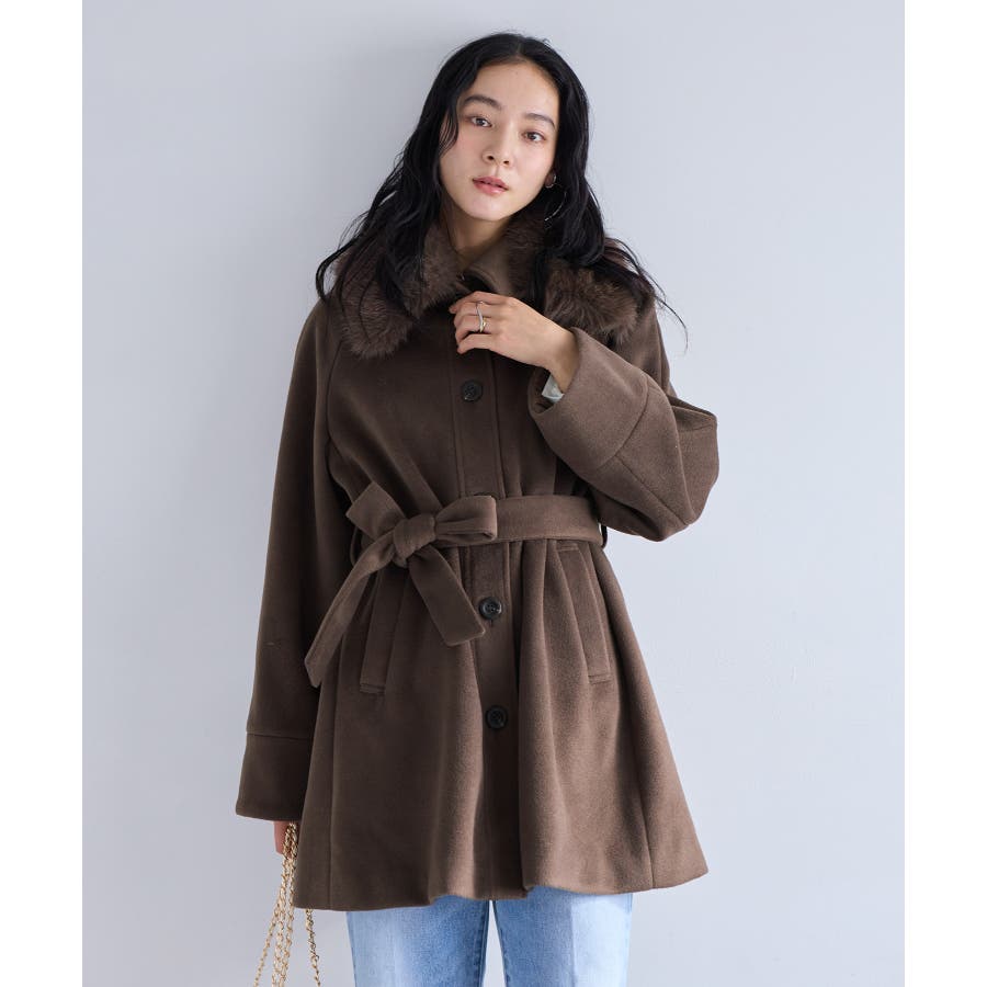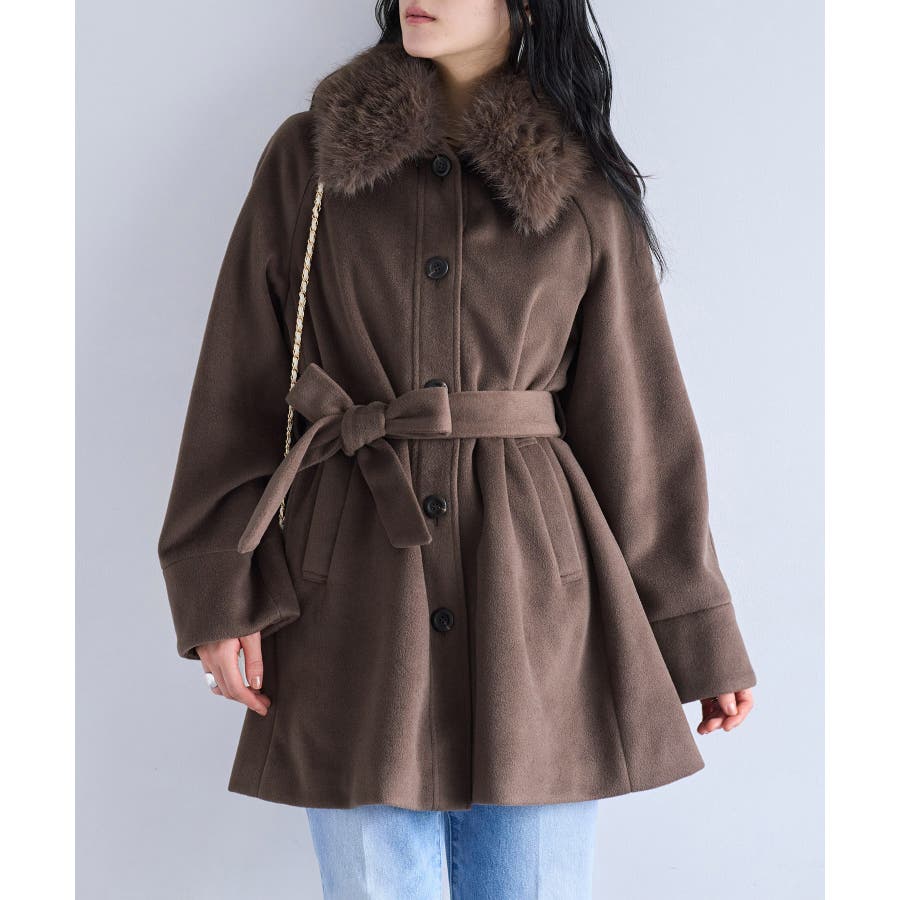 ファー付きAラインステンコート
