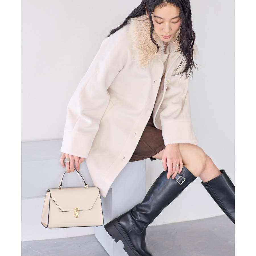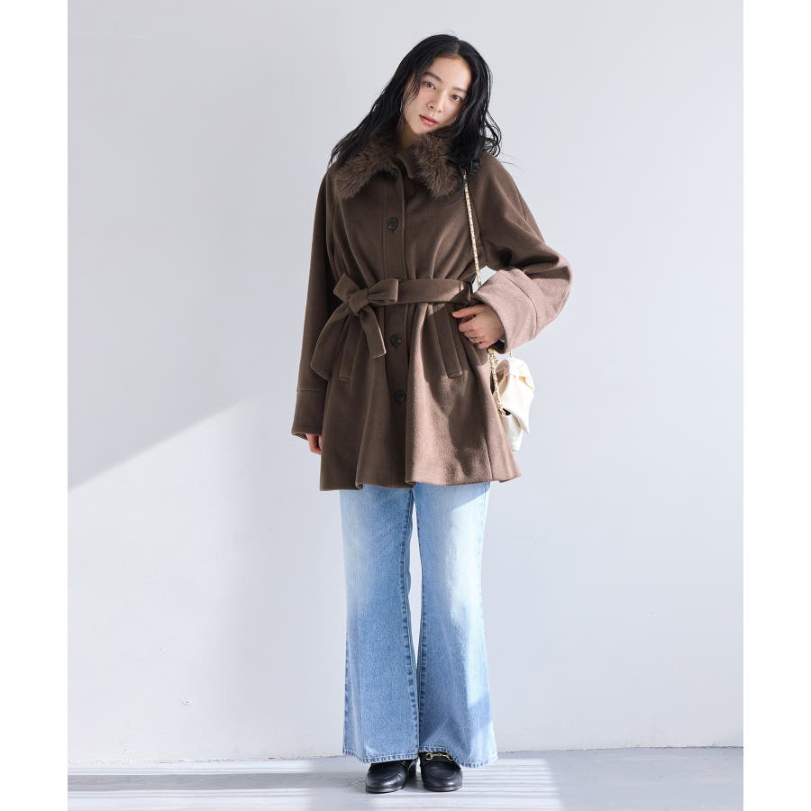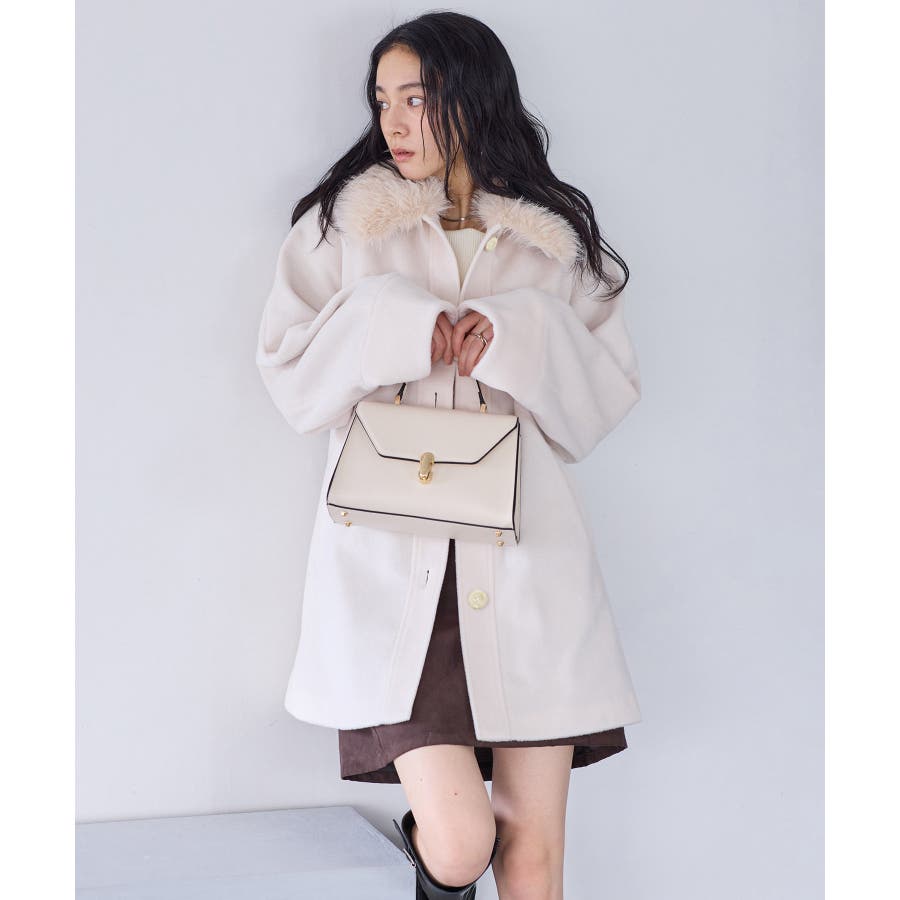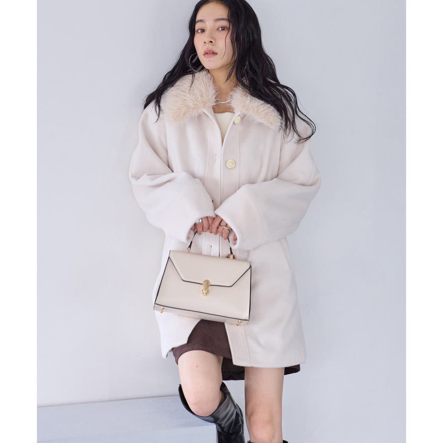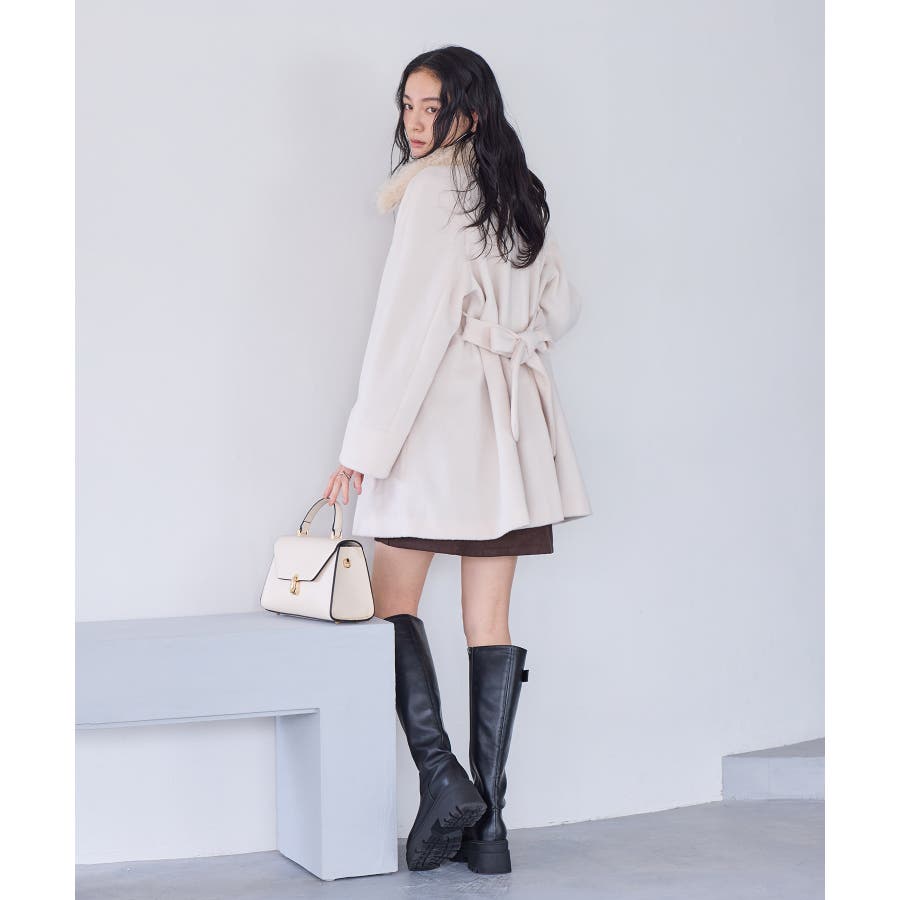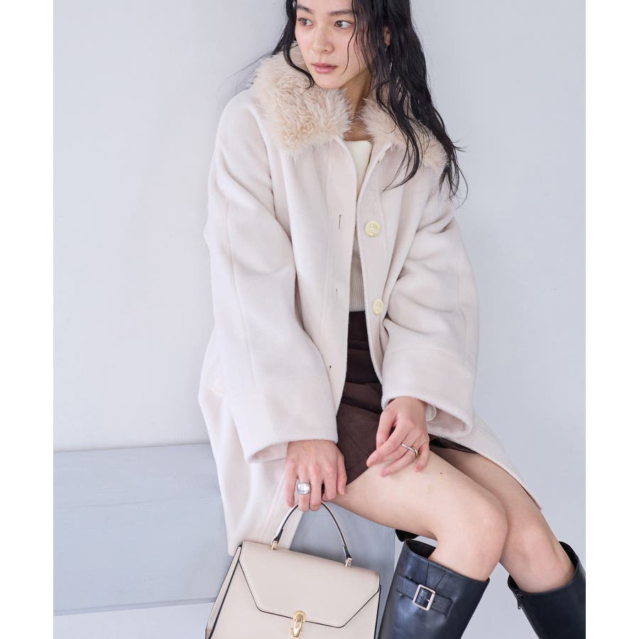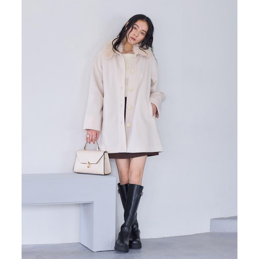 襟のファーをつけてミニボトム合わせてスタイリングして頂くのがおすすめです。