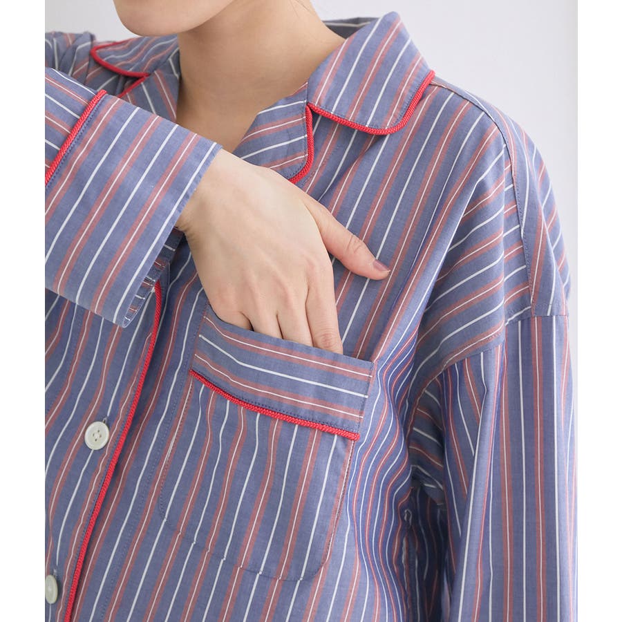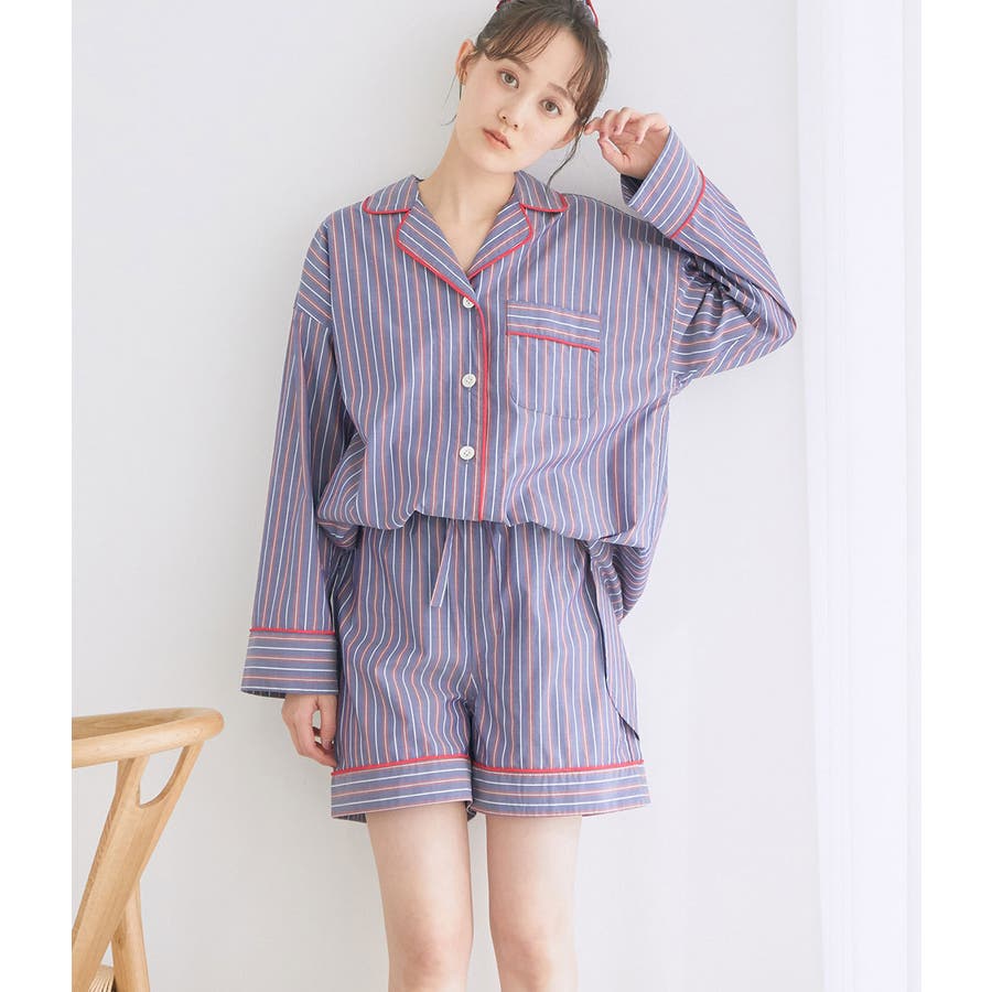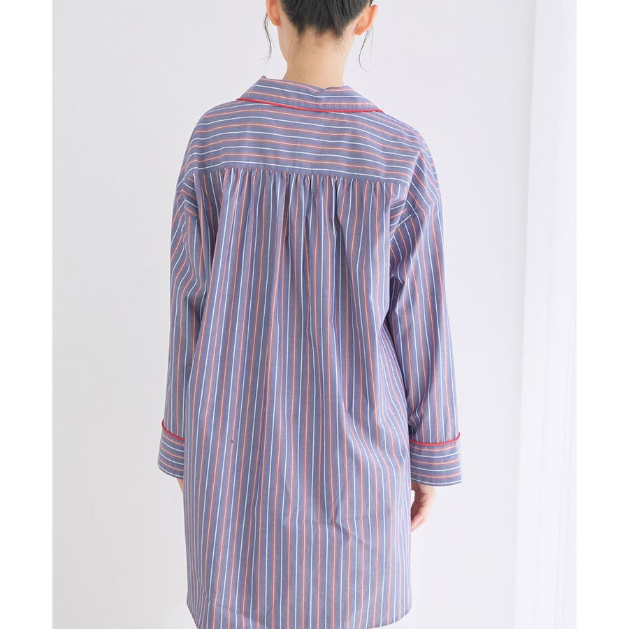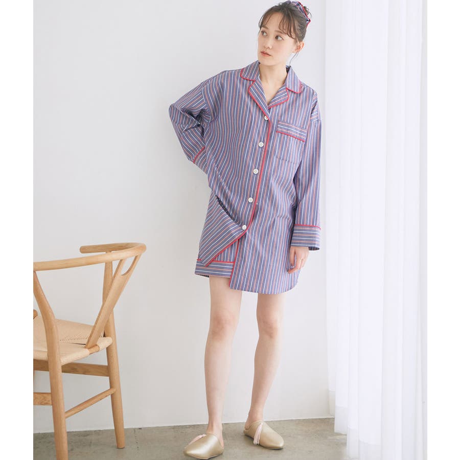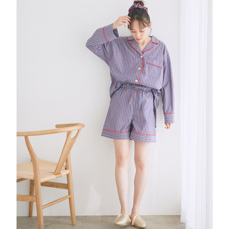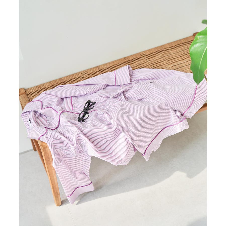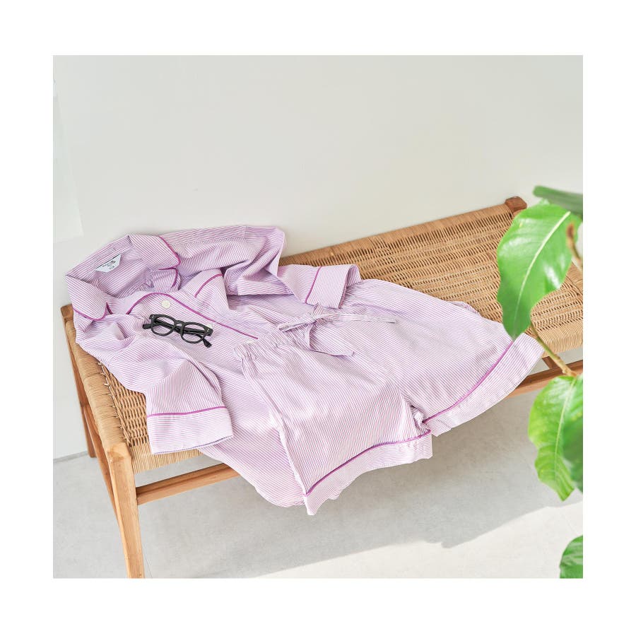 【デザイン・シルエット】 日本のシャツメーカーを代表する鎌倉シャツとのコラボレーションパジャマ 鎌倉シャツならではの、コットンの綺麗な生地で綺麗なカラーのストライプを使用しました。 チュニック丈のゆったりとしたビックサイズのチュニックシャツと、ショートパンツのセットアイテムです。 シャツの端にはカラーのコードパイピングを施して、ポイントカラーにしています。 チュニックシャツには、左胸にポケットも付いていて眼鏡やスマホなど忍ばせることもできます。 後ろはギャザーをしっかりと入れて、まるでシャツのように仕立てました。 袖丈は少し短めに設定しているので家事や作業をする時にも邪魔にならないようにしています。 夏に向けて旅行やお泊りなどの時に持って行くパジャマとしても映えるのでお勧めです! 【素材】 さらっと着心地の良いコットン素材。 【カラー】 大人の女性にぴったりな綺麗なカラーのストライプ柄2色。 【おすすめのスタイリング】 同シリーズのシュシュ(BVZ41030)を付けたり、バブーシュ(BVA41010)と一緒に着用すると、より可愛く着ていただけます。 【Maker's Shirt 鎌倉/メーカーズシャツカマクラ】 「鎌倉シャツ」の愛称で親しまれる、上質なシャツの老舗ブランド。 1993年の創業時から上質な素材を使い、縫製は全てmade in JAPAN。縫製工場をはじめ生地や副資材メーカーと直接取引することで「上質で納得価格」を実現しました。着た瞬間に虜にする着心地の良いシャツを展開しています。 ----------------------------- 裏地:なし 光沢感:なし 透け感:なし ウエスト:ゴム ポケット:あり 伸縮性:なし 生地の厚さ:普通 ----------------------------- 【モデル着用サイズ】 全色モデル身長:166cm、着用サイズ:F ※画像の商品はサンプルです。 実際の商品と仕様、加工、サイズが若干異なる場合がございます。 ※室外で撮影している画像は、光の影響で色味が若干異なって見える場合がございます。
