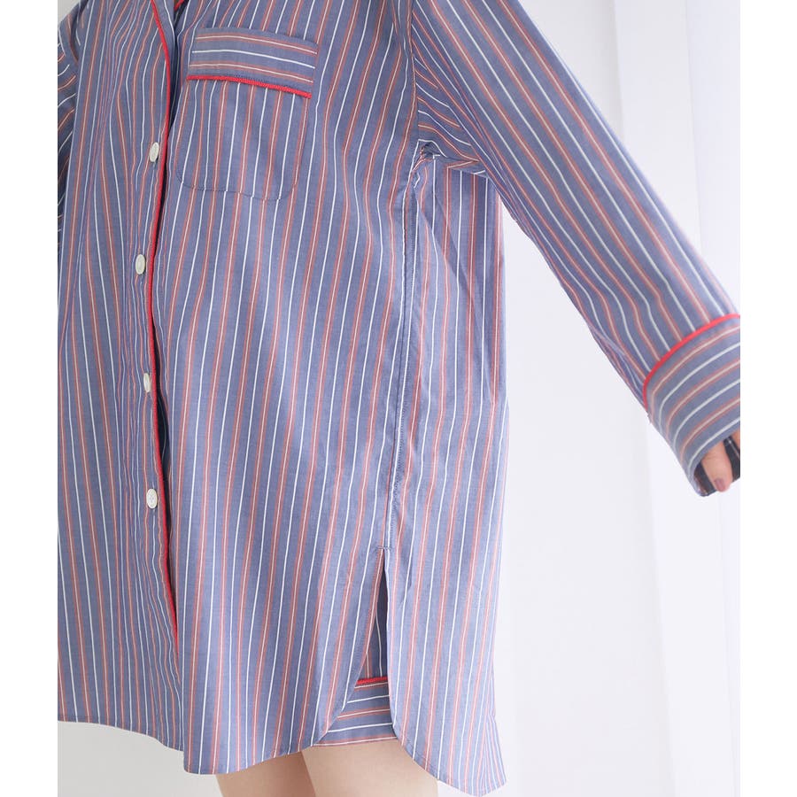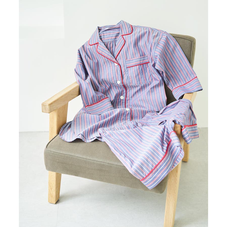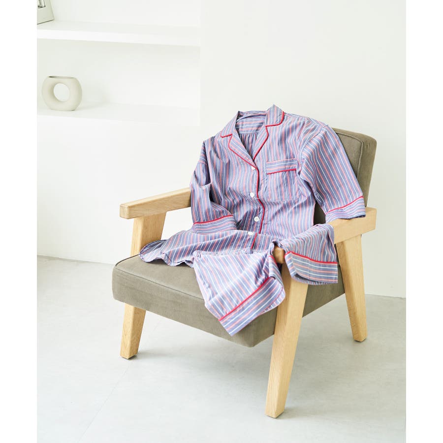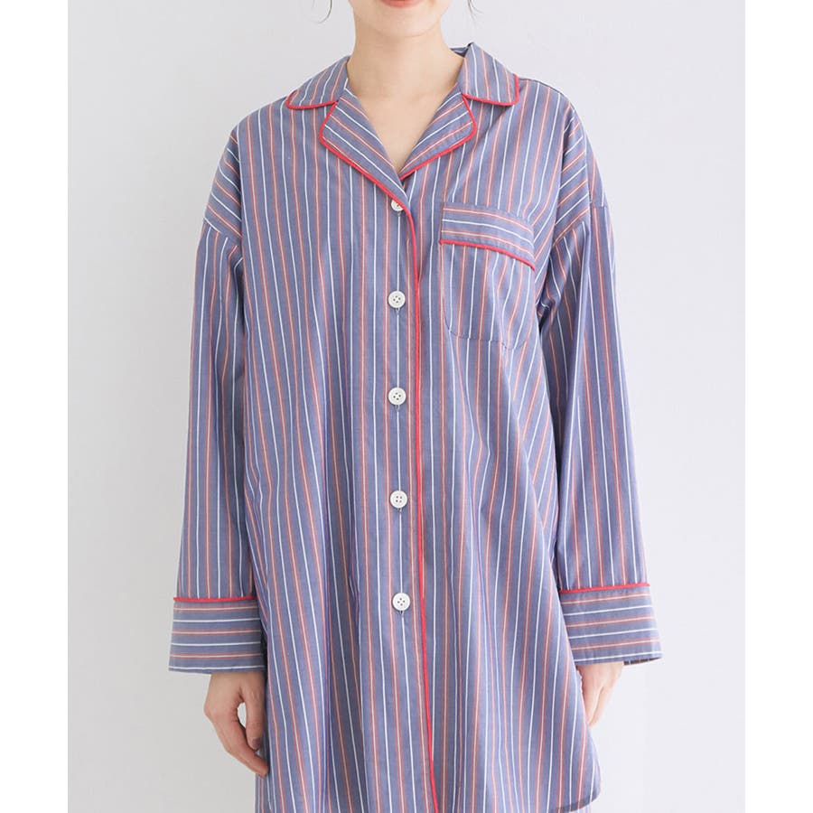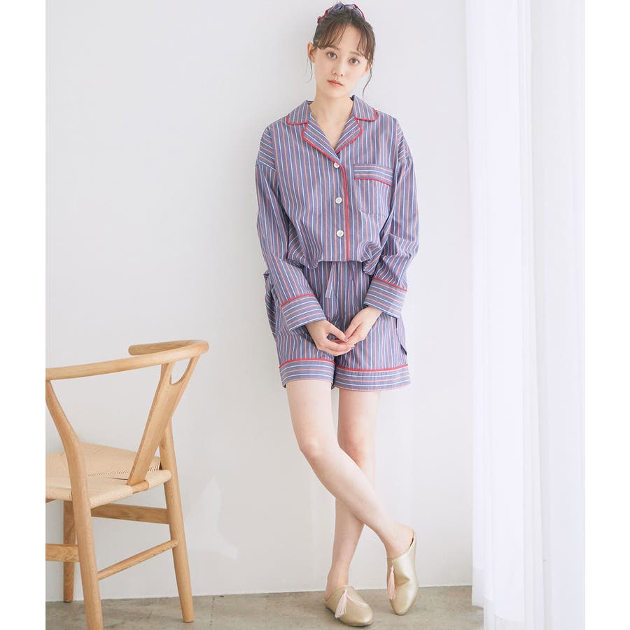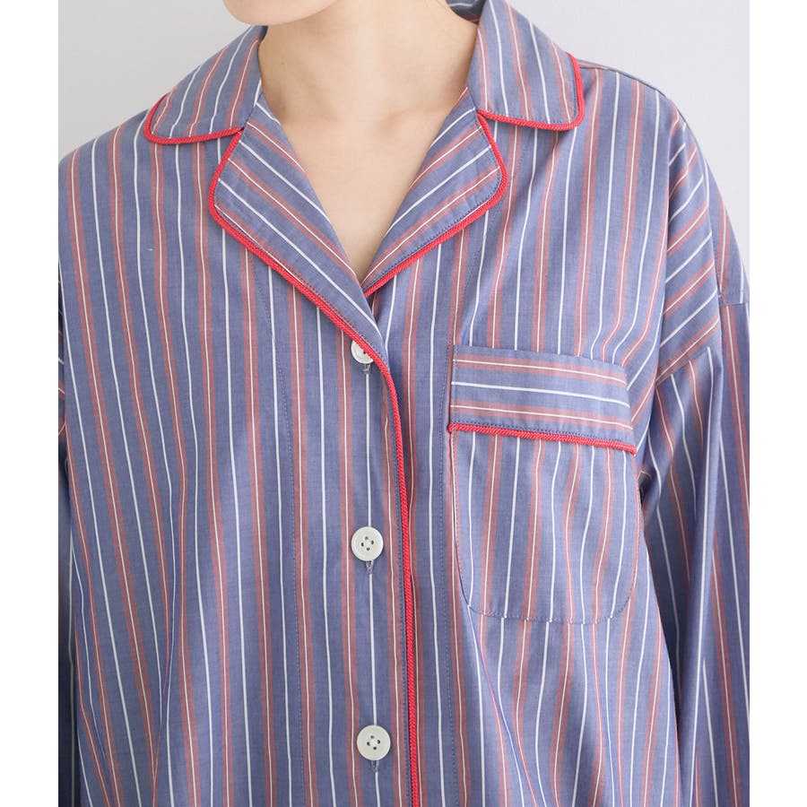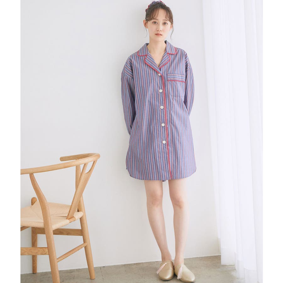 【デザイン・シルエット】 日本のシャツメーカーを代表する鎌倉シャツとのコラボレーションパジャマ 鎌倉シャツならではの、コットンの綺麗な生地で綺麗なカラーのストライプを使用しました。 チュニック丈のゆったりとしたビックサイズのチュニックシャツと、ショートパンツのセットアイテムです。 シャツの端にはカラーのコードパイピングを施して、ポイントカラーにしています。 チュニックシャツには、左胸にポケットも付いていて眼鏡やスマホなど忍ばせることもできます。 後ろはギャザーをしっかりと入れて、まるでシャツのように仕立てました。 袖丈は少し短めに設定しているので家事や作業をする時にも邪魔にならないようにしています。 夏に向けて旅行やお泊りなどの時に持って行くパジャマとしても映えるのでお勧めです! 【素材】 さらっと着心地の良いコットン素材。 【カラー】 大人の女性にぴったりな綺麗なカラーのストライプ柄2色。 【おすすめのスタイリング】 同シリーズのシュシュ(BVZ41030)を付けたり、バブーシュ(BVA41010)と一緒に着用すると、より可愛く着ていただけます。 【Maker's Shirt 鎌倉/メーカーズシャツカマクラ】 「鎌倉シャツ」の愛称で親しまれる、上質なシャツの老舗ブランド。 1993年の創業時から上質な素材を使い、縫製は全てmade in JAPAN。縫製工場をはじめ生地や副資材メーカーと直接取引することで「上質で納得価格」を実現しました。着た瞬間に虜にする着心地の良いシャツを展開しています。 ----------------------------- 裏地:なし 光沢感:なし 透け感:なし ウエスト:ゴム ポケット:あり 伸縮性:なし 生地の厚さ:普通 ----------------------------- 【モデル着用サイズ】 全色モデル身長:166cm、着用サイズ:F ※画像の商品はサンプルです。 実際の商品と仕様、加工、サイズが若干異なる場合がございます。 ※室外で撮影している画像は、光の影響で色味が若干異なって見える場合がございます。