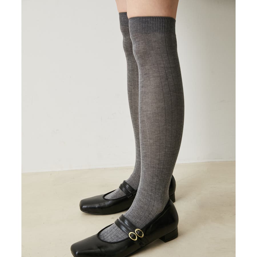 リブニットニーハイソックス
