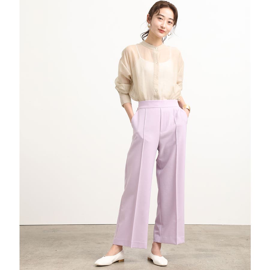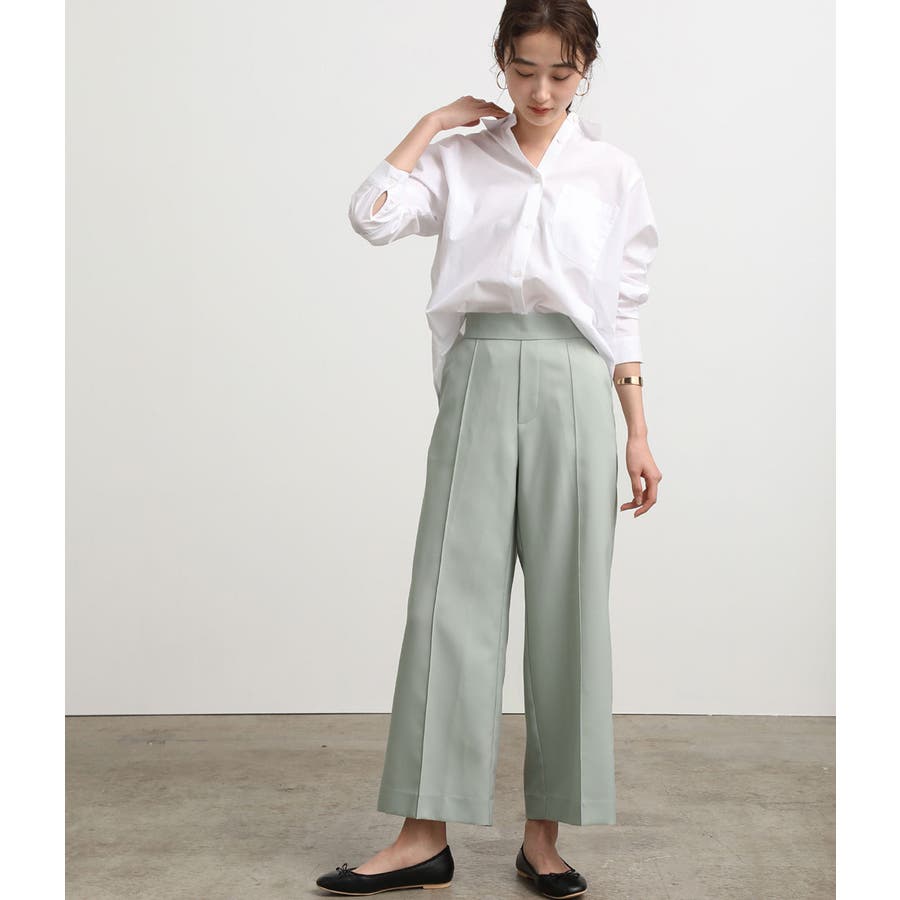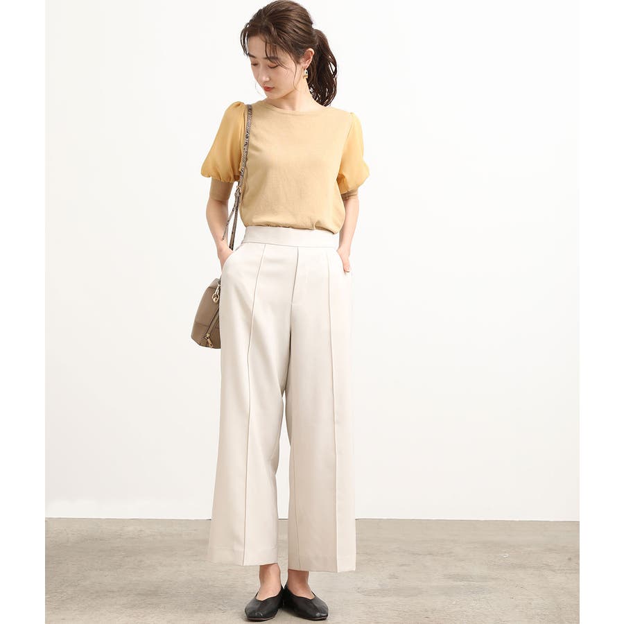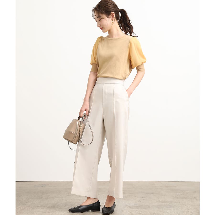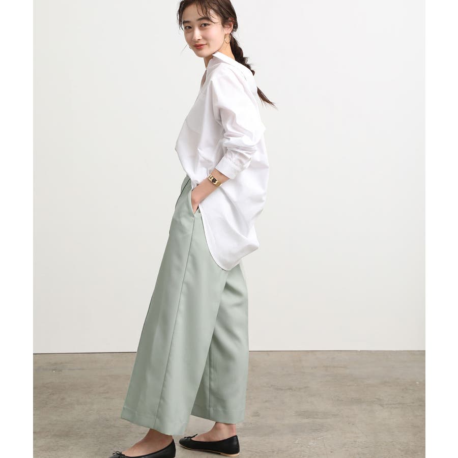 きれいめに仕上げたワイドパンツ。 リラックス感のあるシルエットながら、センターにあしらったピンタックがスラリと脚長効果を発揮してくれます。 トップスは裾インでスッキリとウエストを見せるとメリハリ感が際立って女性らしさも際立ちます。