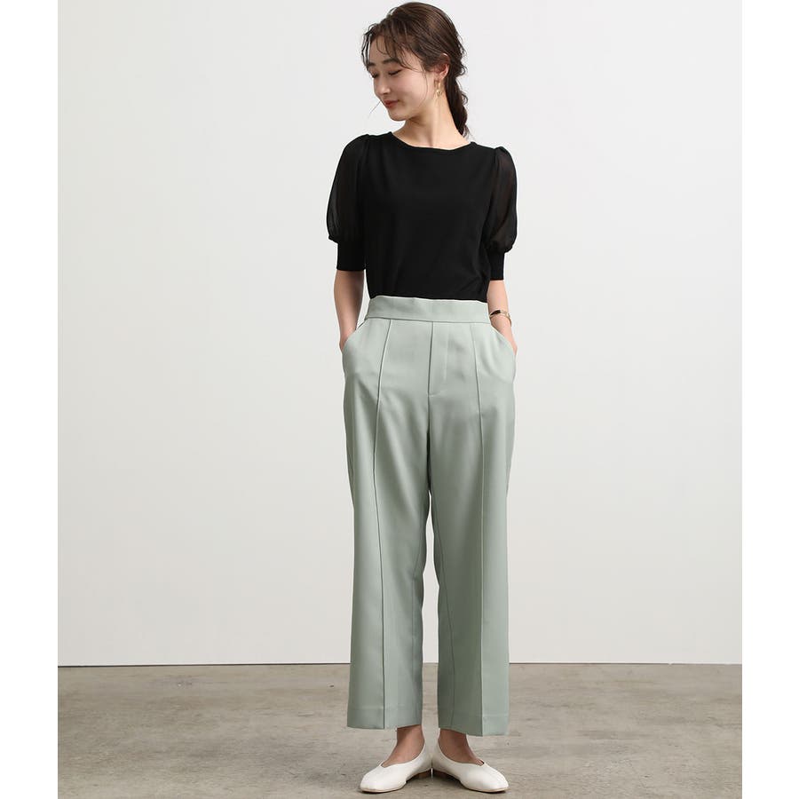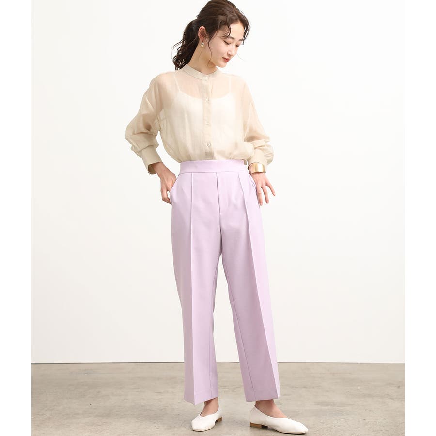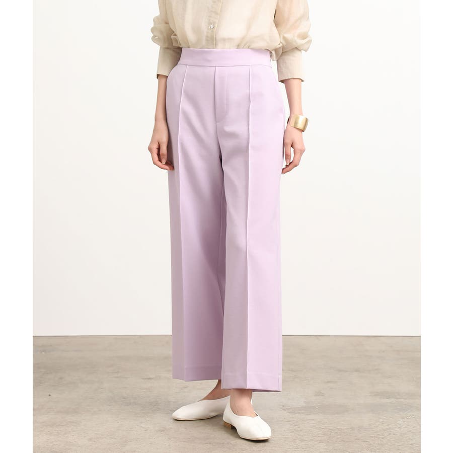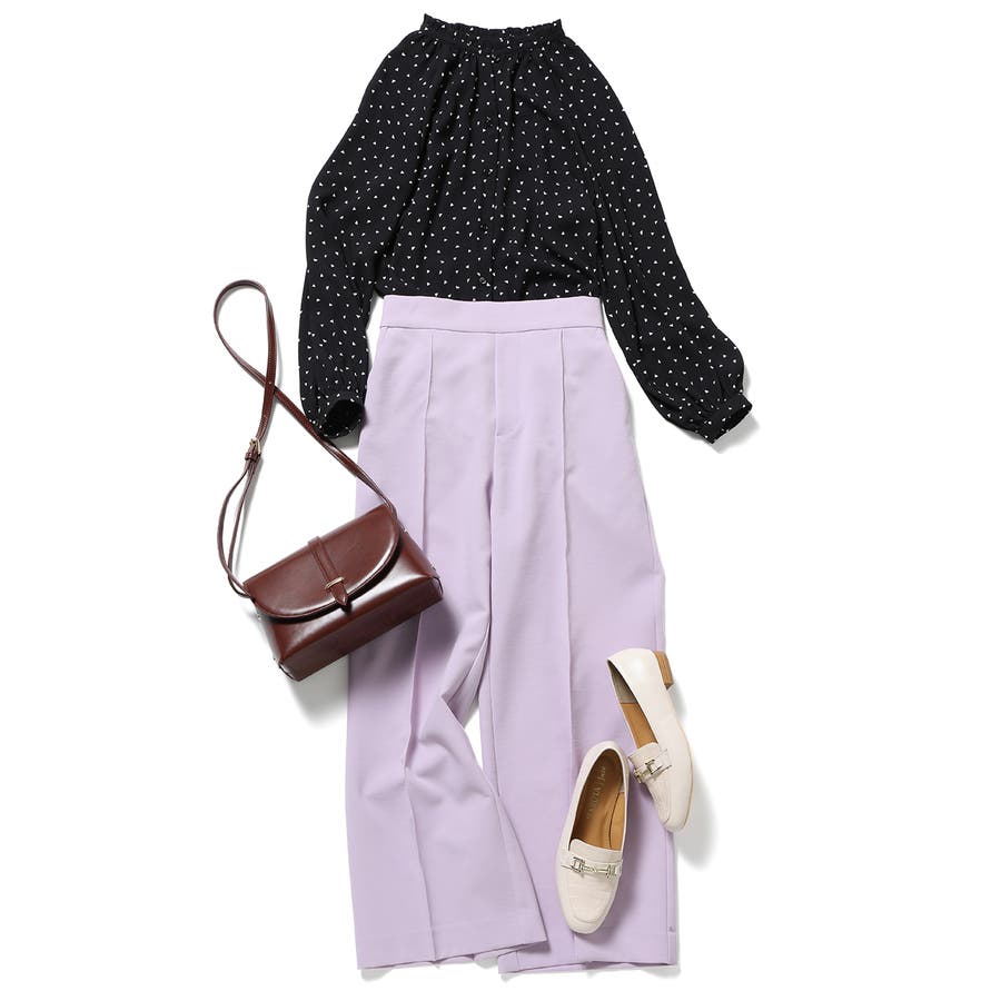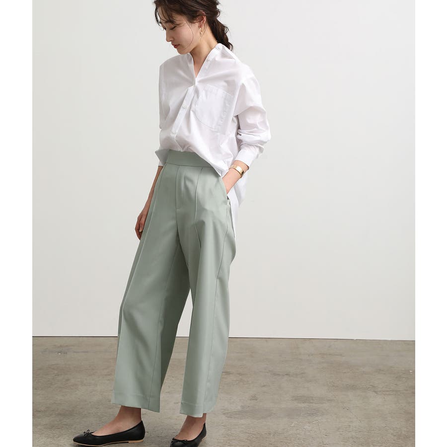 きれいめに仕上げたワイドパンツ。 リラックス感のあるシルエットながら、センターにあしらったピンタックがスラリと脚長効果を発揮してくれます。 トップスは裾インでスッキリとウエストを見せるとメリハリ感が際立って女性らしさも際立ちます。