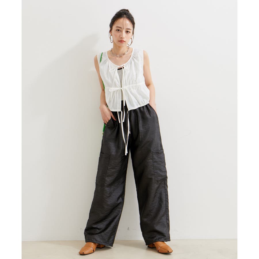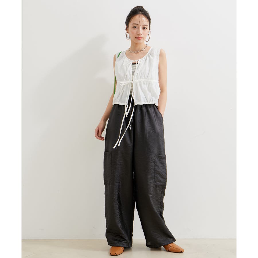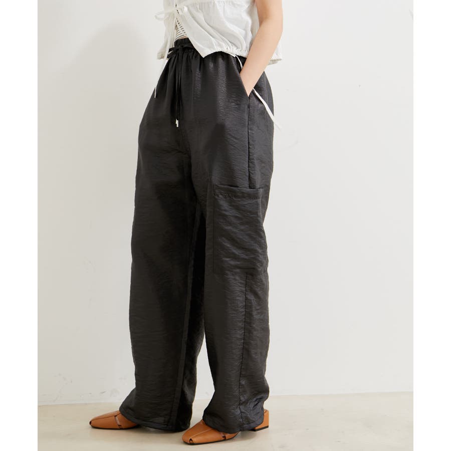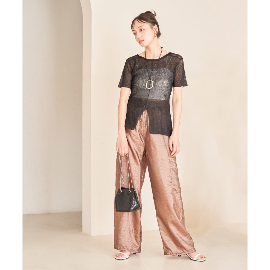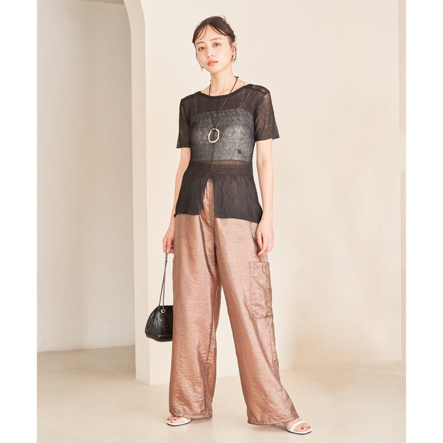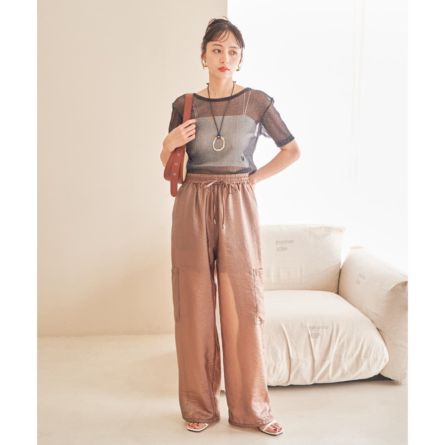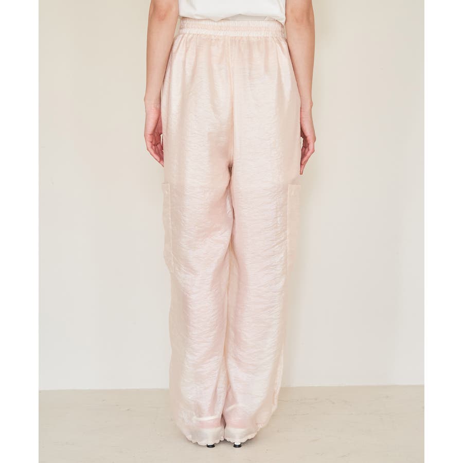 ◆2024春夏◆ 【デザイン・シルエット】 ウエストのオールゴム仕様がリラックス感もあり、シアー素材で夏のスタリングをオシャレにできるカーゴパンツです。