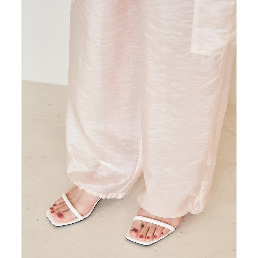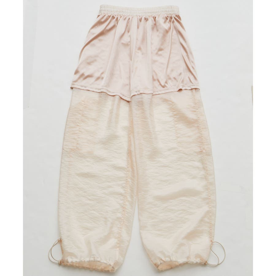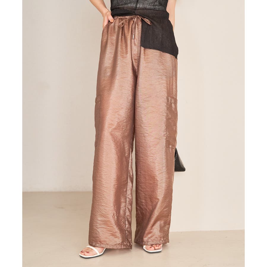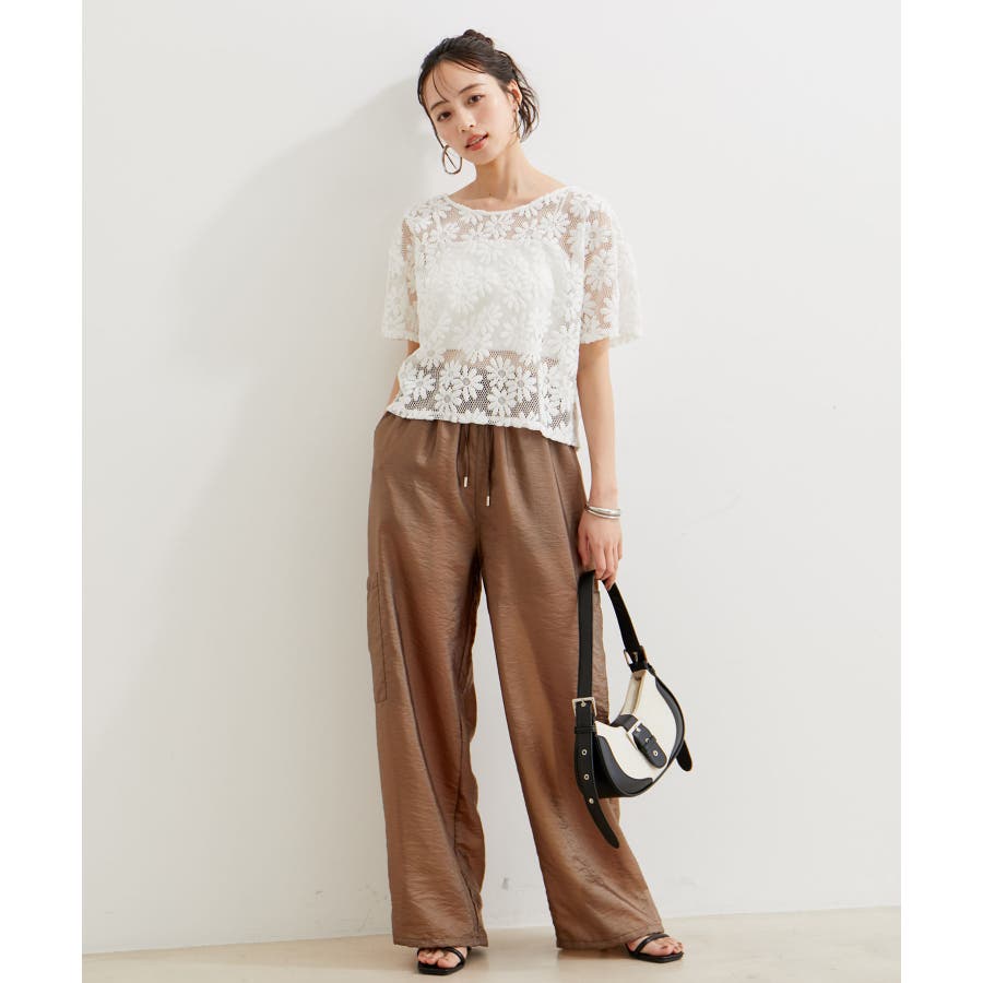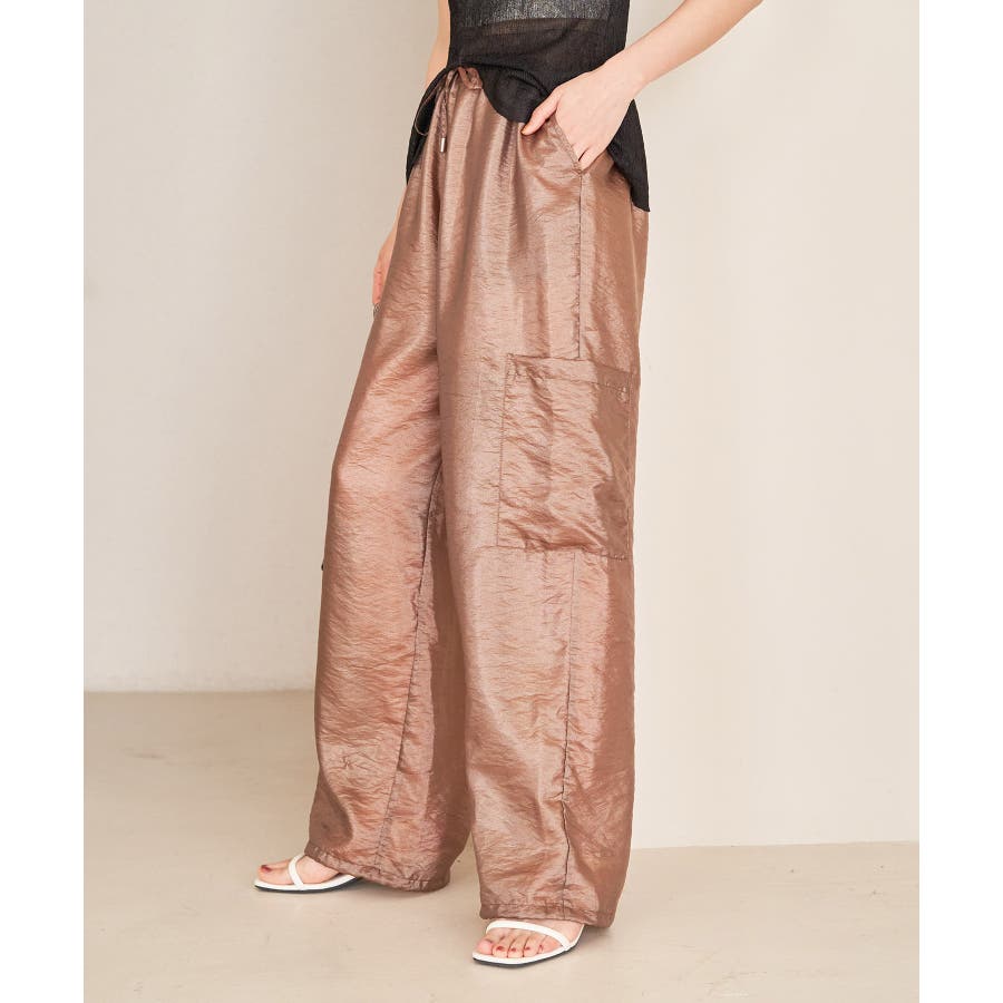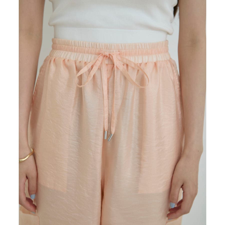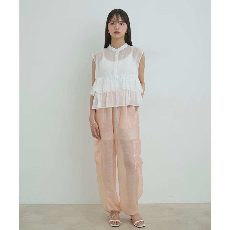 ◆2024春夏◆ 【デザイン・シルエット】 ウエストのオールゴム仕様がリラックス感もあり、シアー素材で夏のスタリングをオシャレにできるカーゴパンツです。