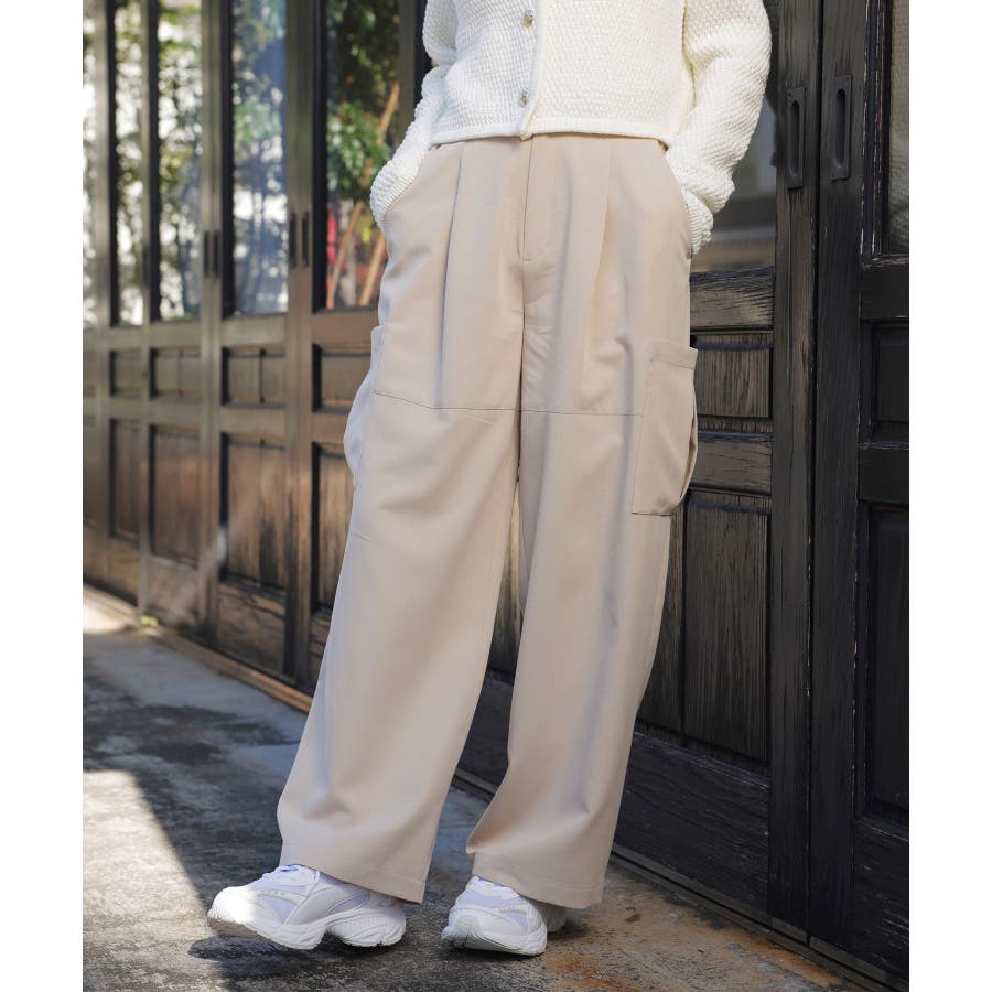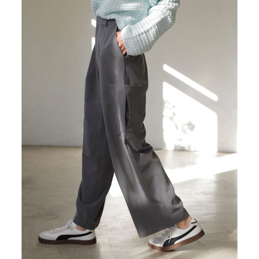 ◆2025春夏◆ 【デザイン・シルエット】 リラックス感のあるルーズストレートのシルエットのカーゴデザインパンツ。 素材は綺麗めな素材を使用しているので、スタイリングに抜け感を演出してくれます。
