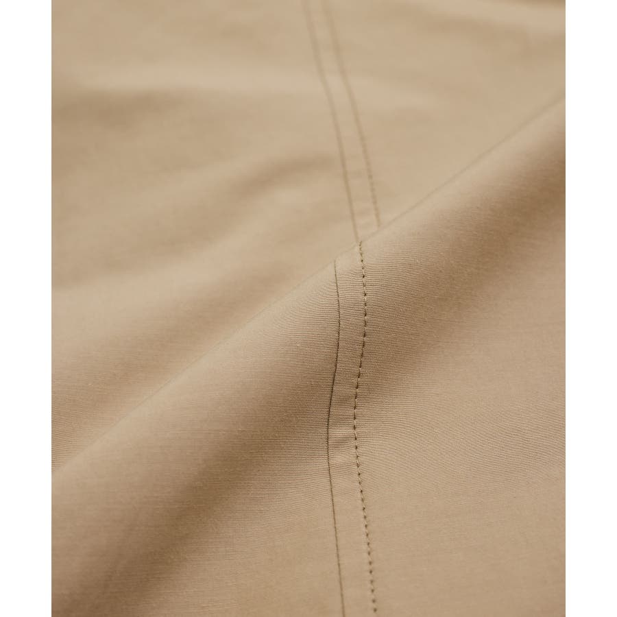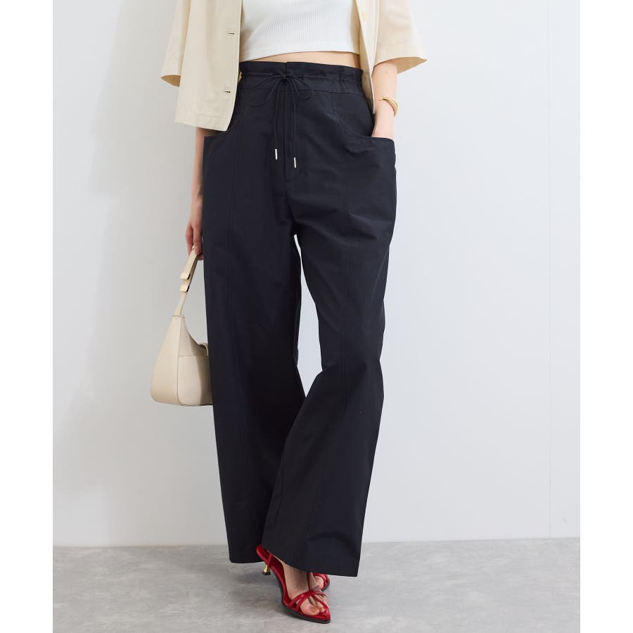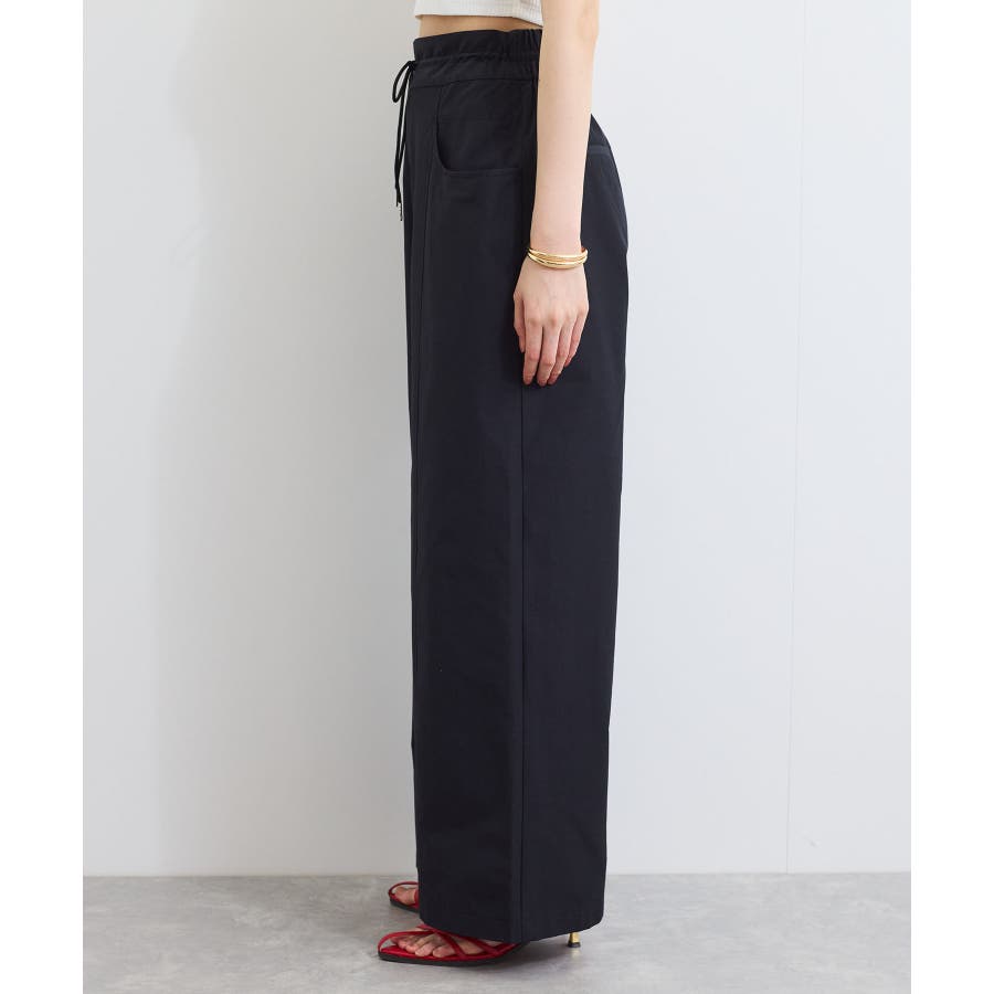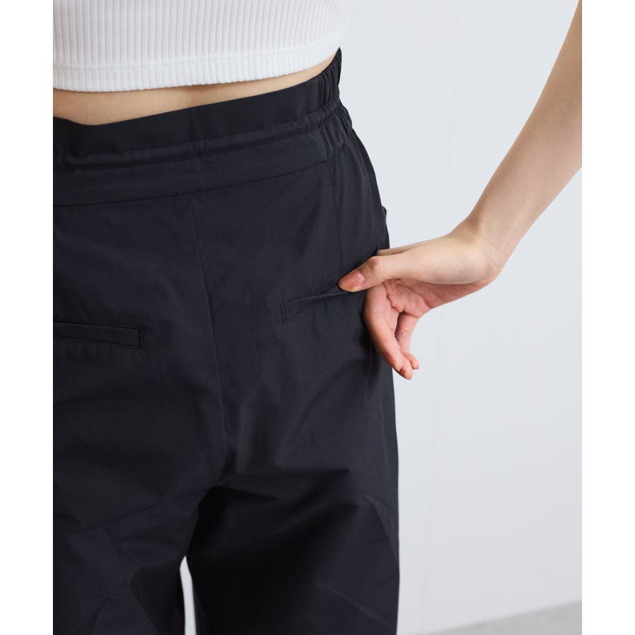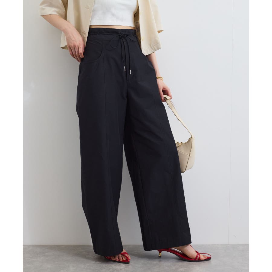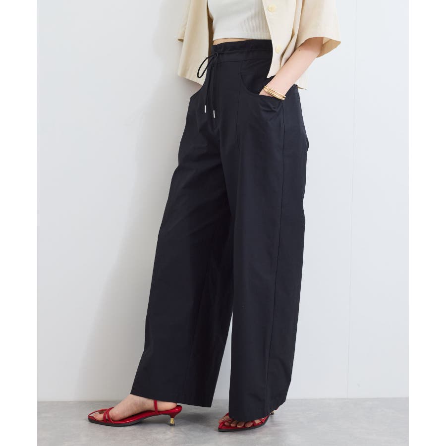 ウエスト周りはドロストコードで、バックにゴムを入れているのでフロントはすっきりとした印象に。