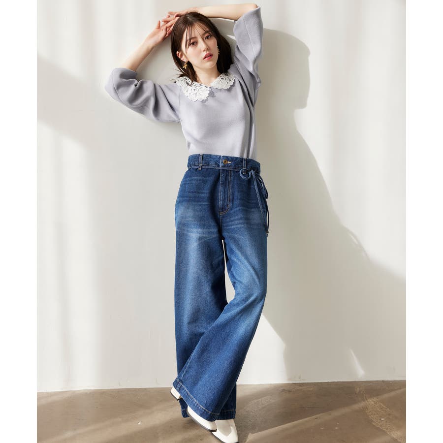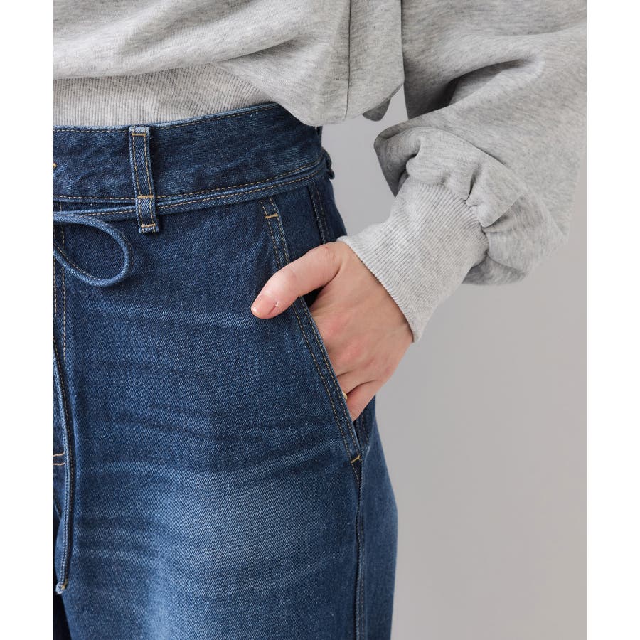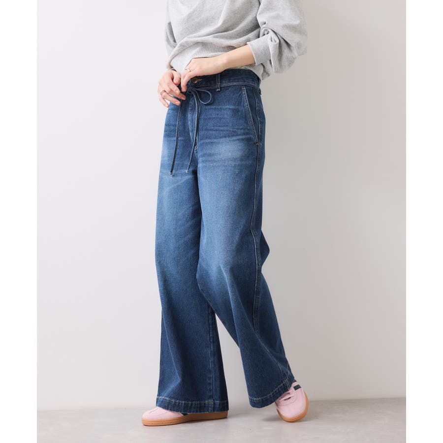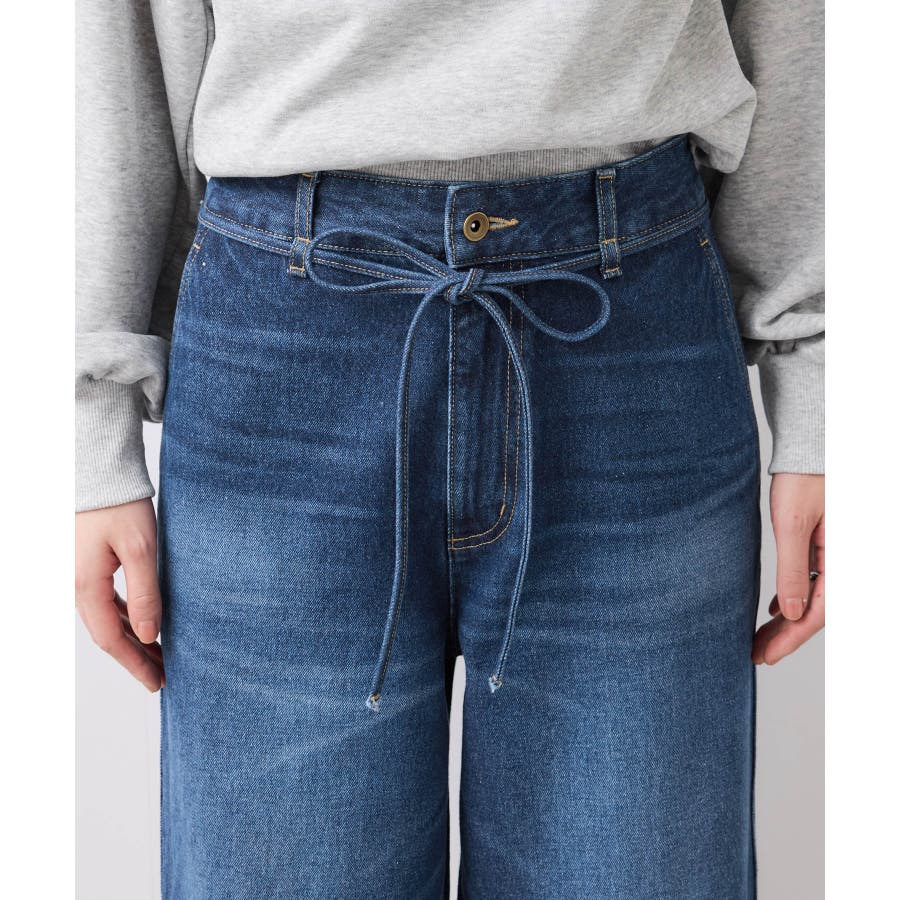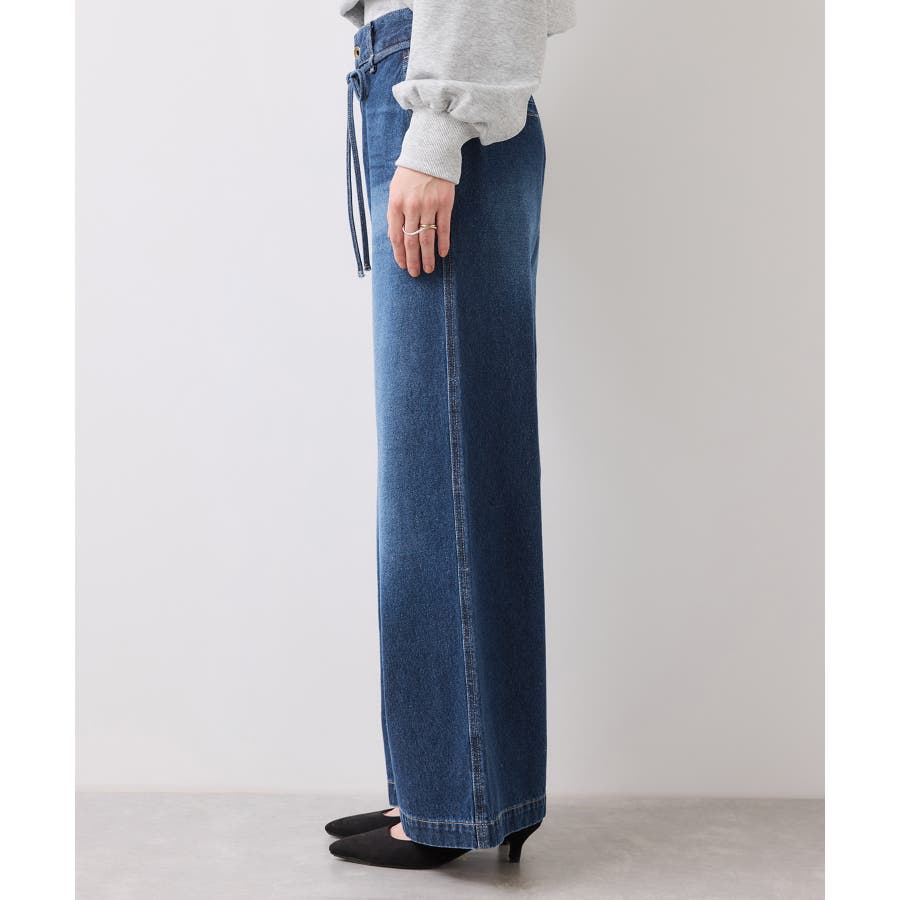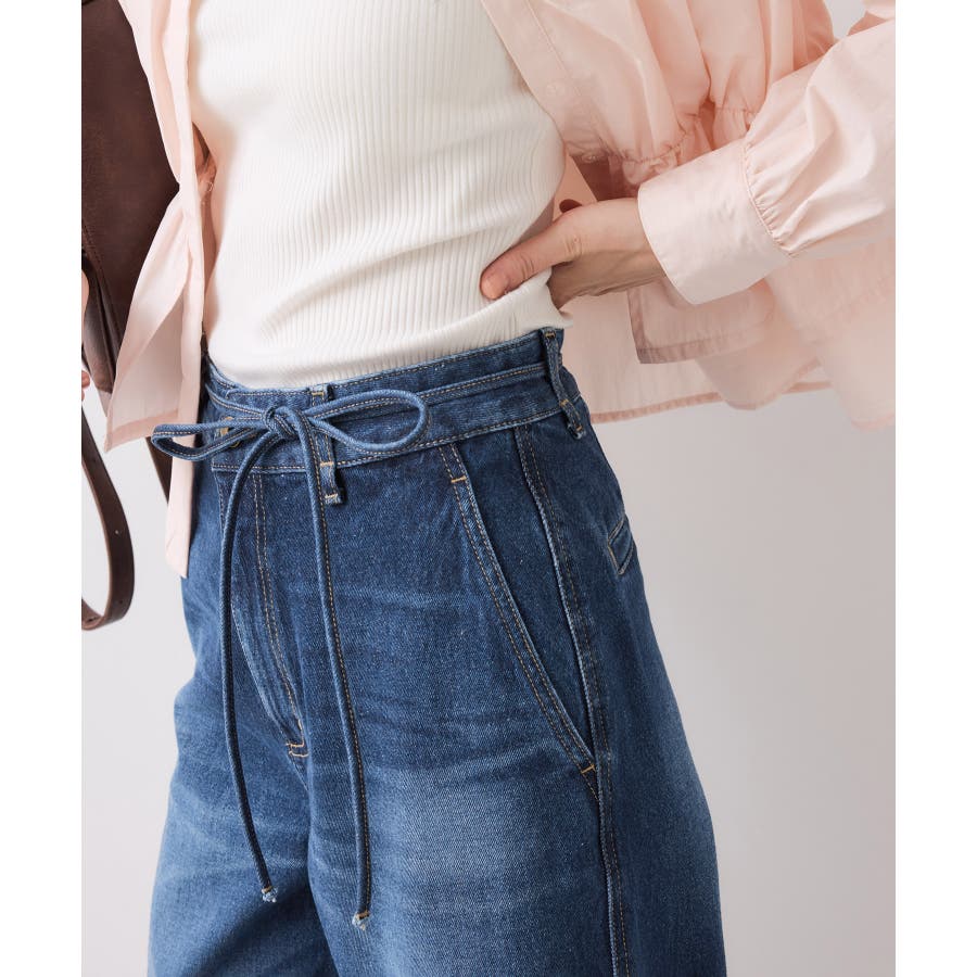 ベルト付きワイドシルエットデニムパンツ