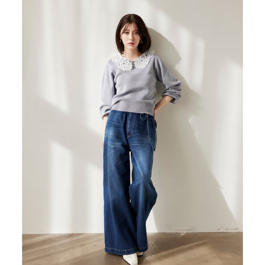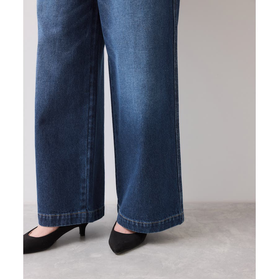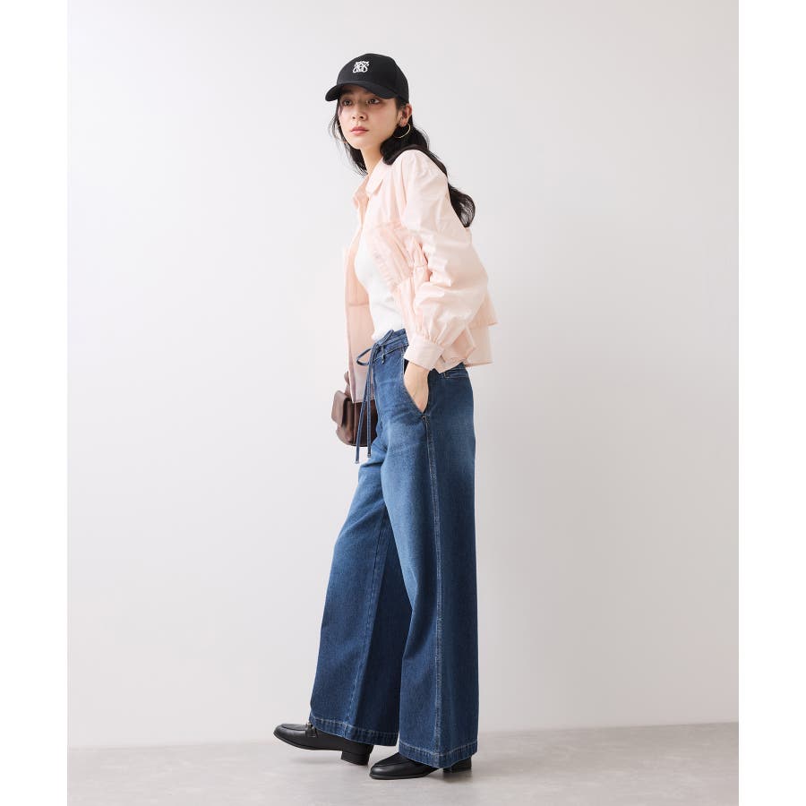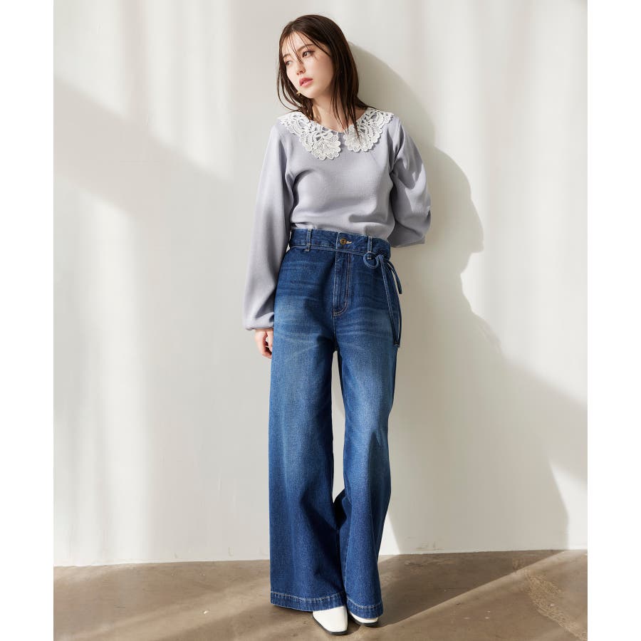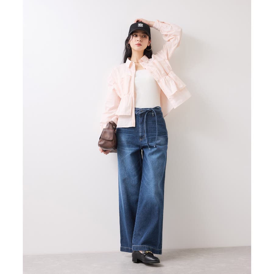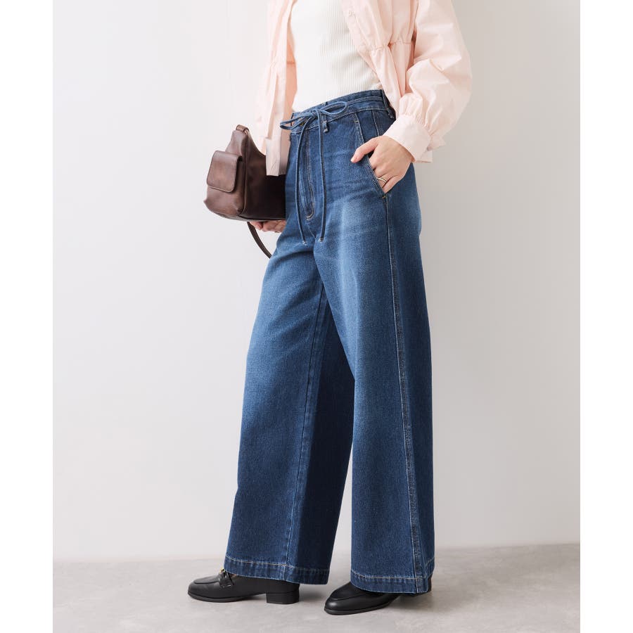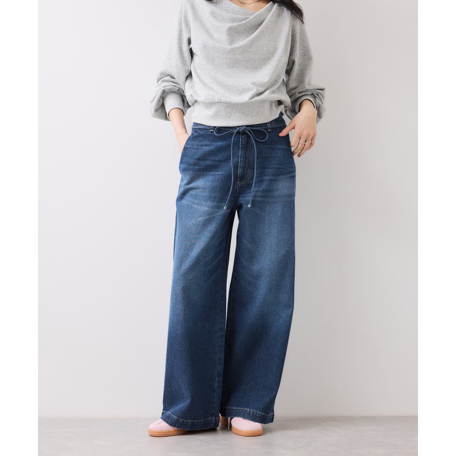 ベルト付きワイドシルエットデニムパンツ