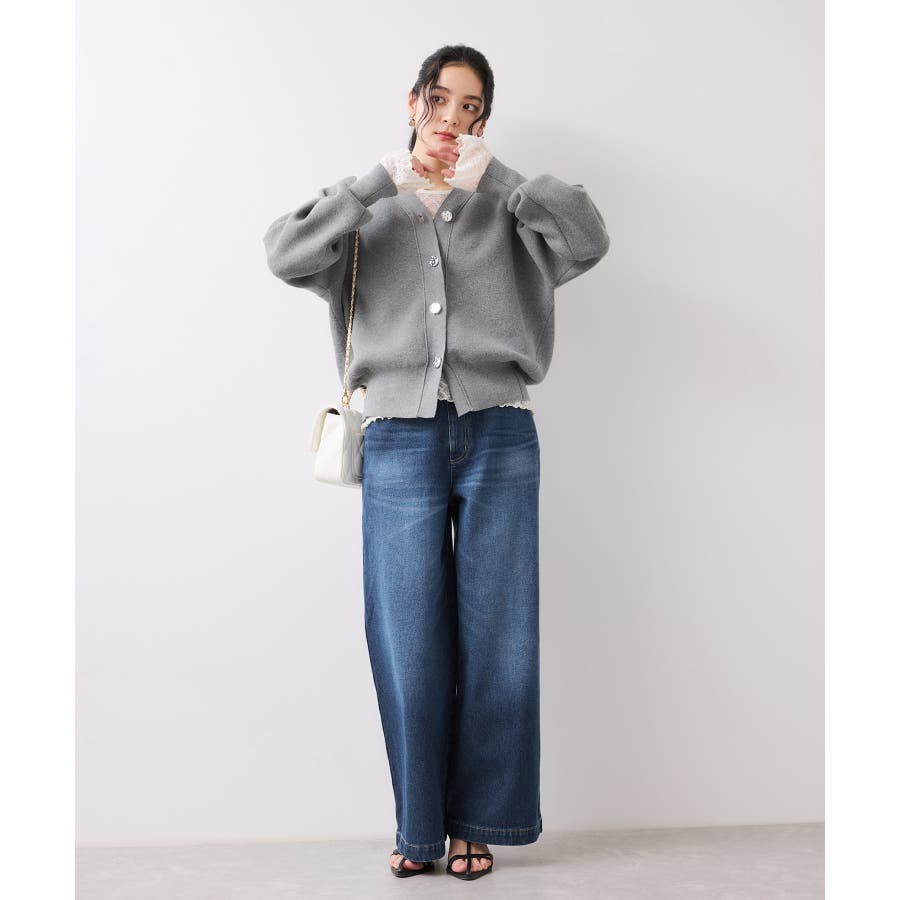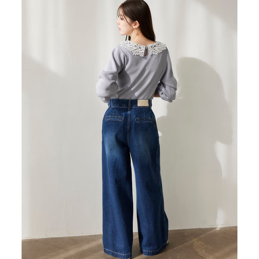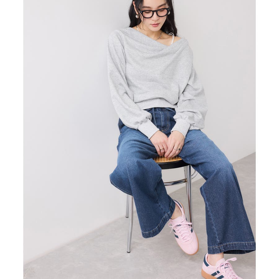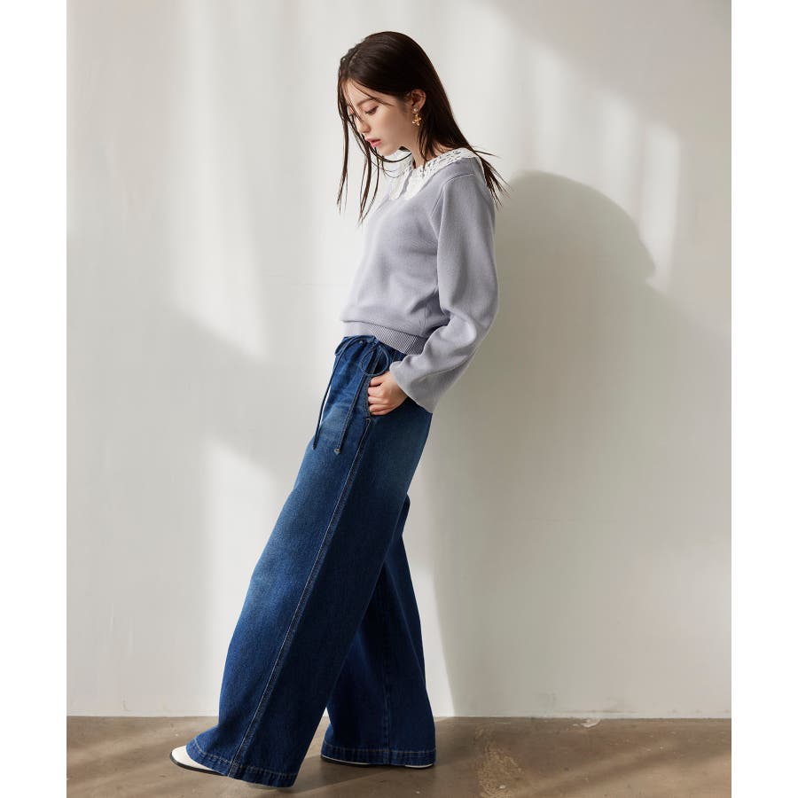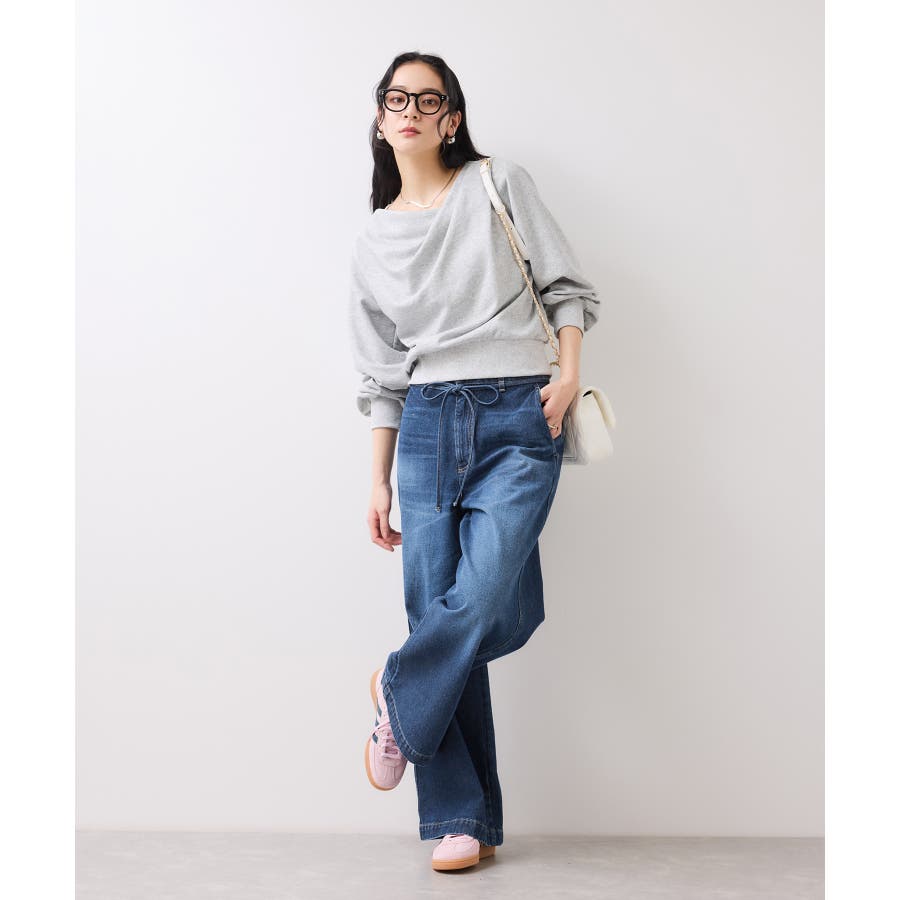 デザインポイントのデニムなのでシンプルなKNITやブラウスなど合わせるだけで様になります。