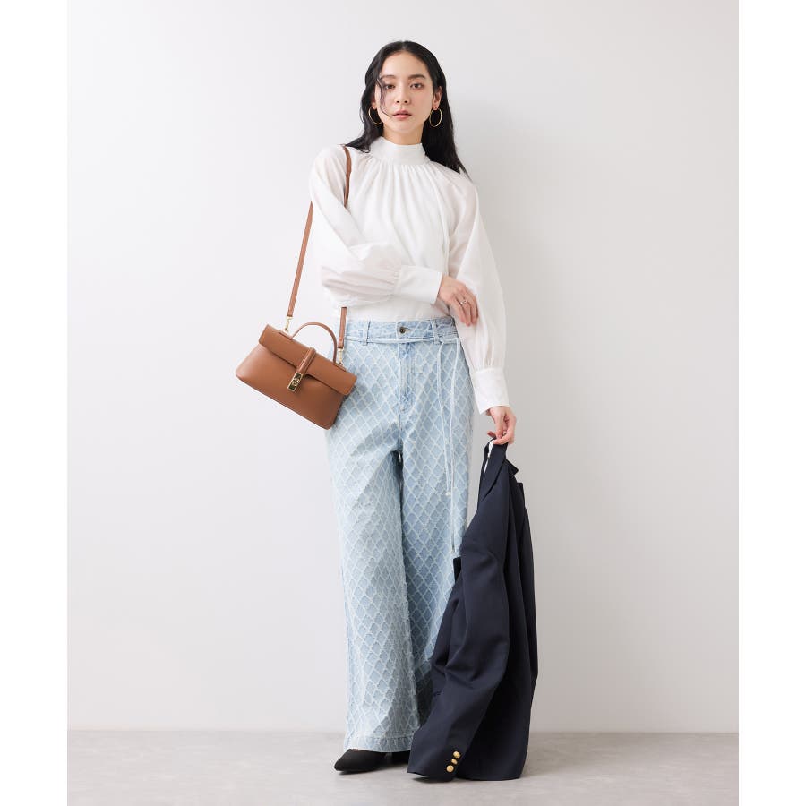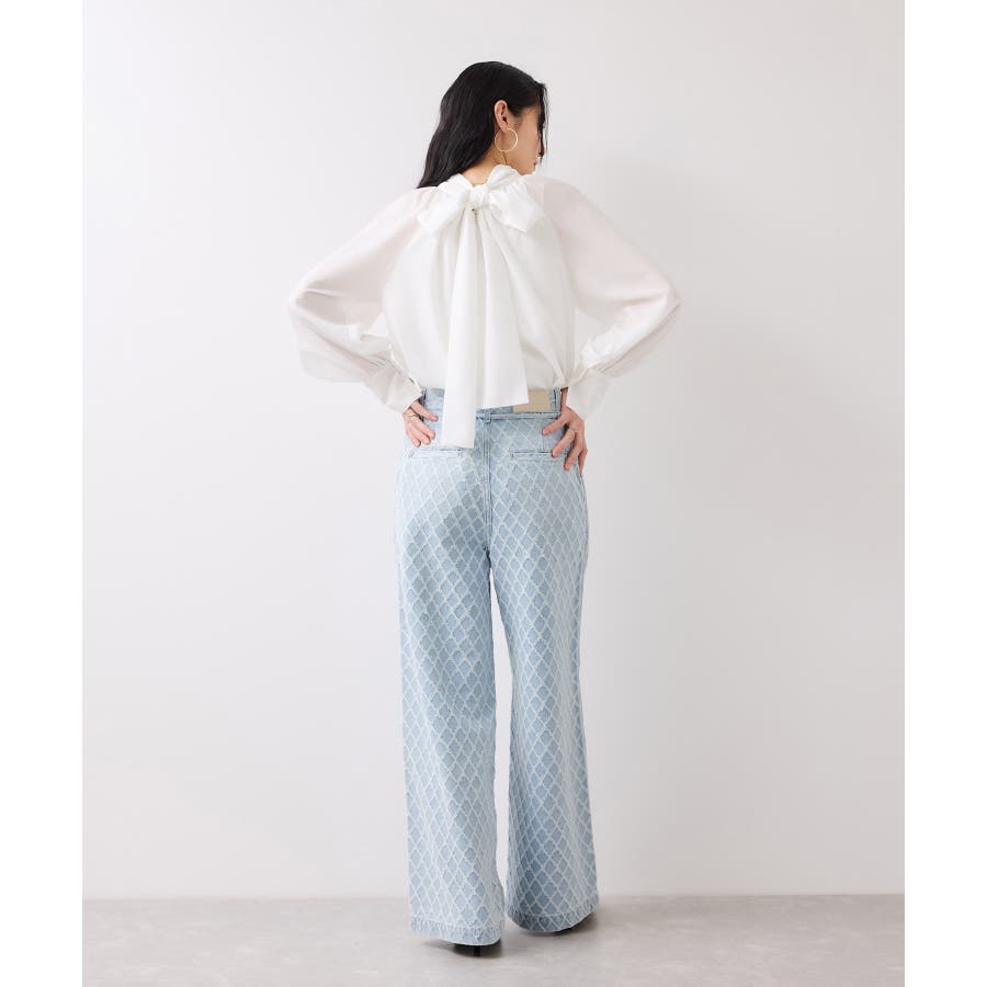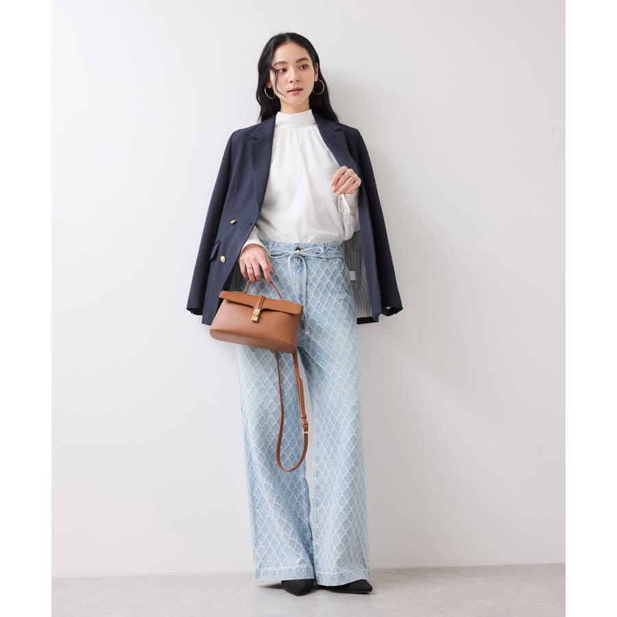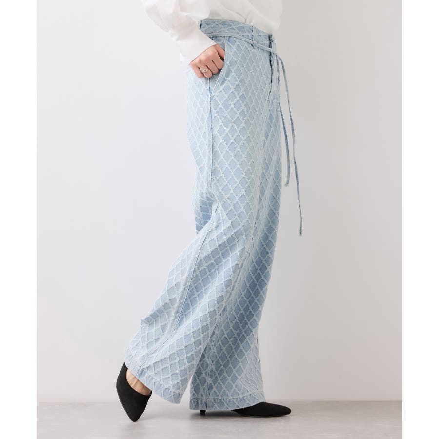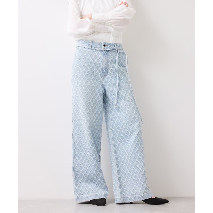 ・使いまわしの効くワイドシルエットのデニムにジャガード生地を使用し華やかでポイントになるデザインです。