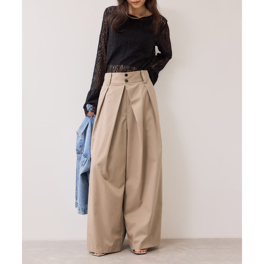 フロントタックデザインワイドパンツ
