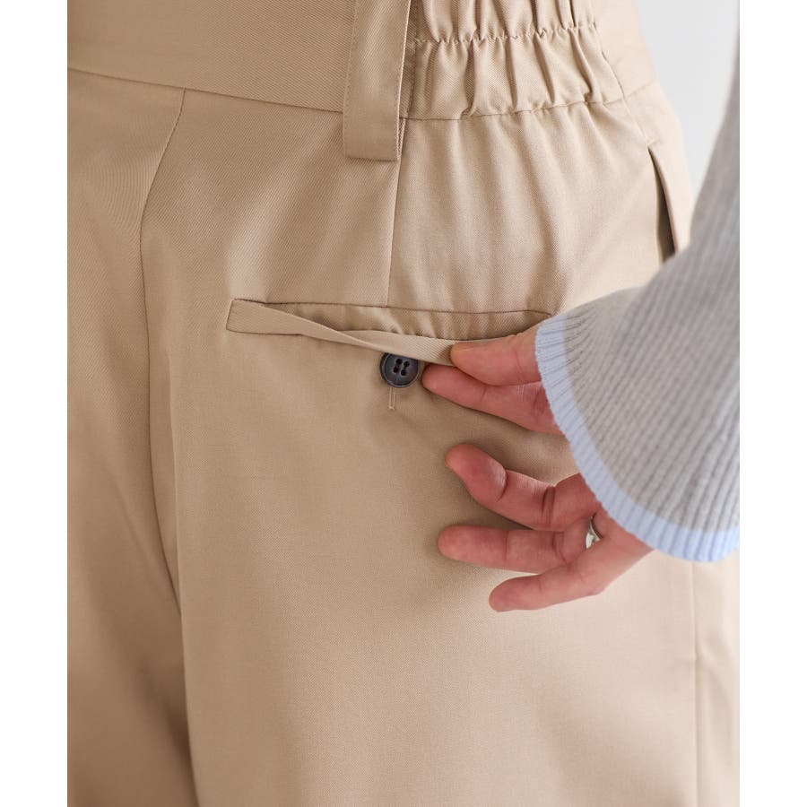 腰回りはすっきり、下に広がるワイドデザインのデザインスラックス。カジュアルにもお仕事にも履いていただける色展開ときれい目の生地感で作りました。