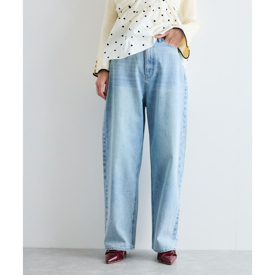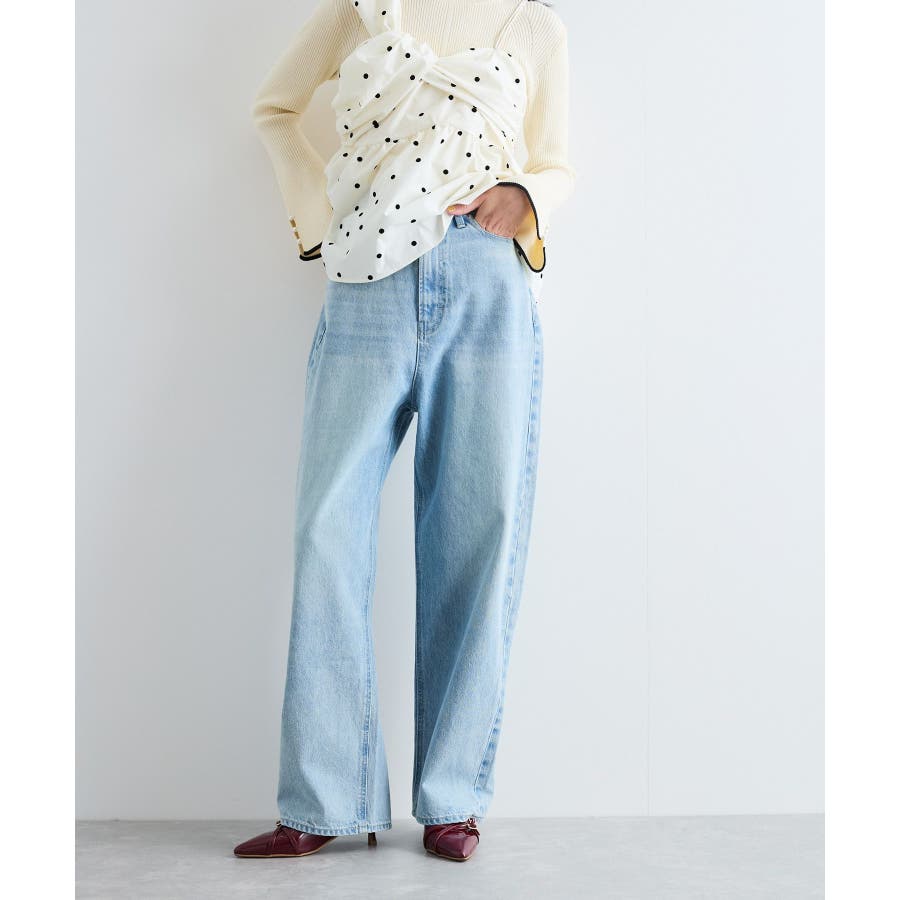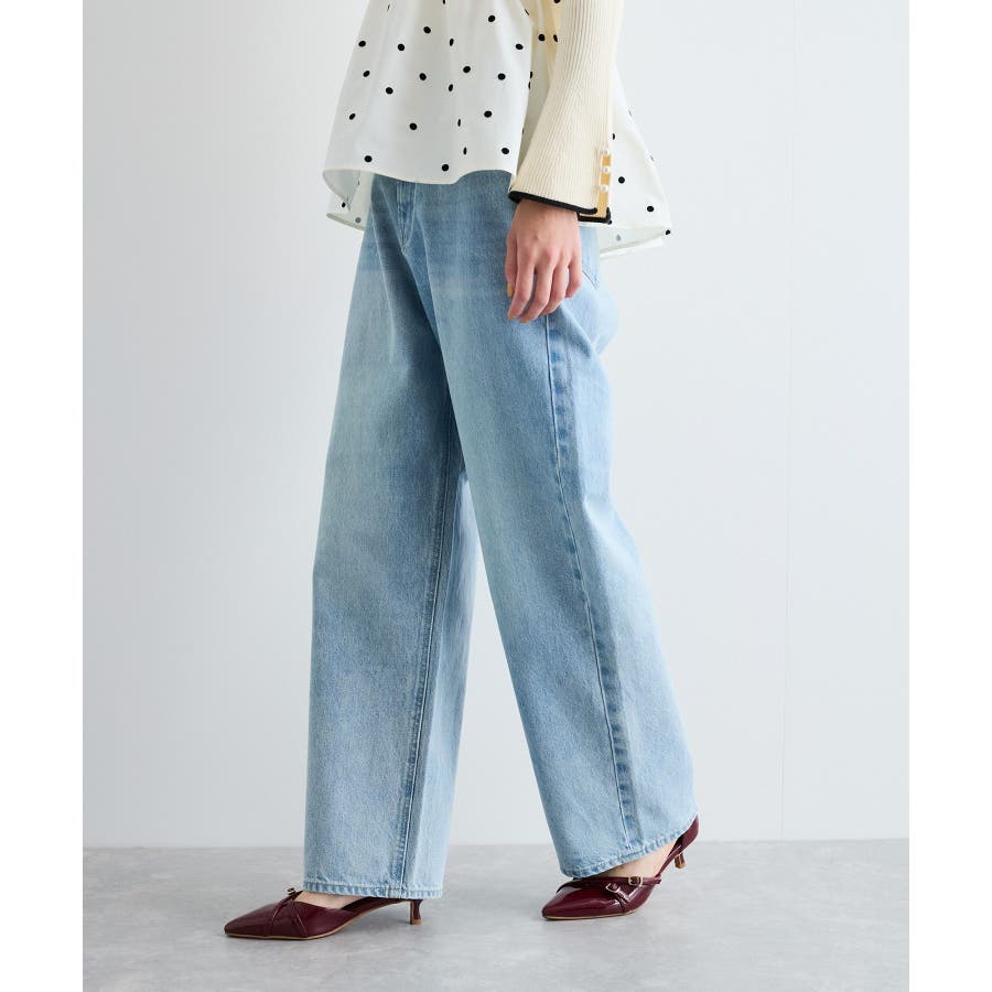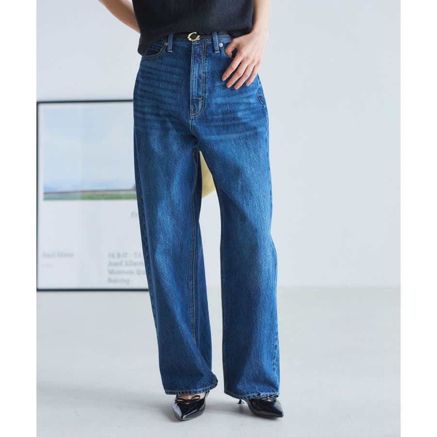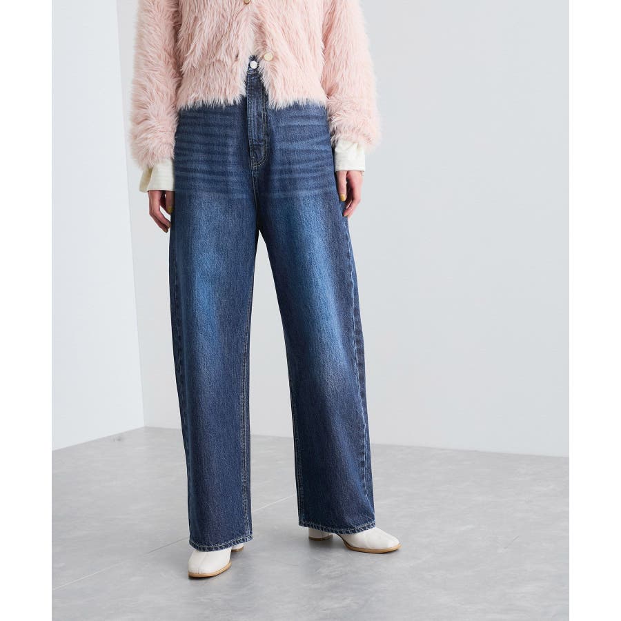 【洗える】ハイウエストルーズワイドデニム