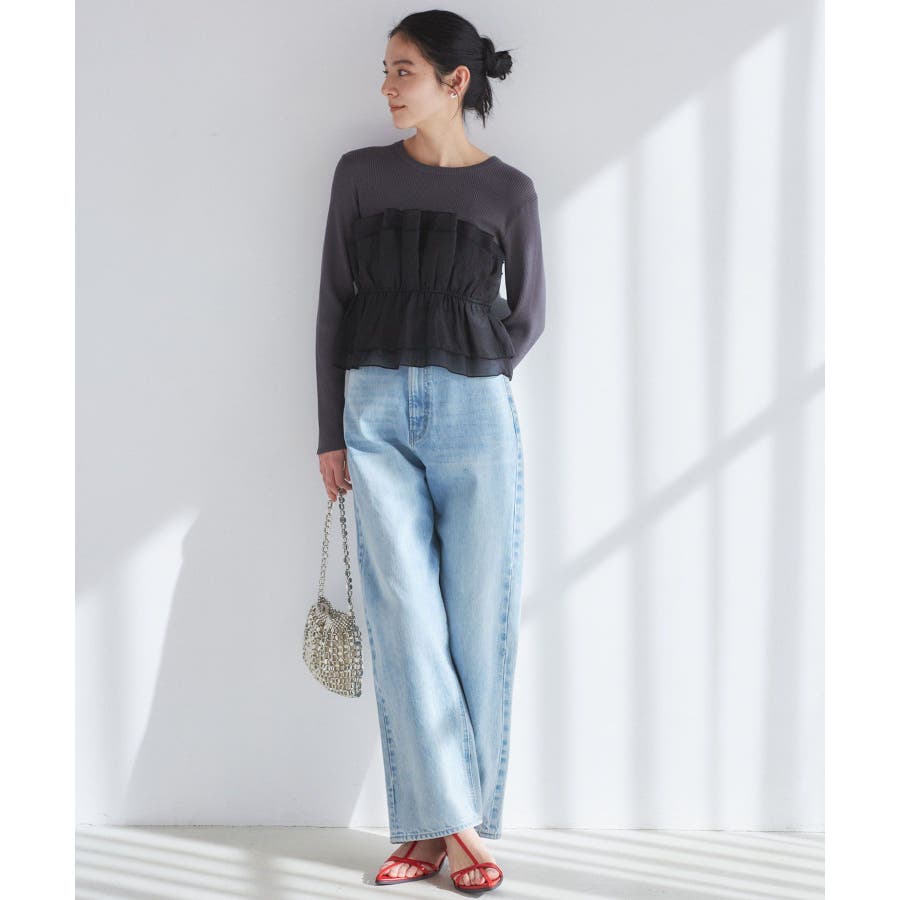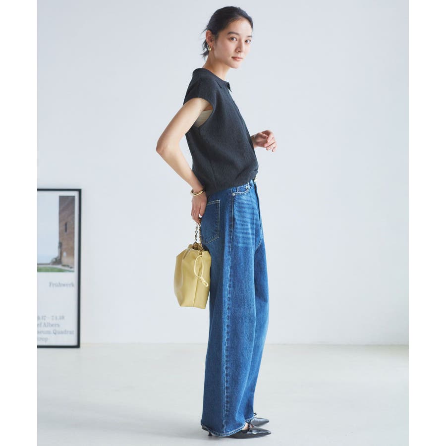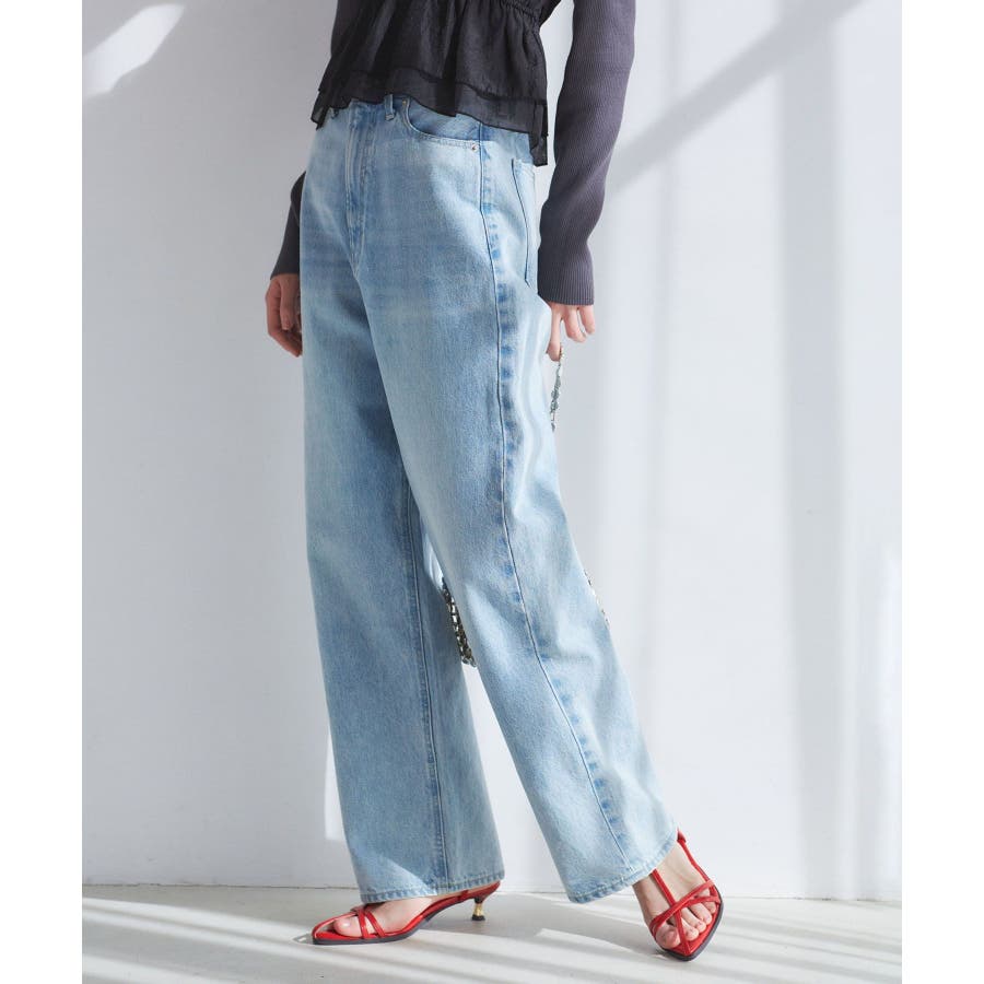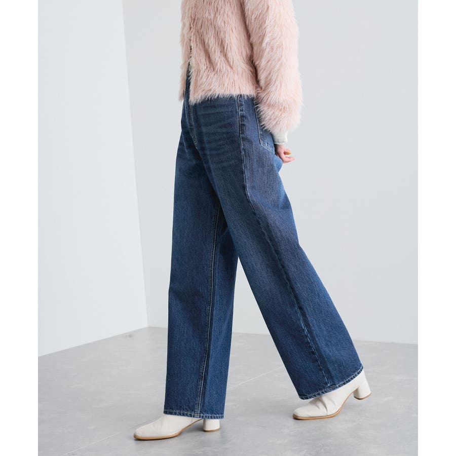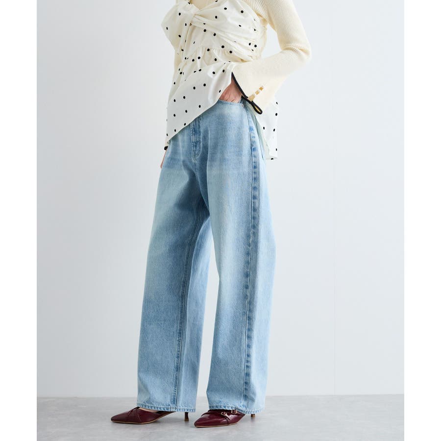 【洗える】ハイウエストルーズワイドデニム