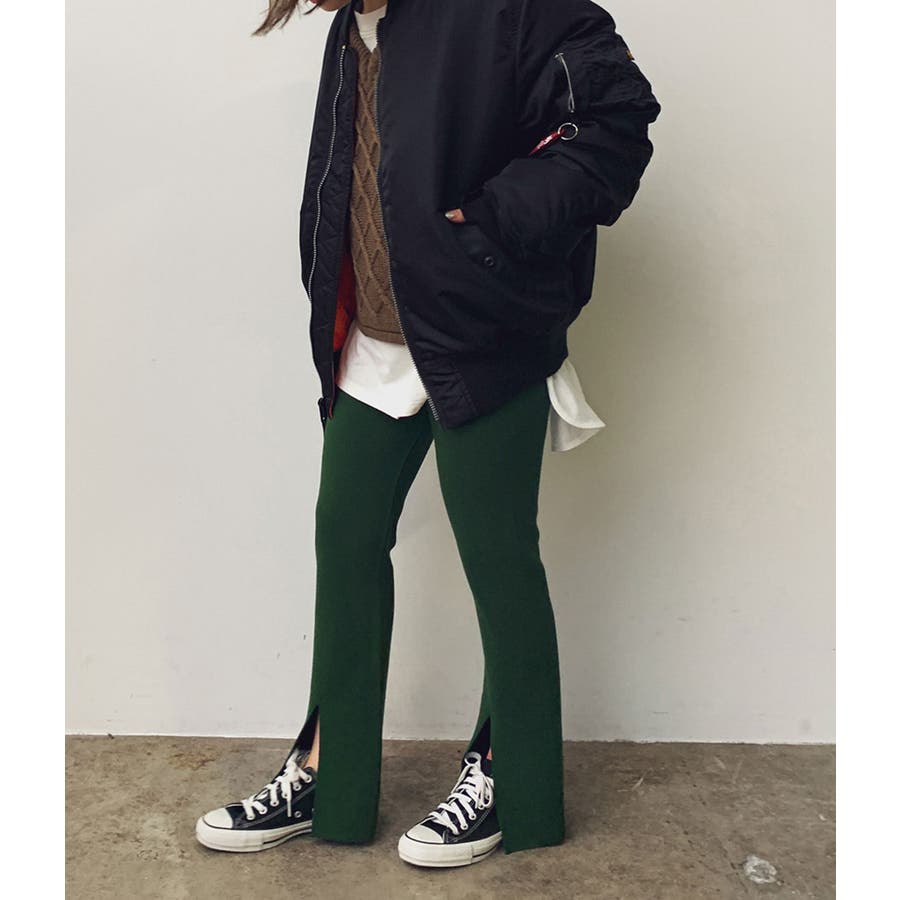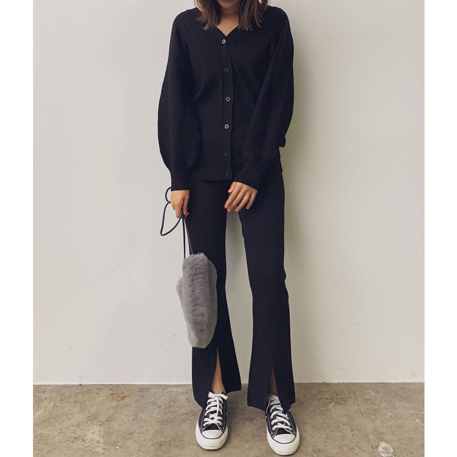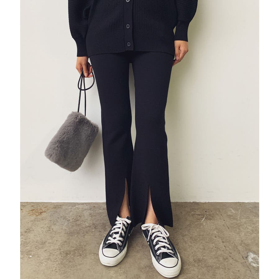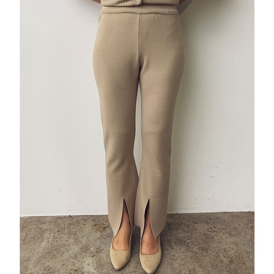 【セットアップ対応】スリット入りニットパンツ