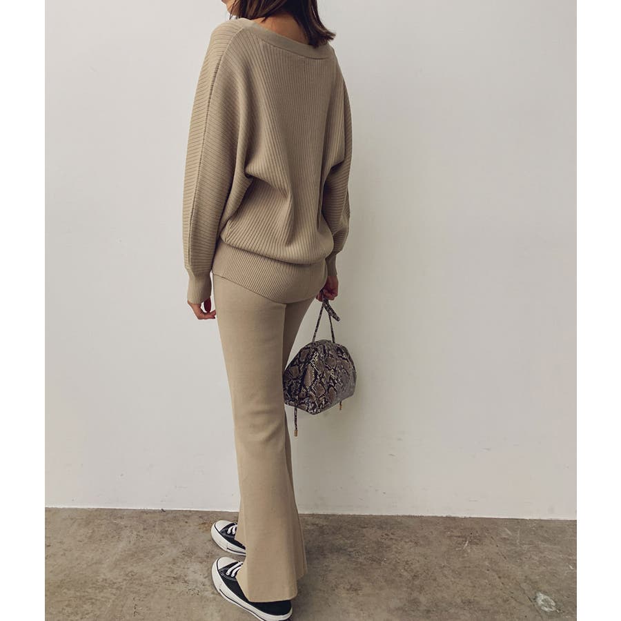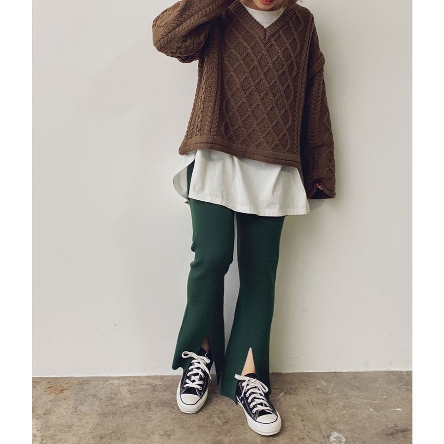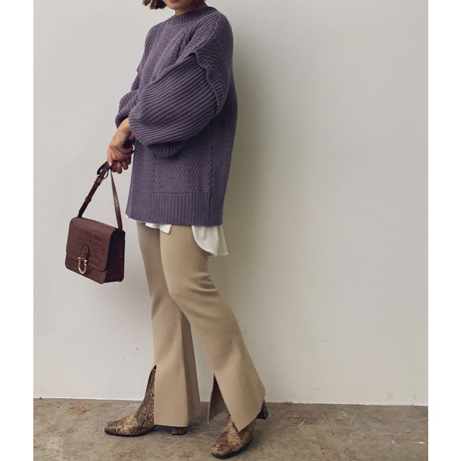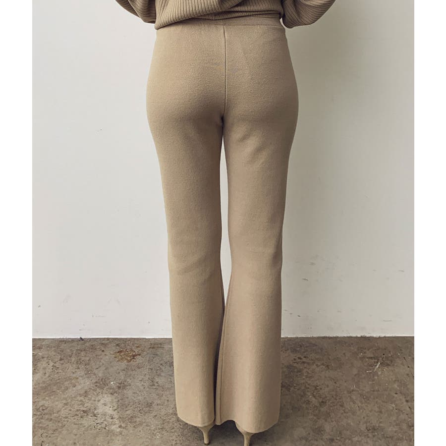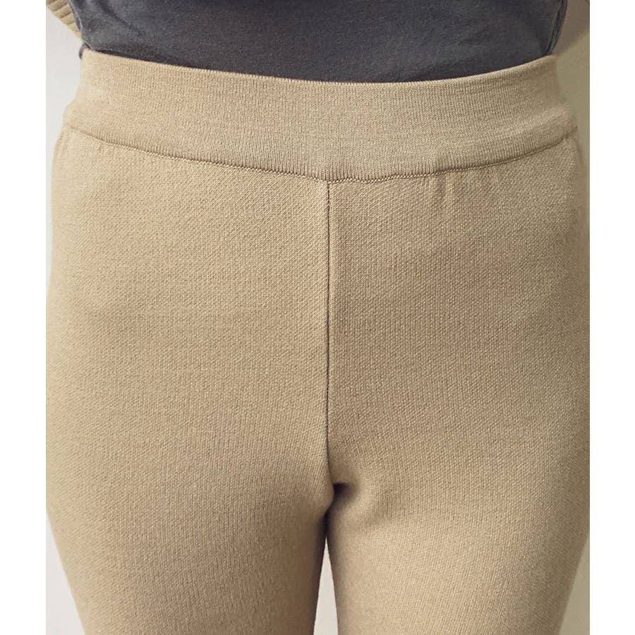 【デザイン・シルエット】 イージーな穿き心地とモダンな見え感が嬉しい、Wジャガード編みのパンツです。 ウエストゴムで締め付けがなく、デイリースタイルに気軽に取り入れられます。 フロント裾にはスリットが施され、自然な広がりのある美シルエットに。 特に腿から下のシルエットにこだわり、膝下で一番細く見えるように設定しました。 【素材】 イージーな履き心地のニットパンツです。 【カラー】 ベーシックからコーディネートのポイントになるカラーの展開。 【おすすめのスタイリング】 チュニックシャツやワンピースに重ねたレイヤードスタイルがオススメです。 同素材のワイドリブVネックカーディガン(BVK30370)とセットアップで着用できます。 ----- 透け:なし 裏地:なし 伸縮性:あり 生地の厚さ:普通 ポケット:なし ----- ※画像の商品はサンプルです。 実際の商品と仕様、加工、サイズが若干異なる場合がございます。