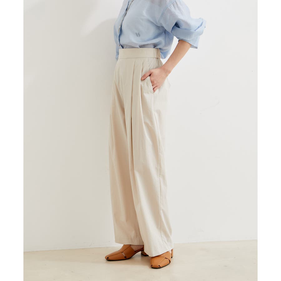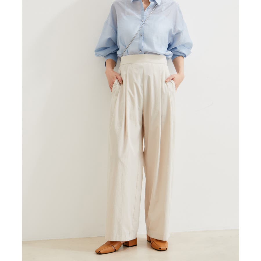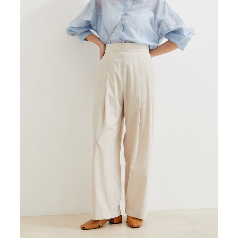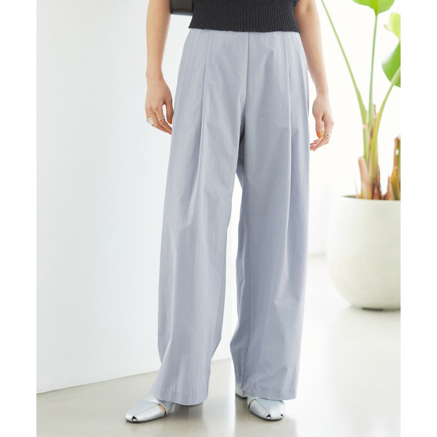 【デザイン・シルエット】 スタイルアップが叶うきれいなシルエットに拘り仕立てたストレートギャザーパンツ。 ギャザーが程よくカジュアル感を出していて、綺麗めにもカジュアルにも使える万能パンツです。