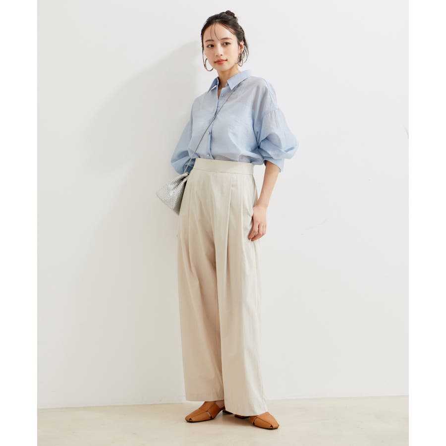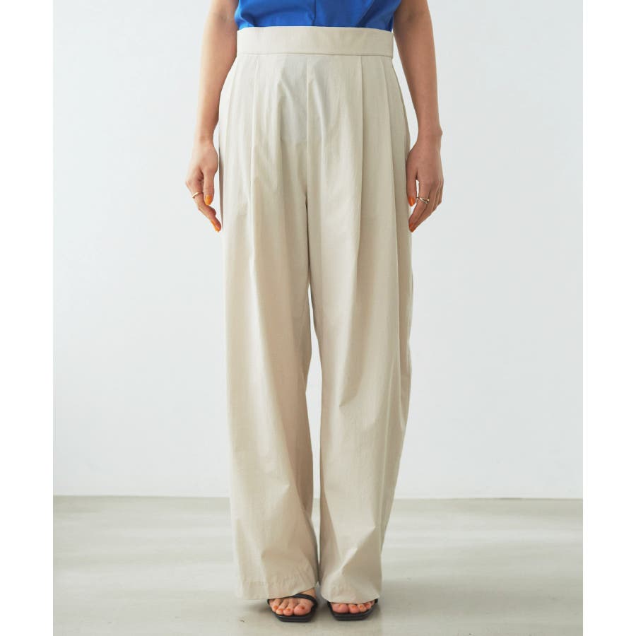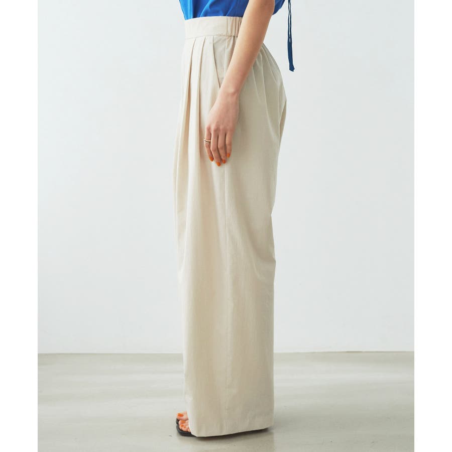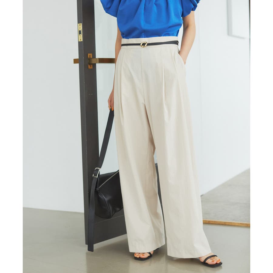 【デザイン・シルエット】 スタイルアップが叶うきれいなシルエットに拘り仕立てたストレートギャザーパンツ。 ギャザーが程よくカジュアル感を出していて、綺麗めにもカジュアルにも使える万能パンツです。