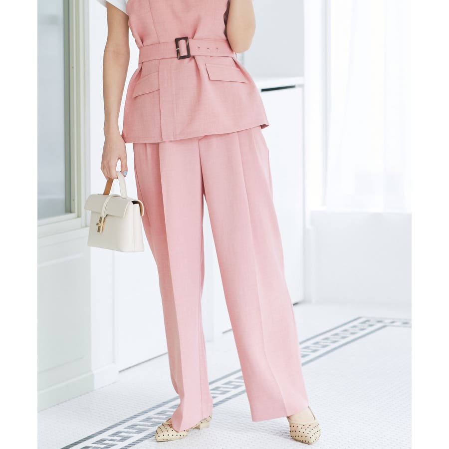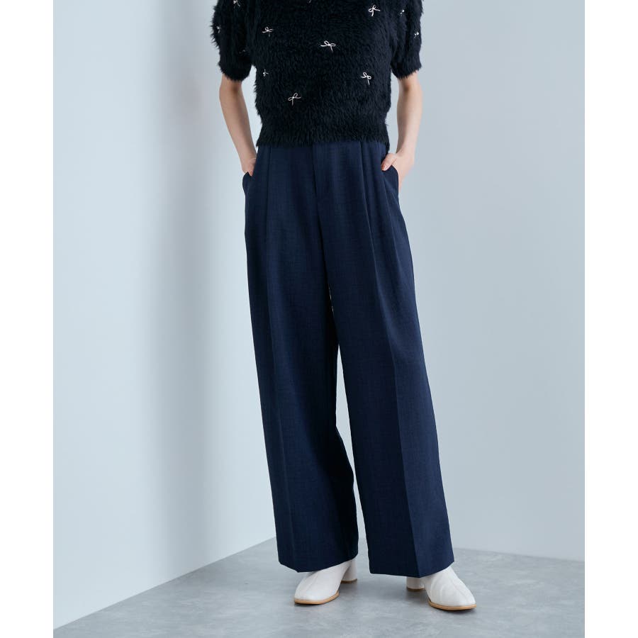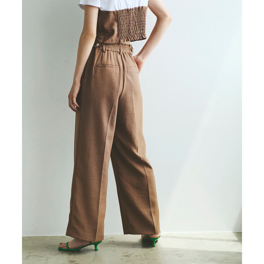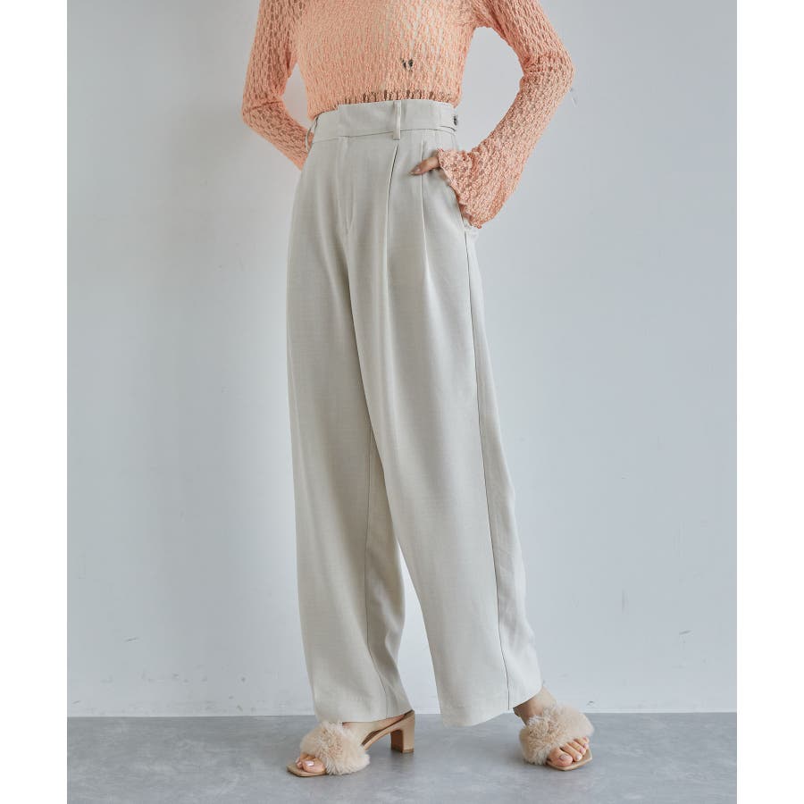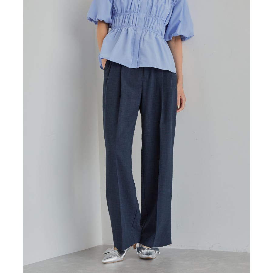 ウエストのフロント2タックと、中心タックから流れるセンタープレスがポイントのデザイン。