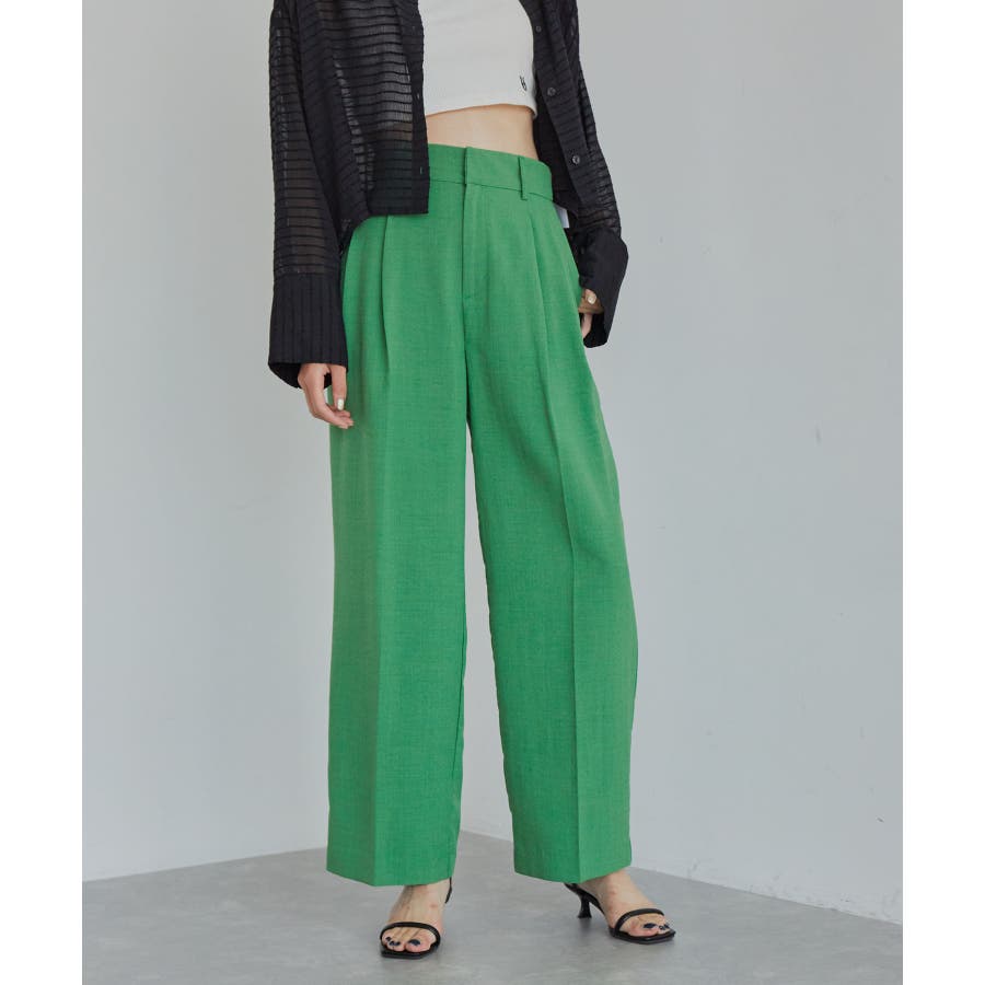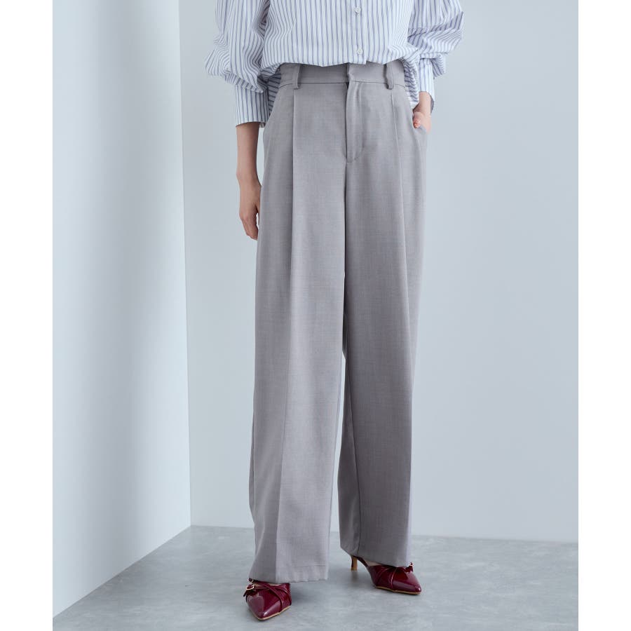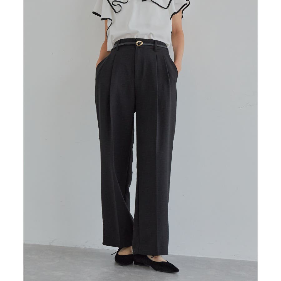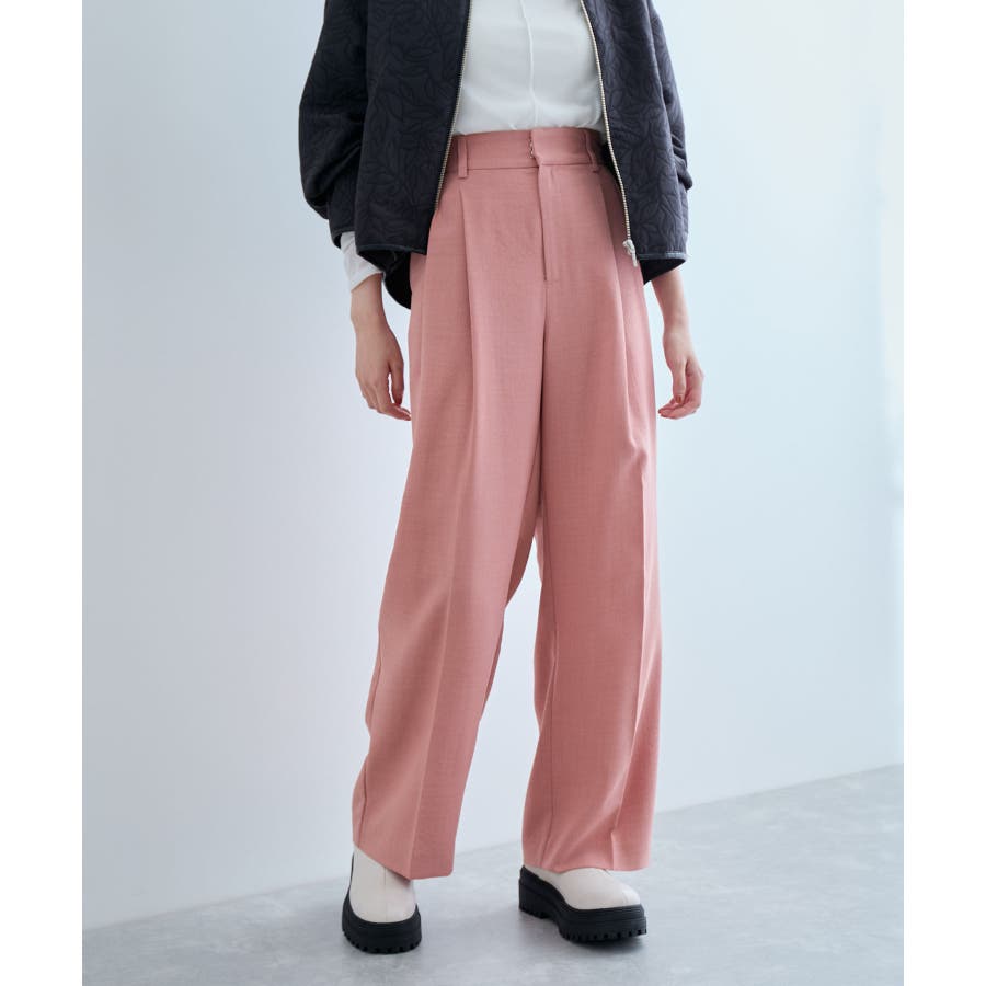センタープレスが綺麗なストレートシルエットの美脚ワイドシルエットのスラックスパンツ。