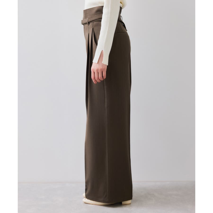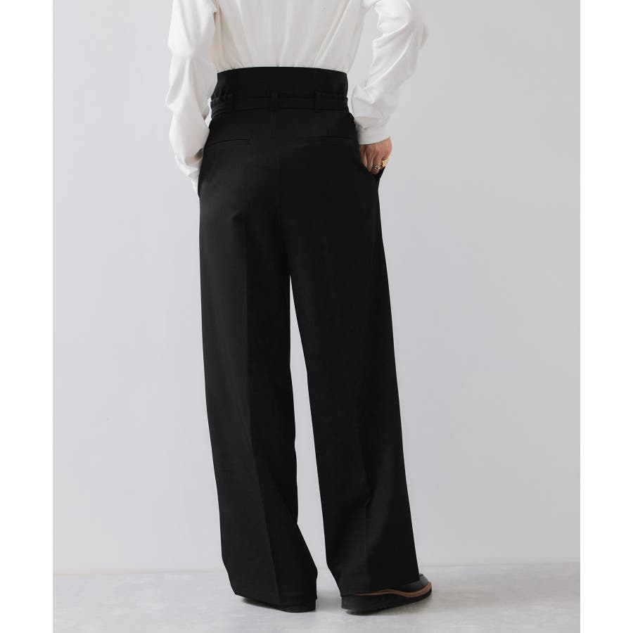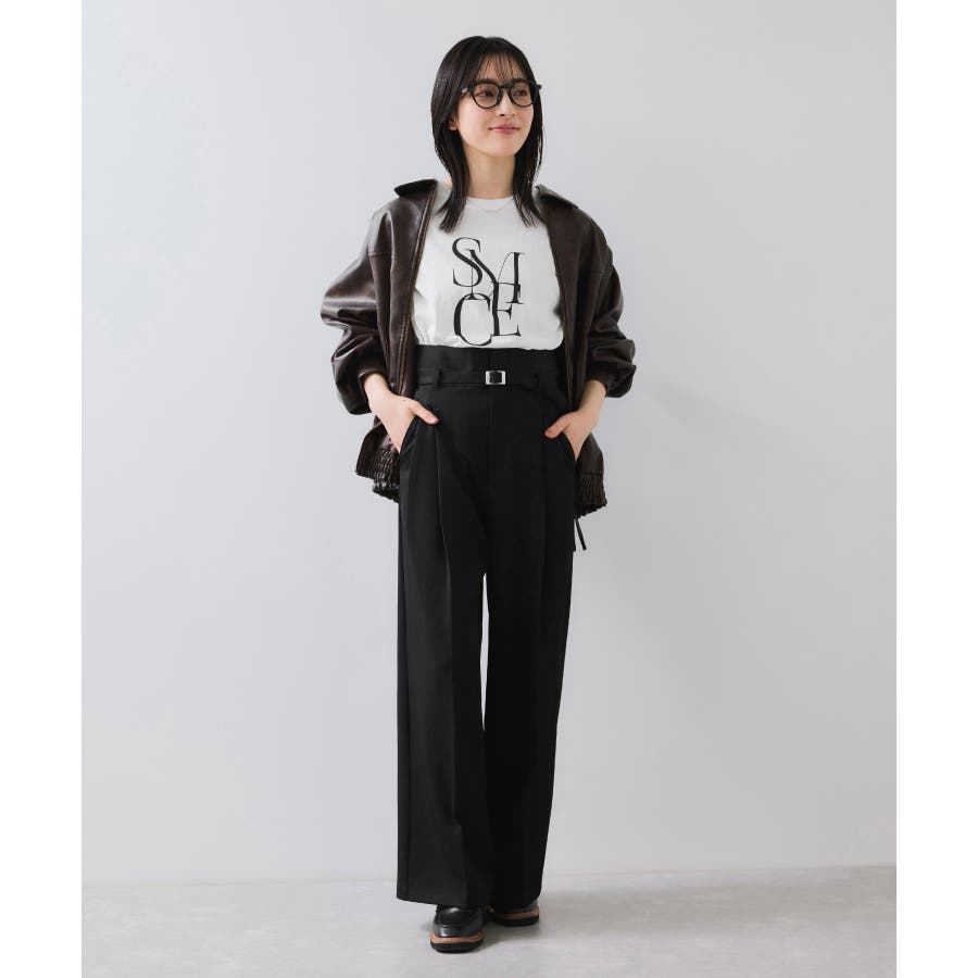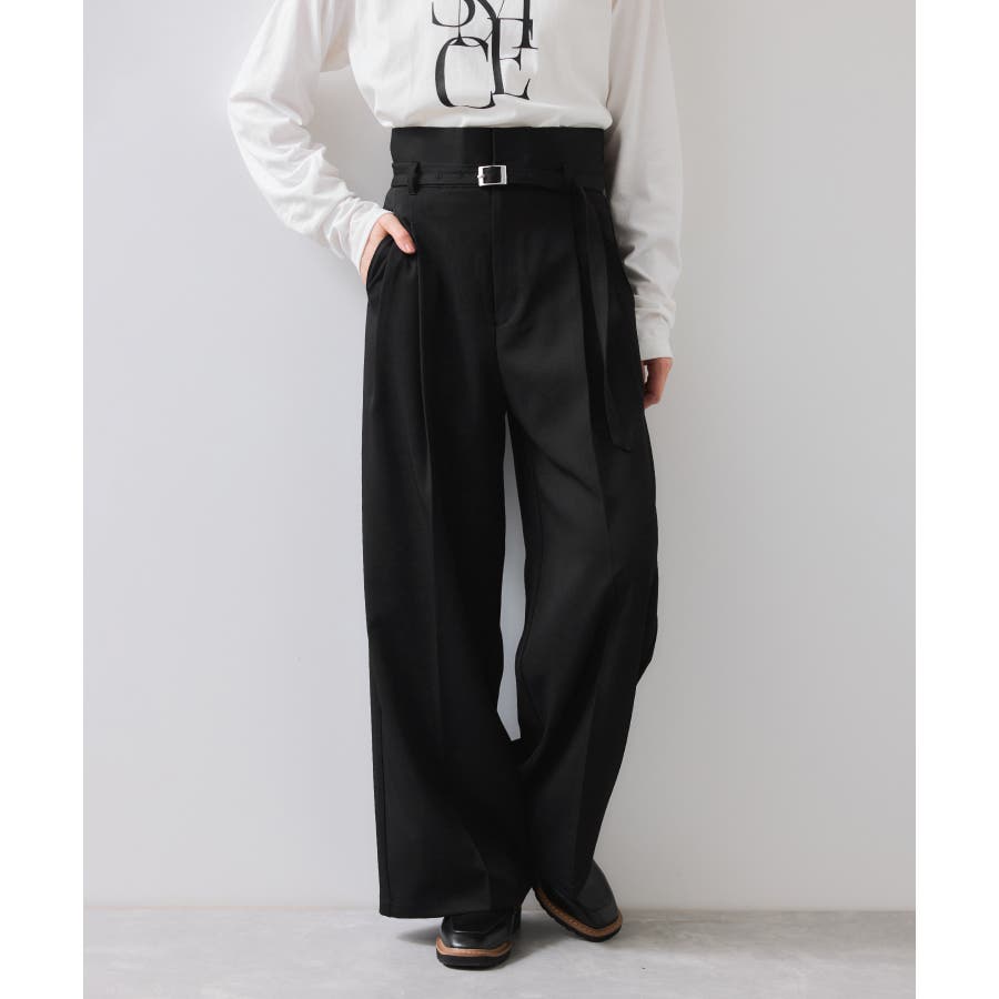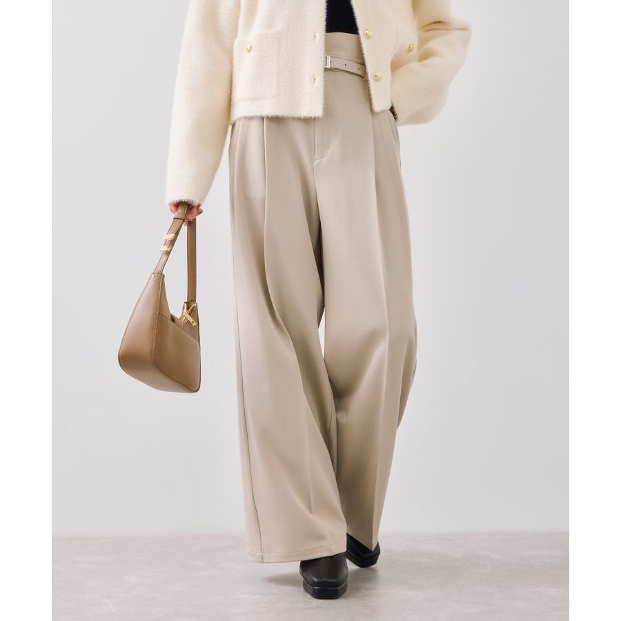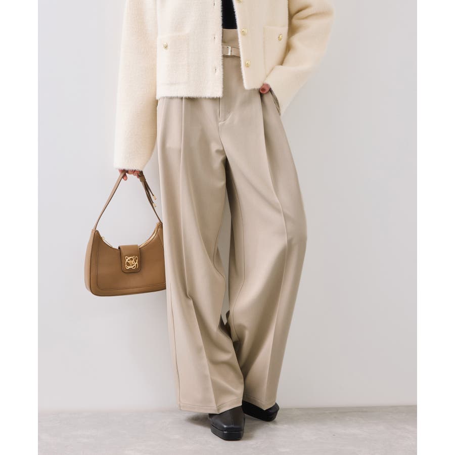 トップスをウエストインした時も決まりやすく、ジャケットシーンのあわせとしても大活躍。裾はそこまで広くないワイドシルエットなので、着用シーンも幅広いです。共地のベルト付きできちんと感もあり、ウエスト部分は後ろのサイドにゴムが入りスッキリ感と着心地を両立。