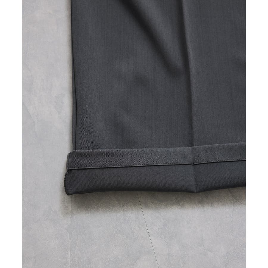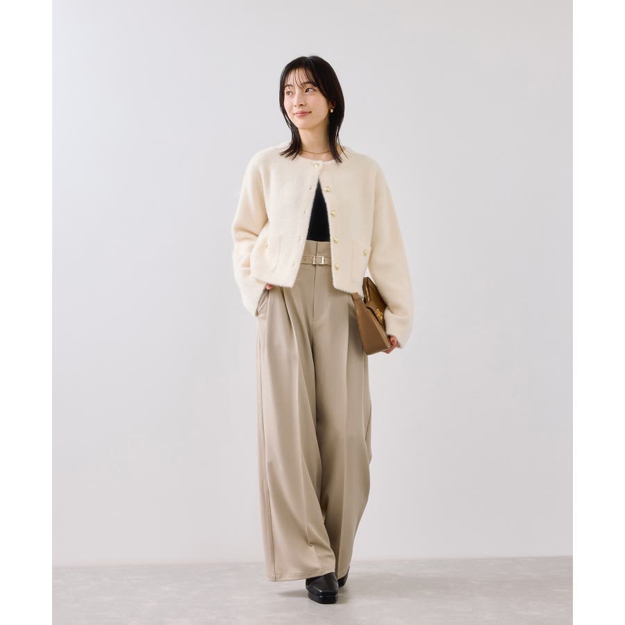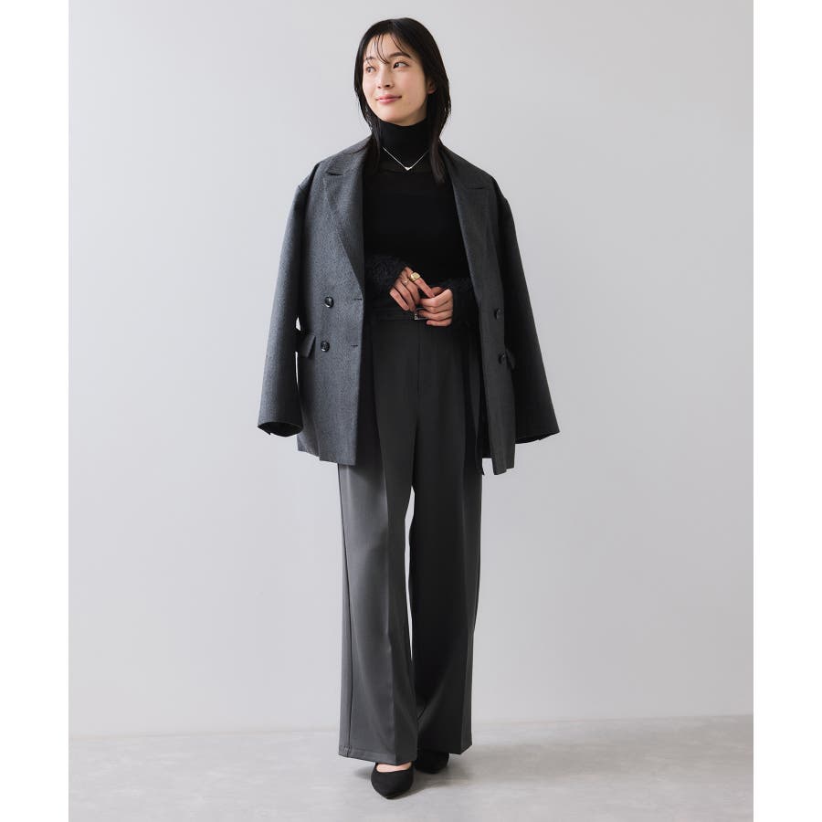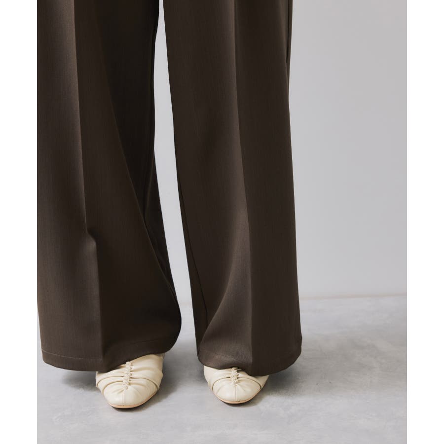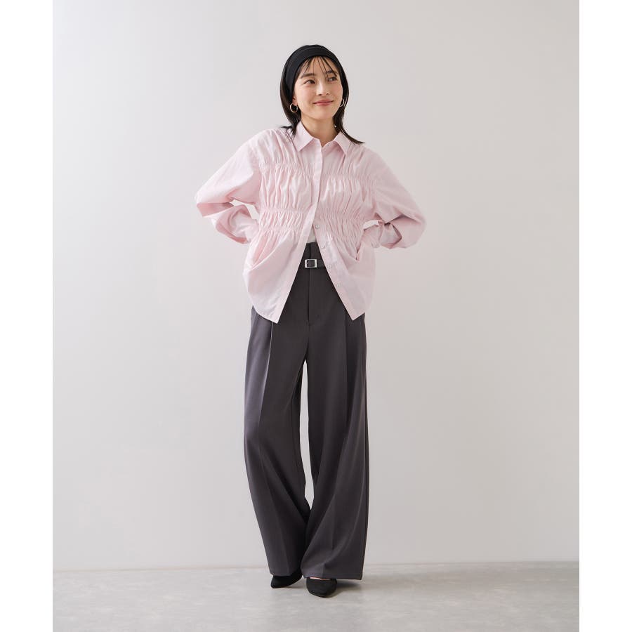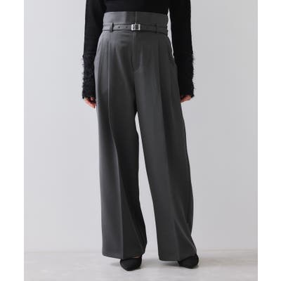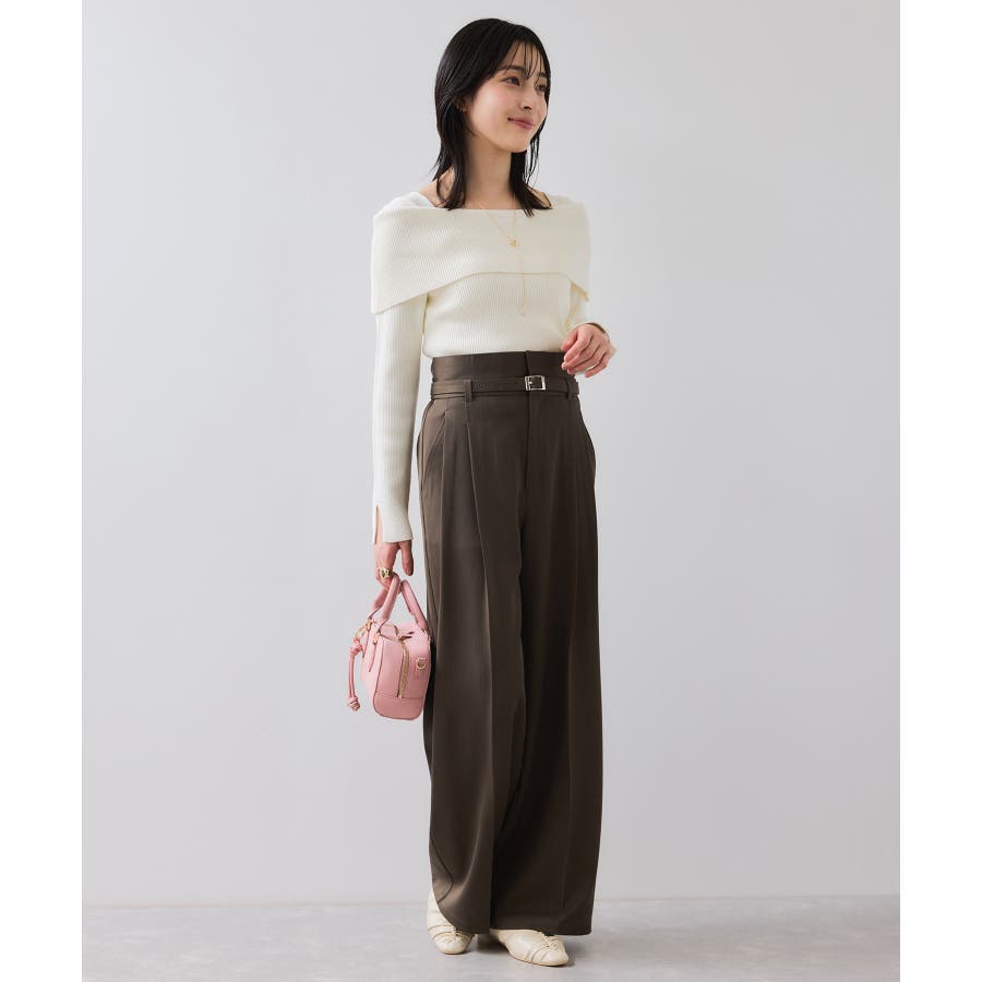 トップスをウエストインした時も決まりやすく、ジャケットシーンのあわせとしても大活躍。裾はそこまで広くないワイドシルエットなので、着用シーンも幅広いです。共地のベルト付きできちんと感もあり、ウエスト部分は後ろのサイドにゴムが入りスッキリ感と着心地を両立。