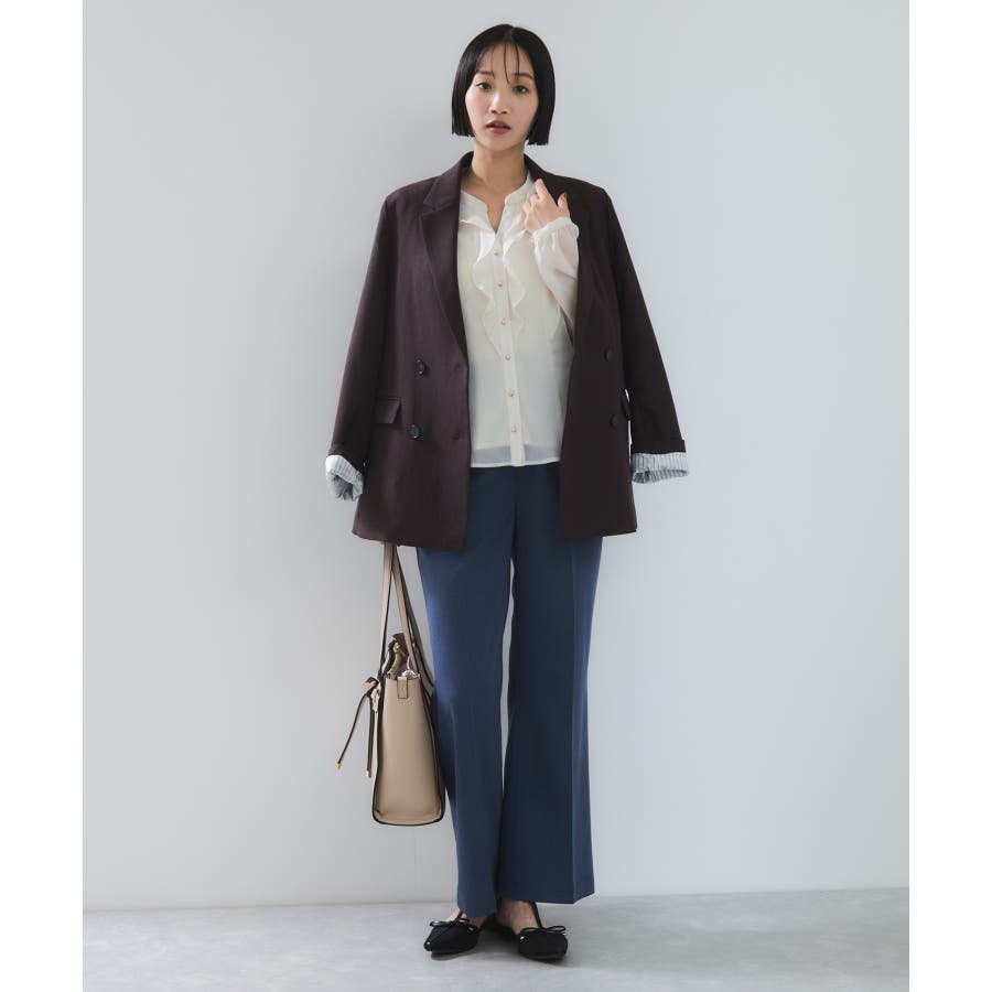 裾に向かって広がるフレアは広くなりすぎずストレートに近いデザインですっきり履いて頂けます。