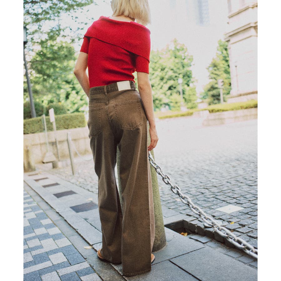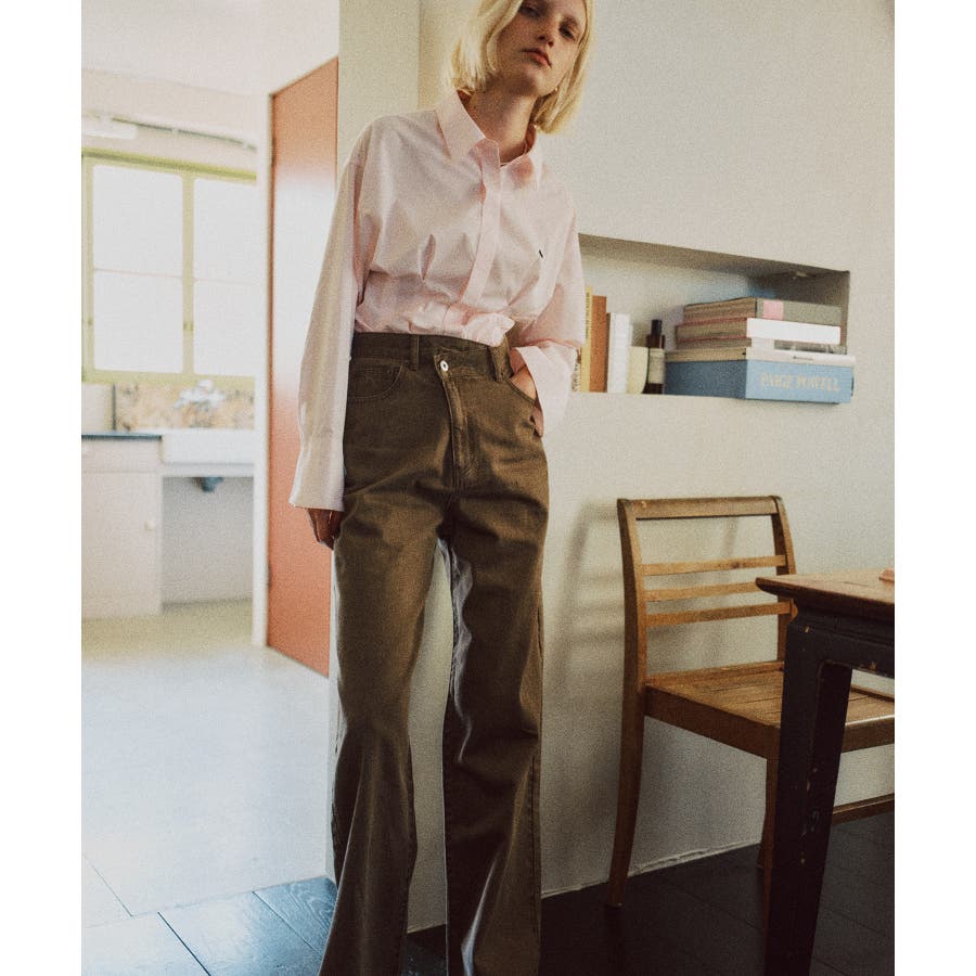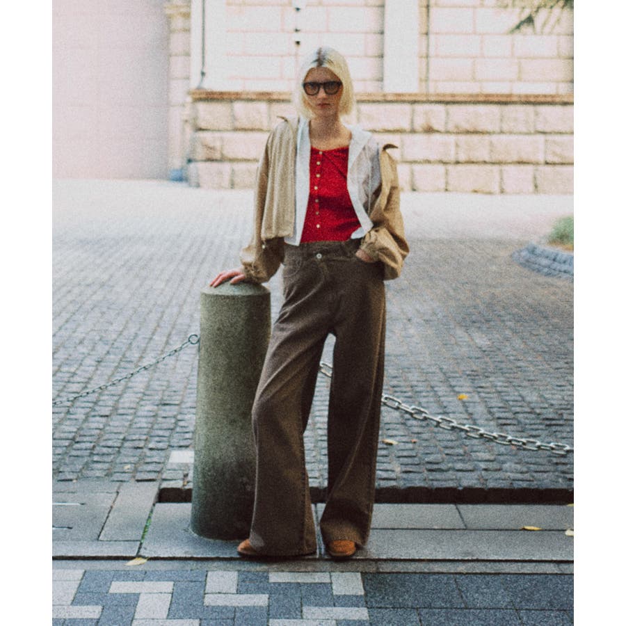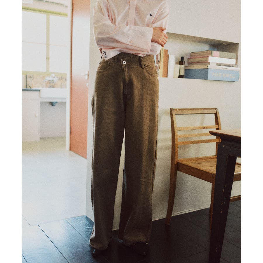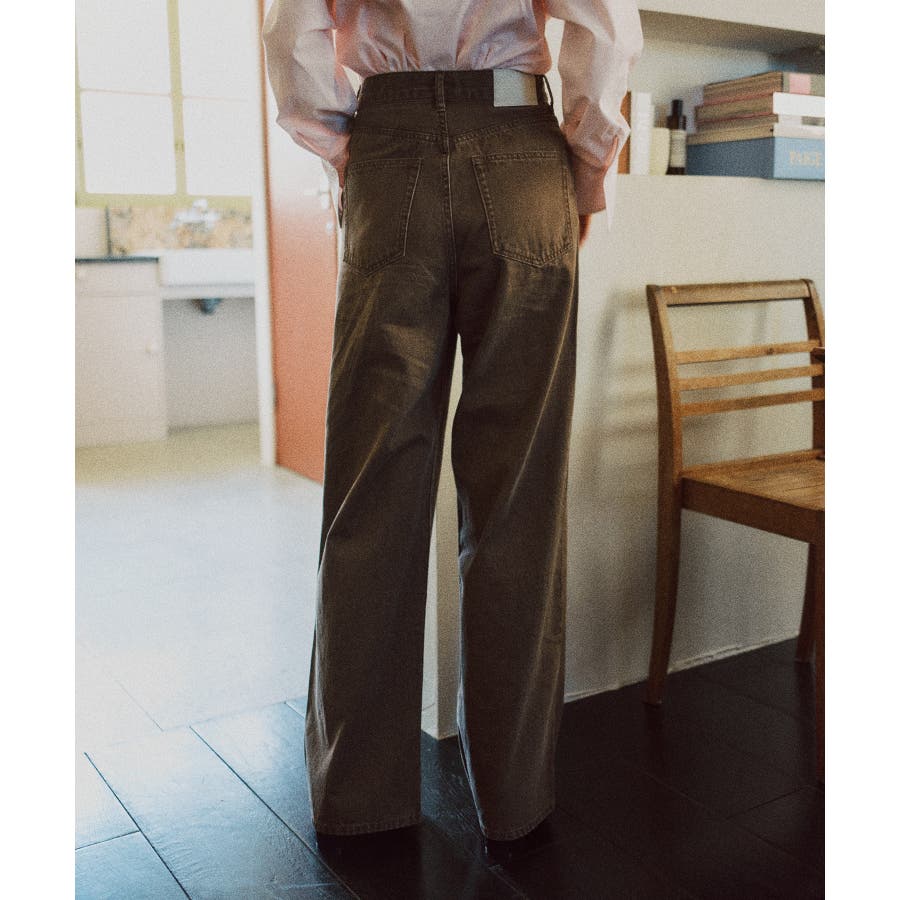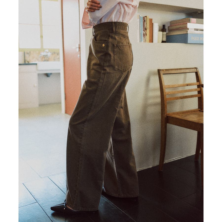 ジャストウエストのルーズストレートのシルエット。程よく緩めのシルエットで足のラインをカバーしてくれます。太すぎないラインで上品さも兼ね備えたシルエットです。