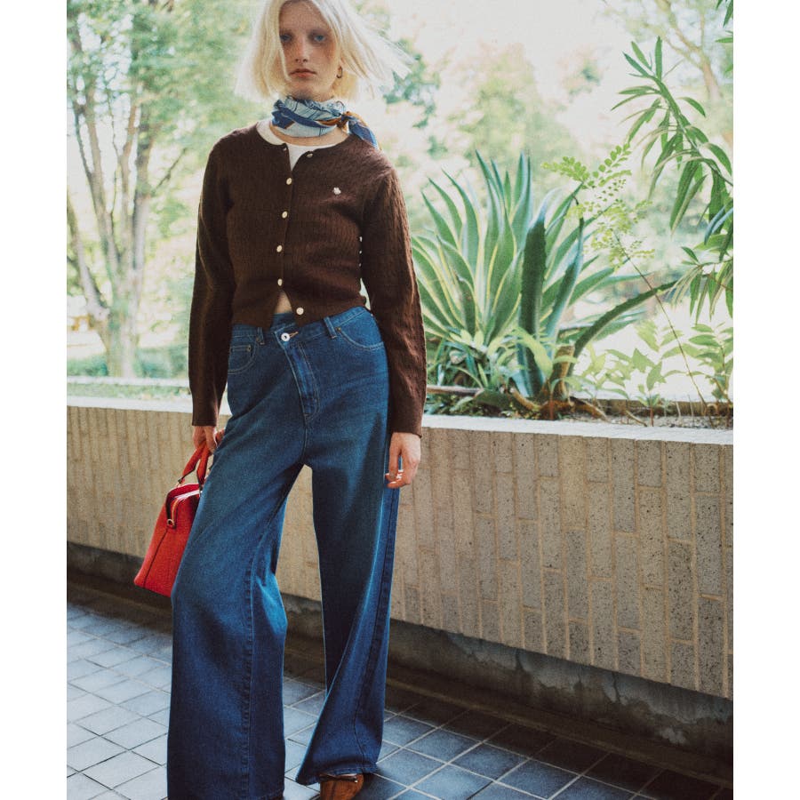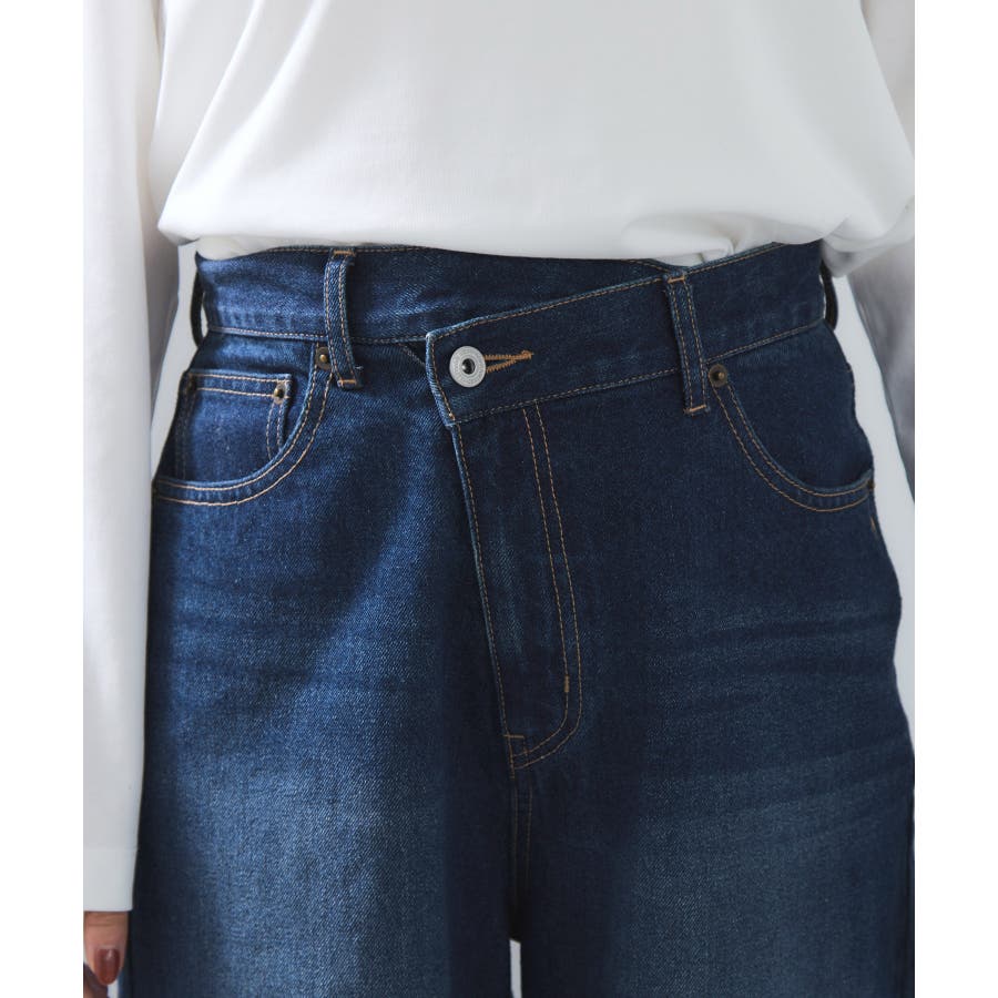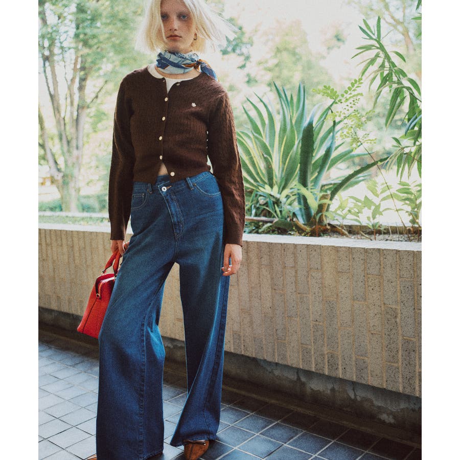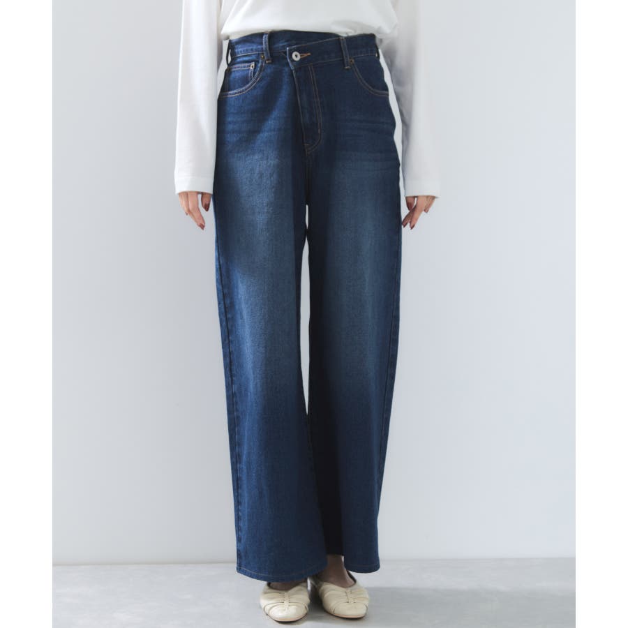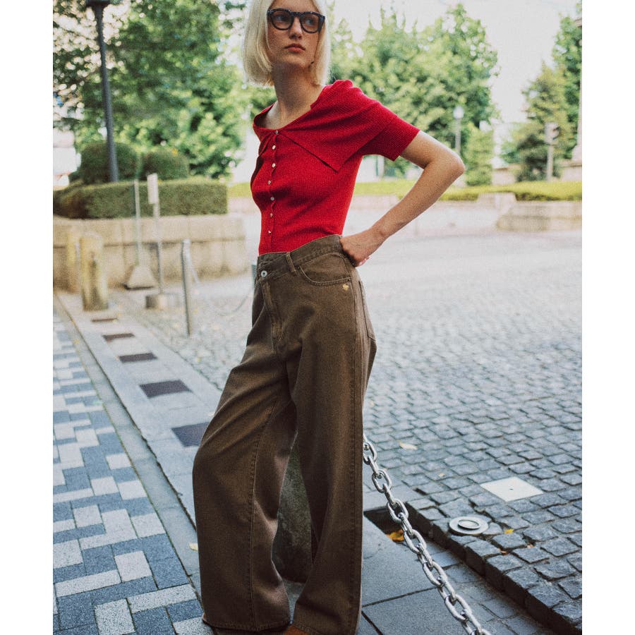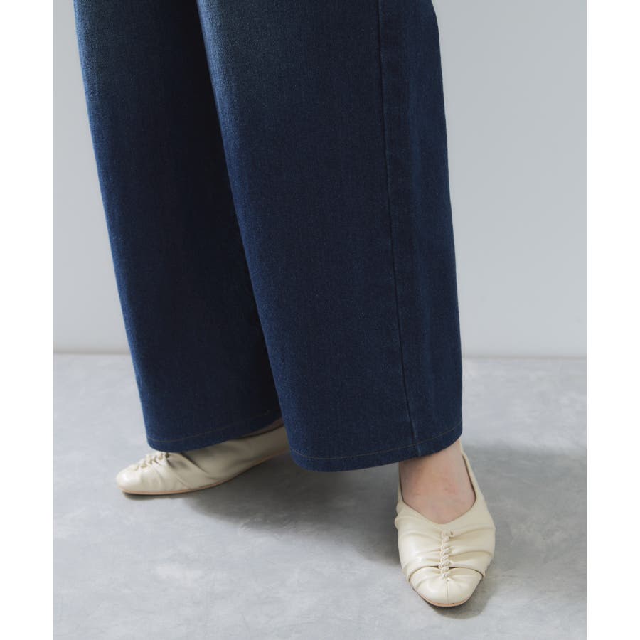 ジャストウエストのルーズストレートのシルエット。程よく緩めのシルエットで足のラインをカバーしてくれます。太すぎないラインで上品さも兼ね備えたシルエットです。