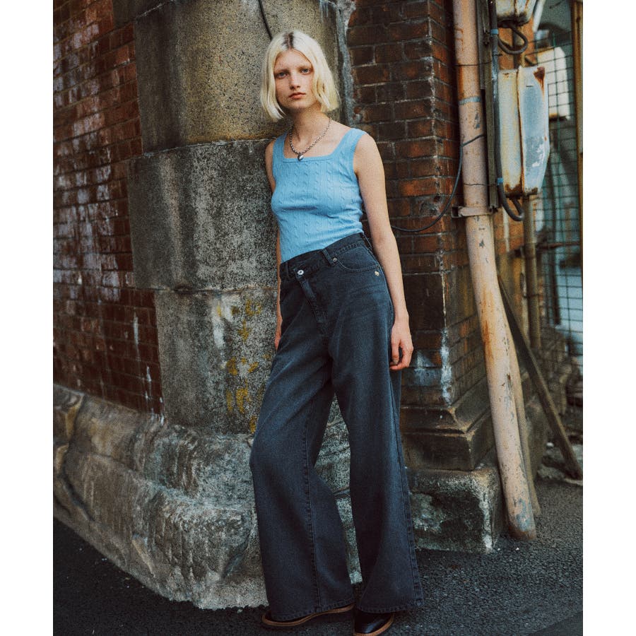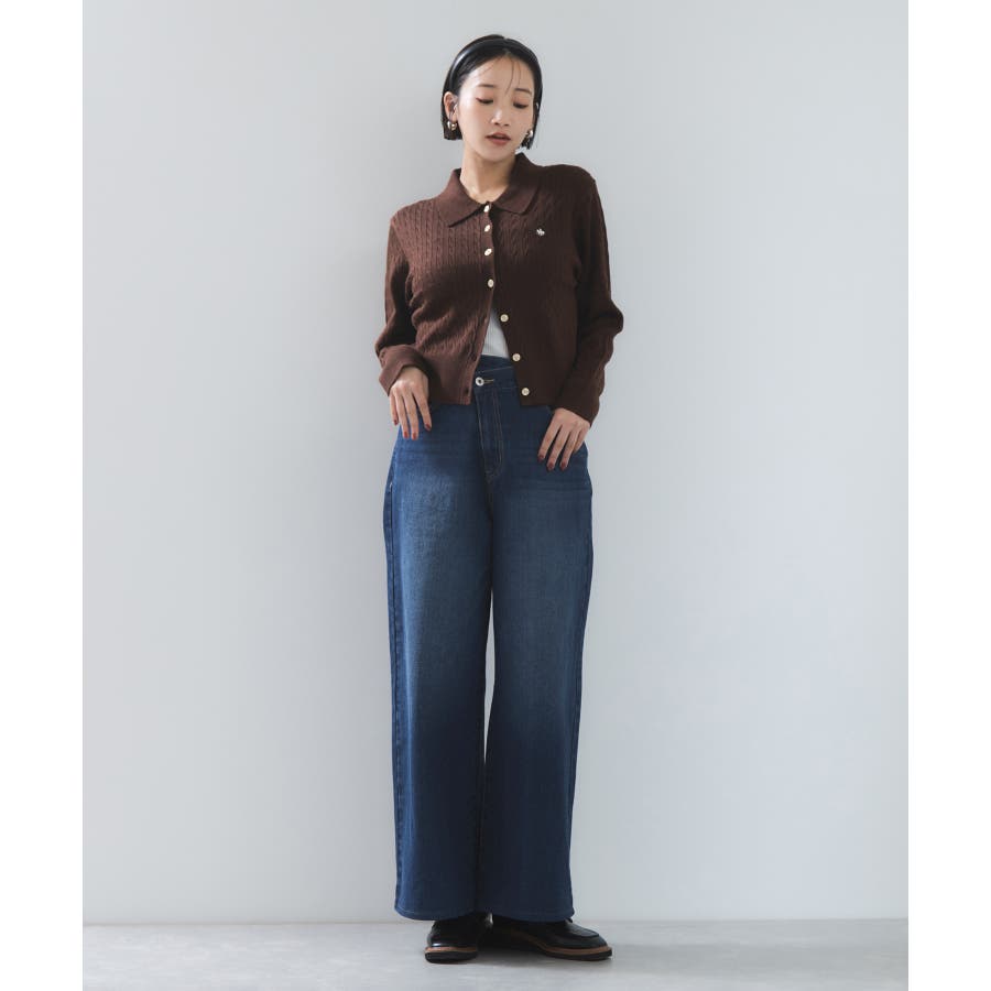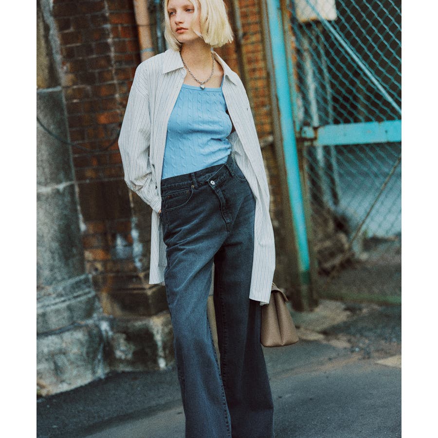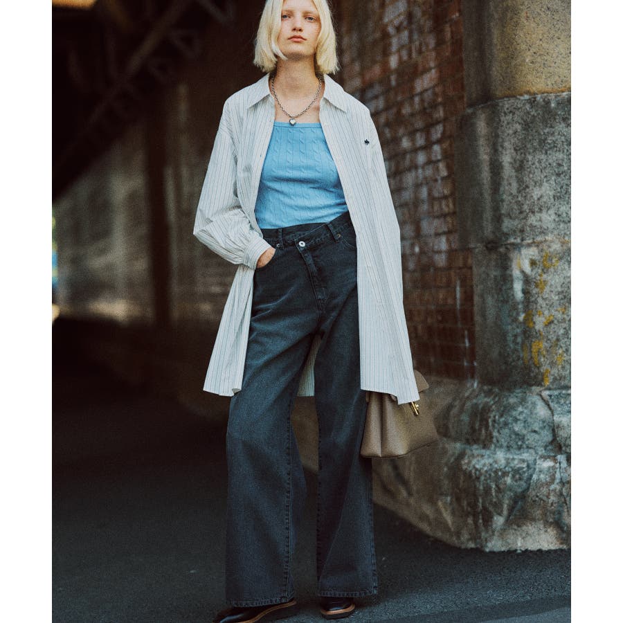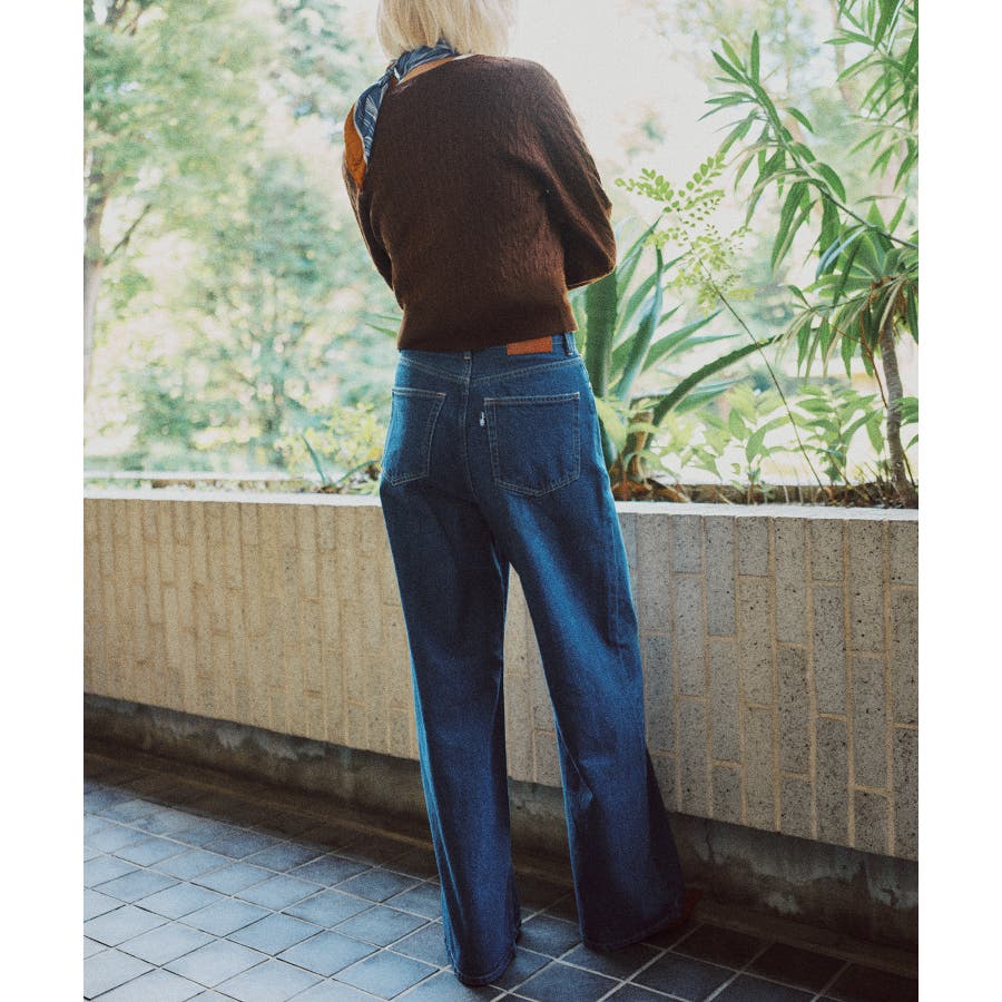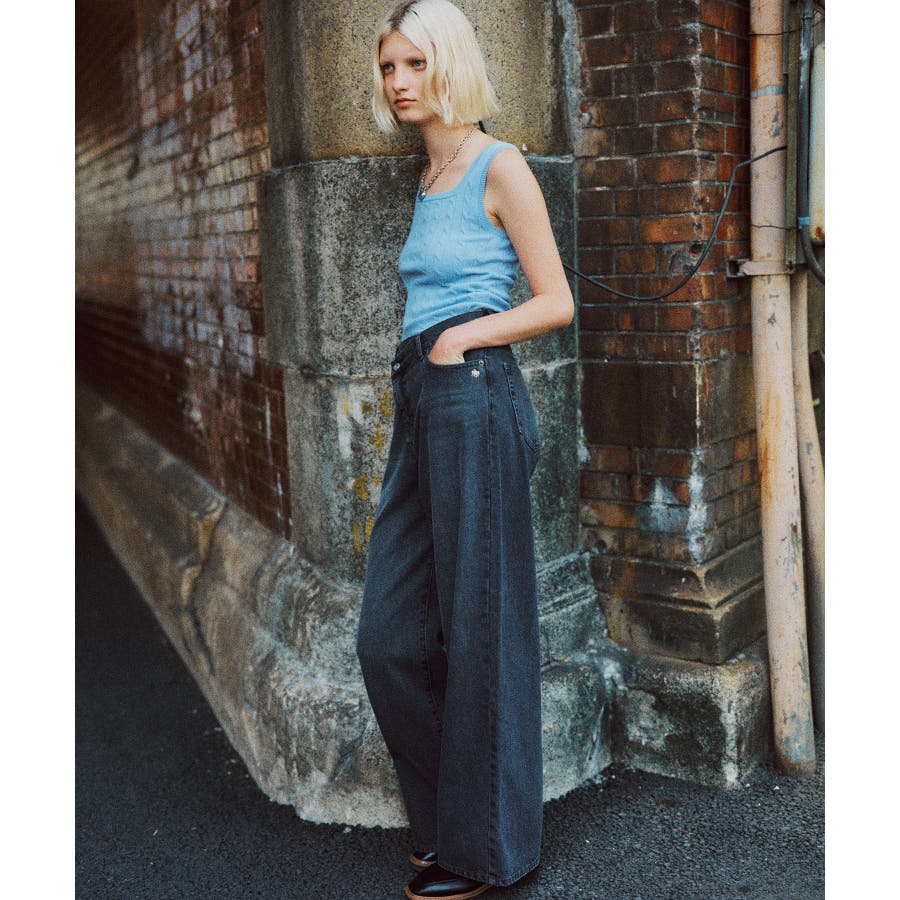 ジャストウエストのルーズストレートのシルエット。程よく緩めのシルエットで足のラインをカバーしてくれます。太すぎないラインで上品さも兼ね備えたシルエットです。