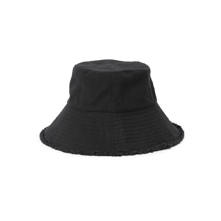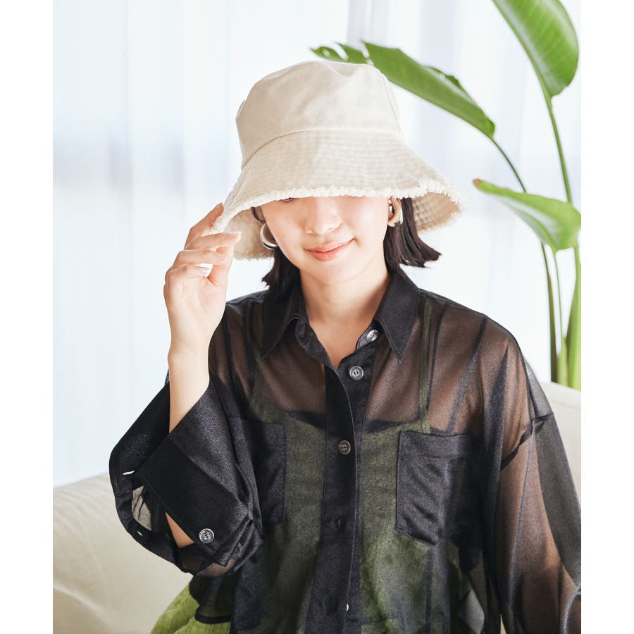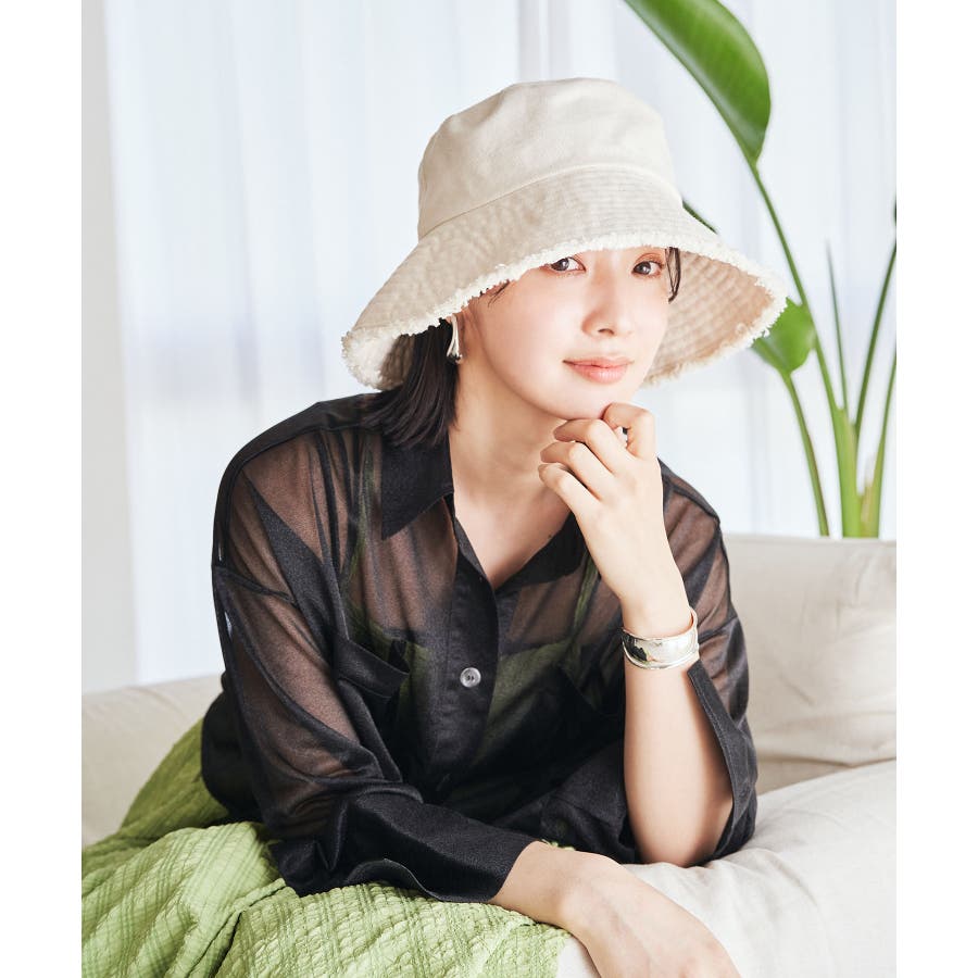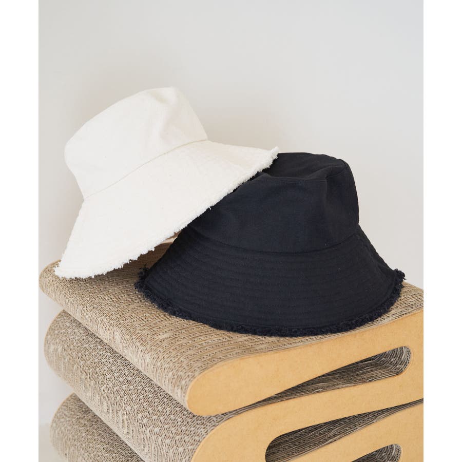 【デザイン・シルエット】 キャンバス素材のつば広ハットです。 つばの先端をフリンジ加工することで軽やかな雰囲気に仕上げております。 つばにワイヤーが入っているので、お好きな形に変形させることができます。