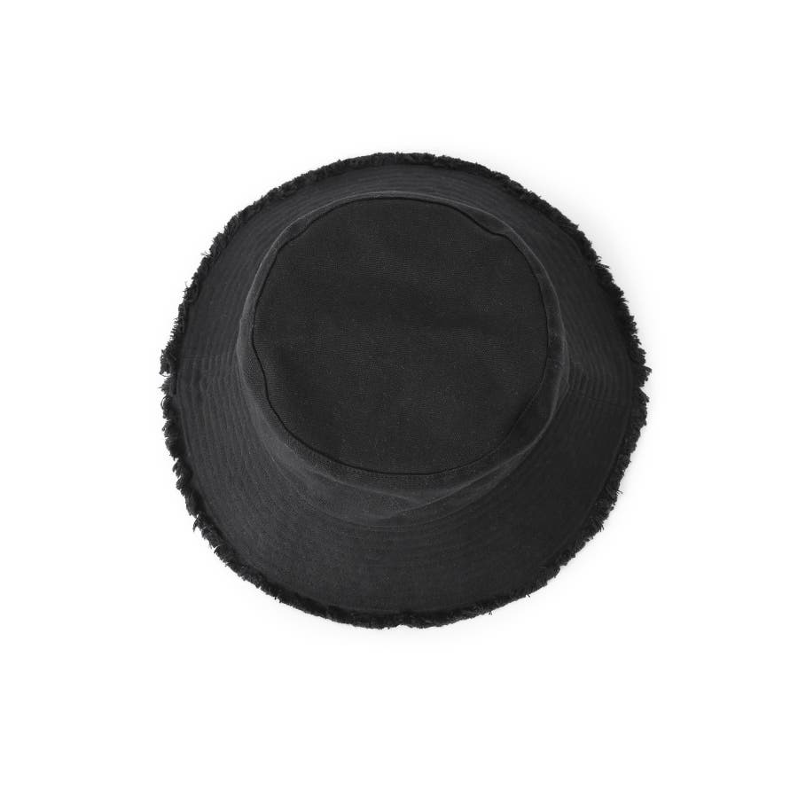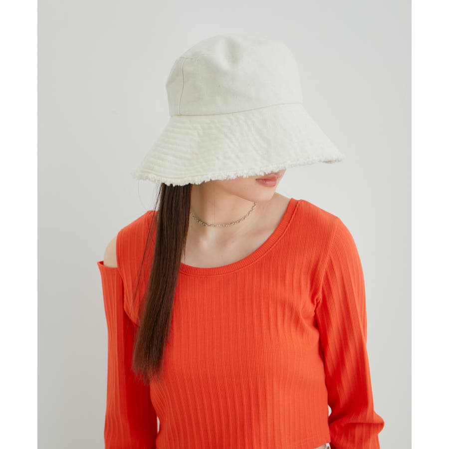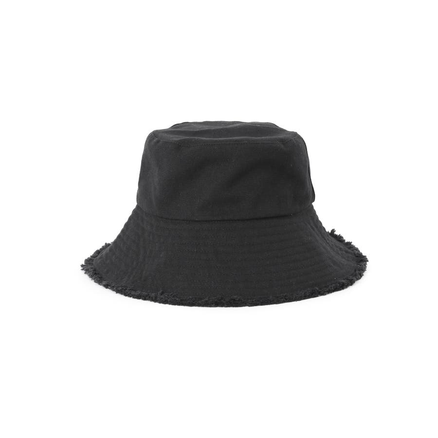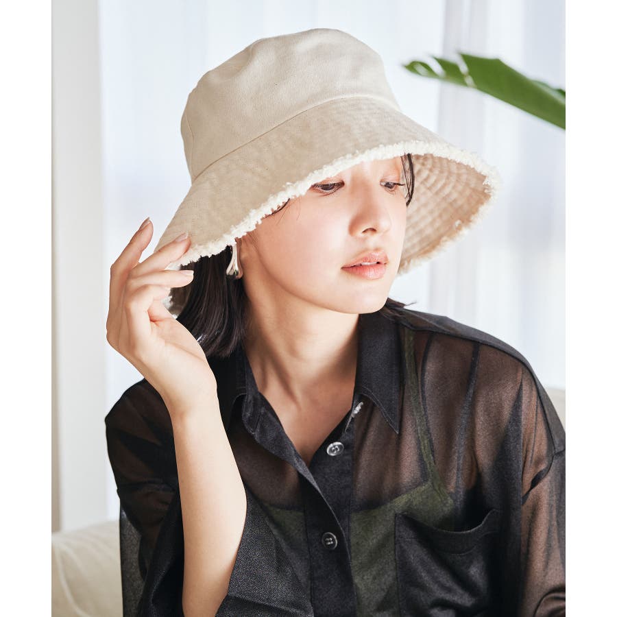 【デザイン・シルエット】 キャンバス素材のつば広ハットです。 つばの先端をフリンジ加工することで軽やかな雰囲気に仕上げております。 つばにワイヤーが入っているので、お好きな形に変形させることができます。
