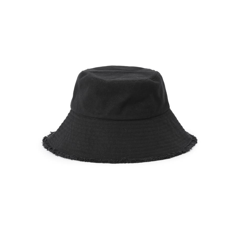 【デザイン・シルエット】 キャンバス素材のつば広ハットです。 つばの先端をフリンジ加工することで軽やかな雰囲気に仕上げております。 つばにワイヤーが入っているので、お好きな形に変形させることができます。 ・サイズ調整可能 ・抗菌防臭の汗止めテープつき ・内側は蒸れを軽減してくれるメッシュを使用 ・顎紐ループつきで、お手持ちの紐をつけていただく事が出来ます ・折りたたんで持ち運びも可能 【カラー】 合わせやすいブラックとアイボリーの2色展開。