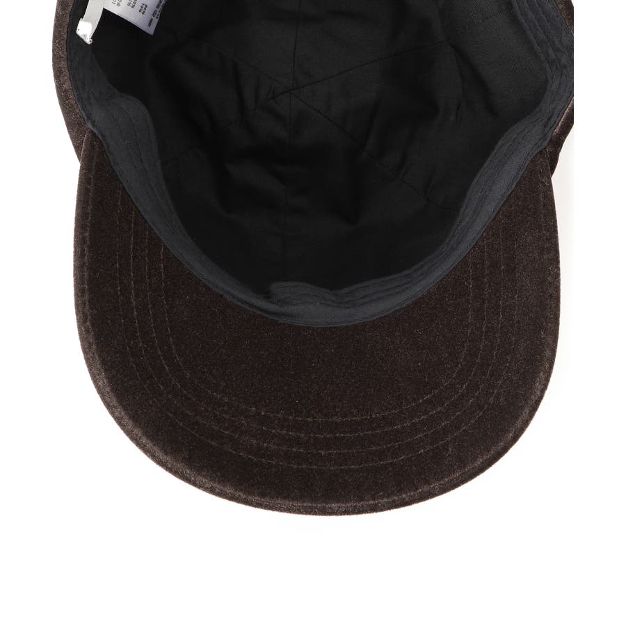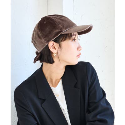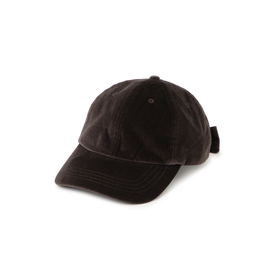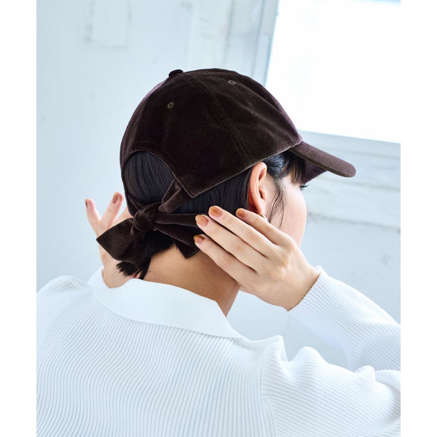ベーシックな6パネルキャップをベースにしたフェミニンアレンジしたベロア素材のキャップ。ベロアの柔らかな質感と上品な光沢が特徴です。バックのリボンが女性らしいアクセントに。