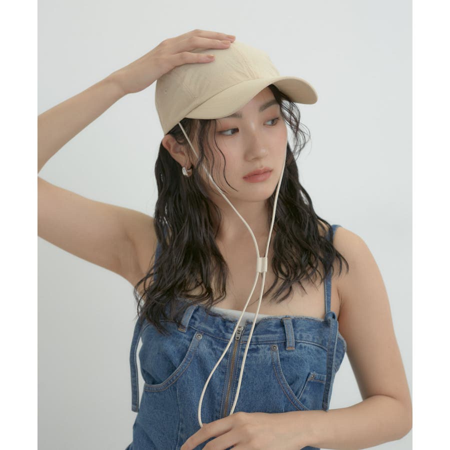 ◆2024春夏◆ 【デザイン・シルエット】 撥水加工を施した、雨の日や水辺でも活躍するキャップです。 汗止めテープ部分に抗菌防臭加工を施し、汗をかく時期とくにおすすめ! デザインポイントのコードも留め位置を調節出来るので、風が強い日や自転車移動時にも使えます。 調節部分はゴムになっており、調節する手間がはぶけるのもうれしいです。 コーデに合わせやすいブラックとベージュの2色展開。 カジュアルすぎず、きれいめなキャップなのでシンプルなワンピースやデニムスタイルにもマッチします。 ※画像の商品はサンプルです。 実際の商品と仕様、加工、サイズが若干異なる場合がございます。