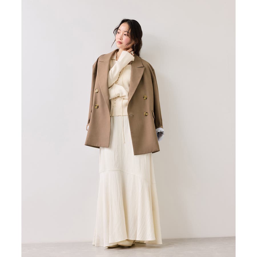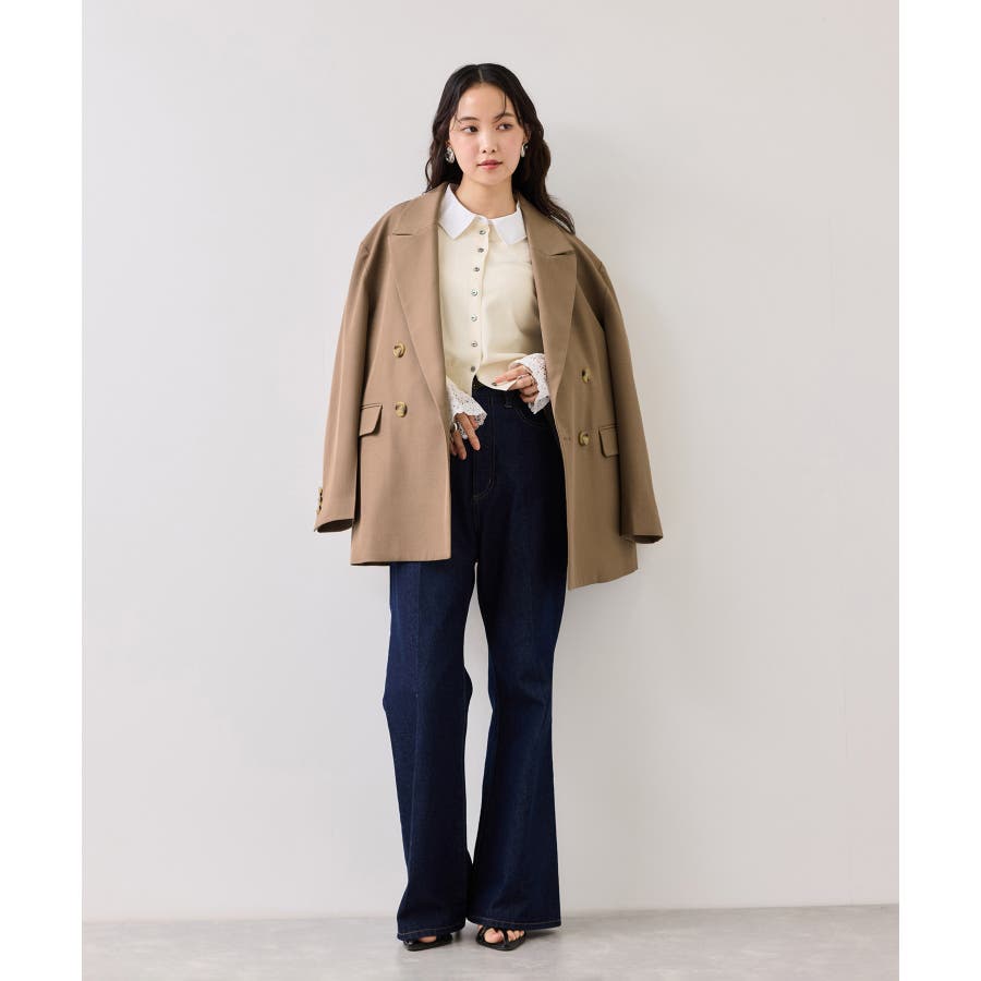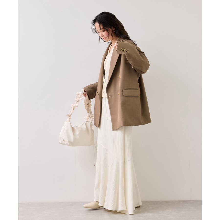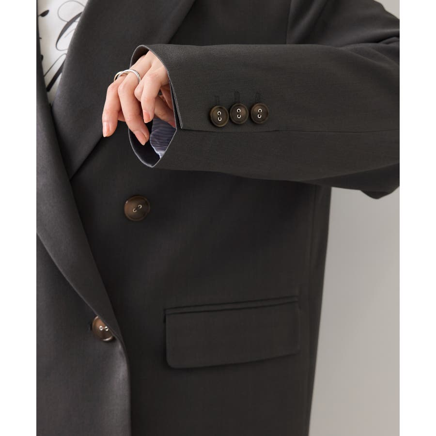 今年はダブルブレストジャケットのままですが、ボタン止めは1つだけでボタン位置を上げて、腰位置を高めに見せれるようにデザインしました。さらっとした通年着れる素材感も◎