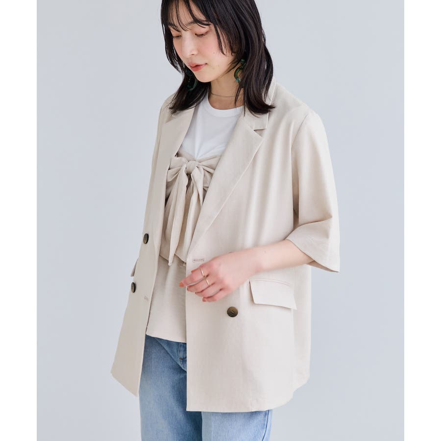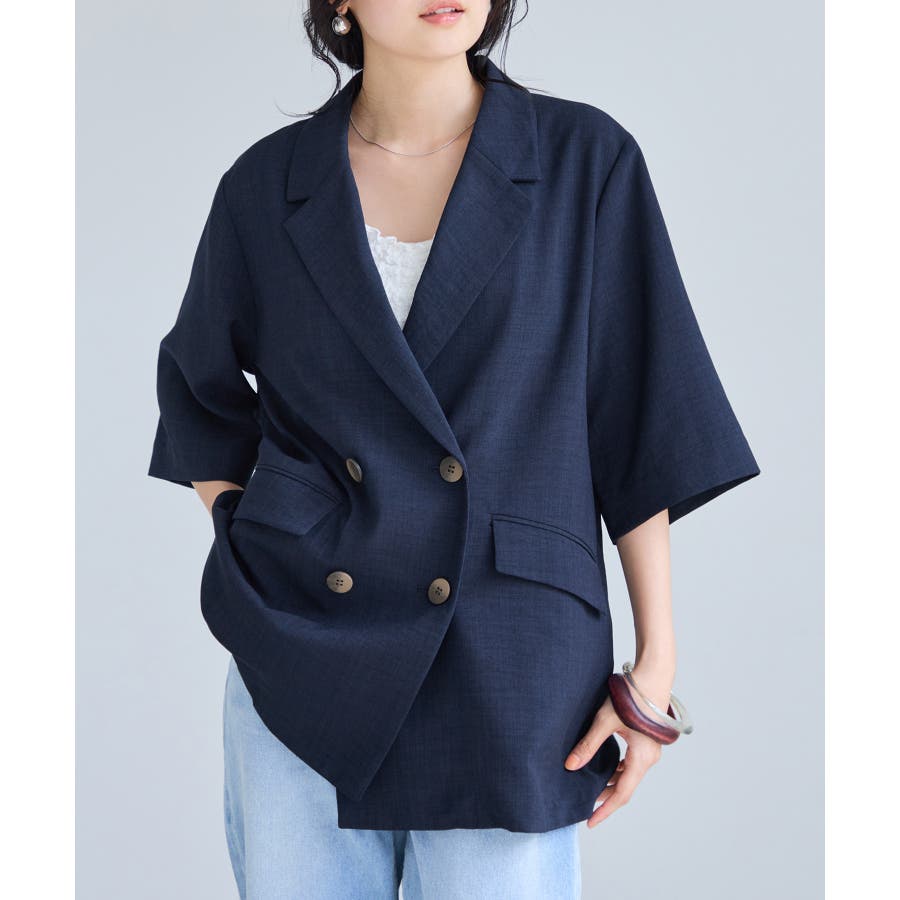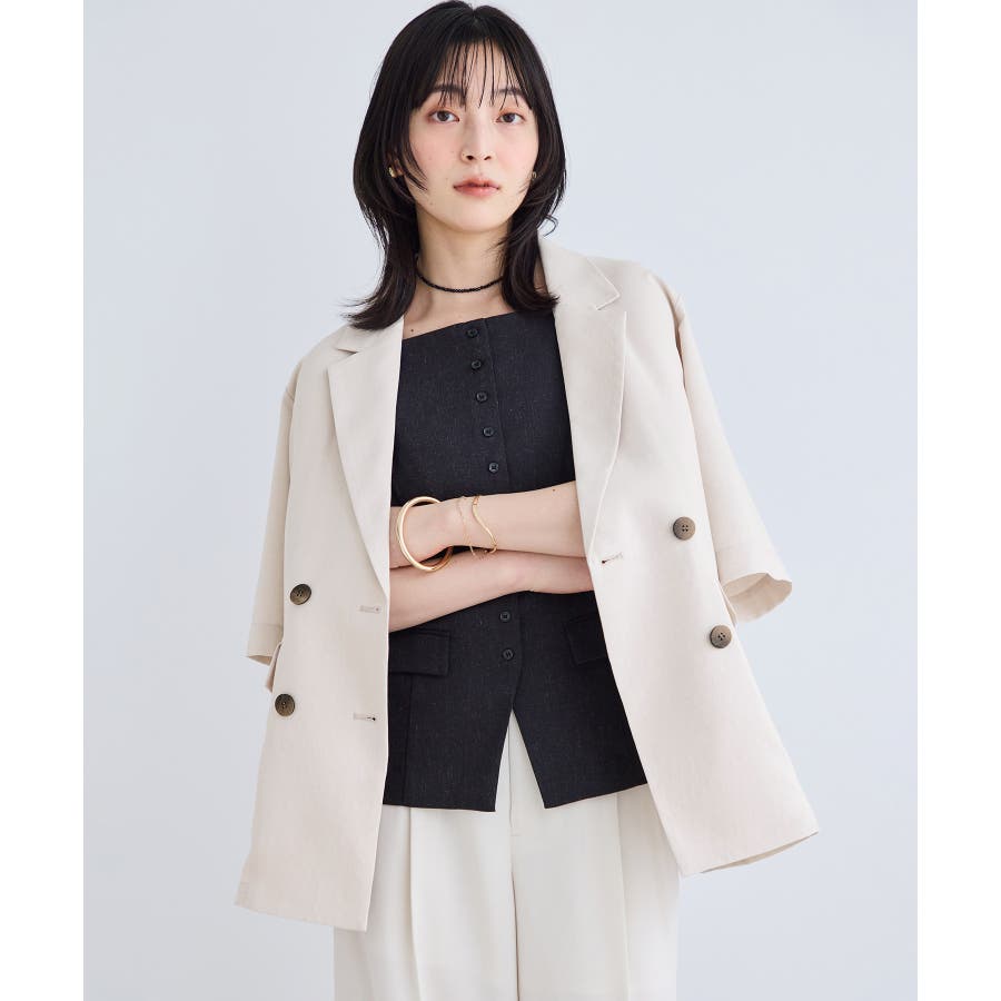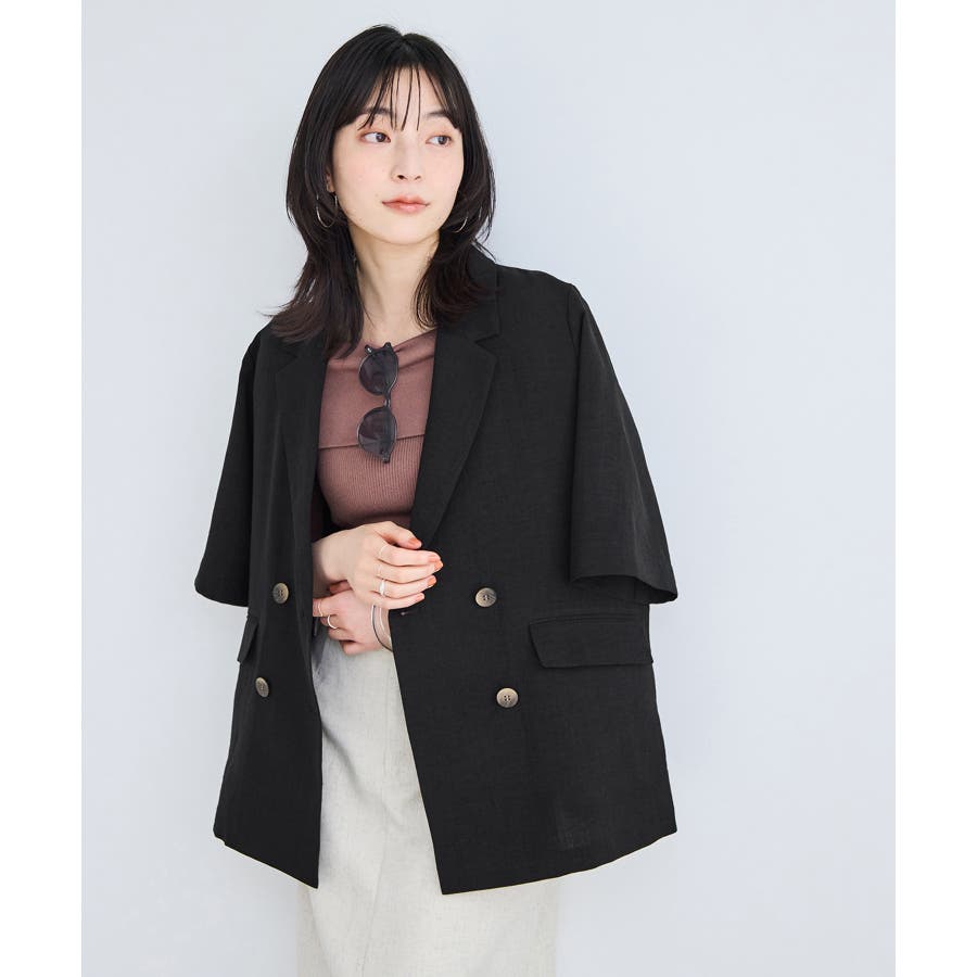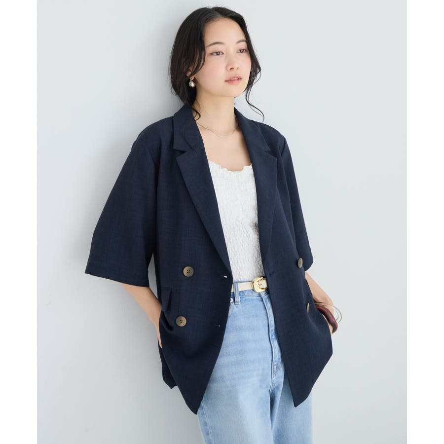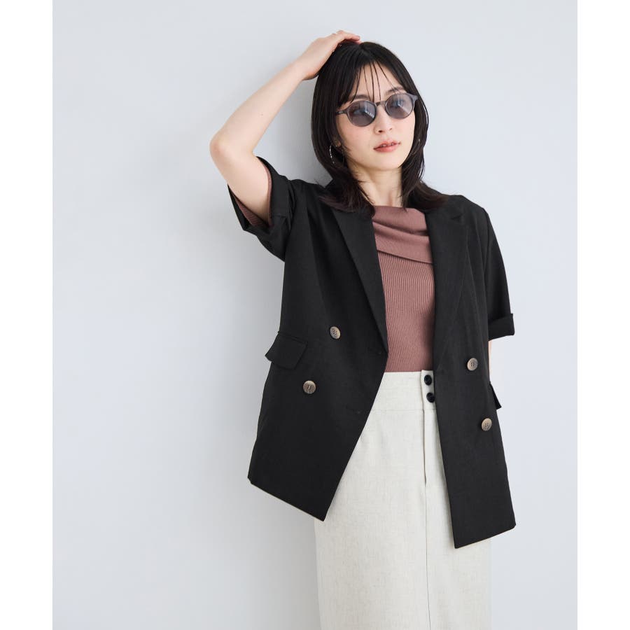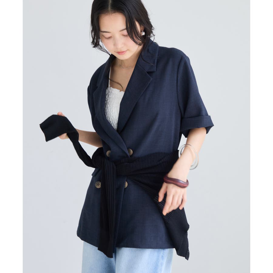 美easyリネンライクハーフスリーブダブルジャケット イージーケア 接触冷感