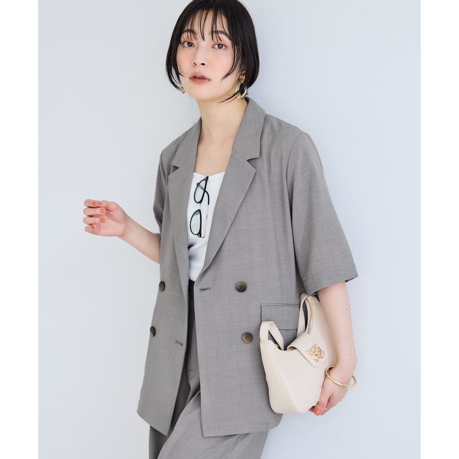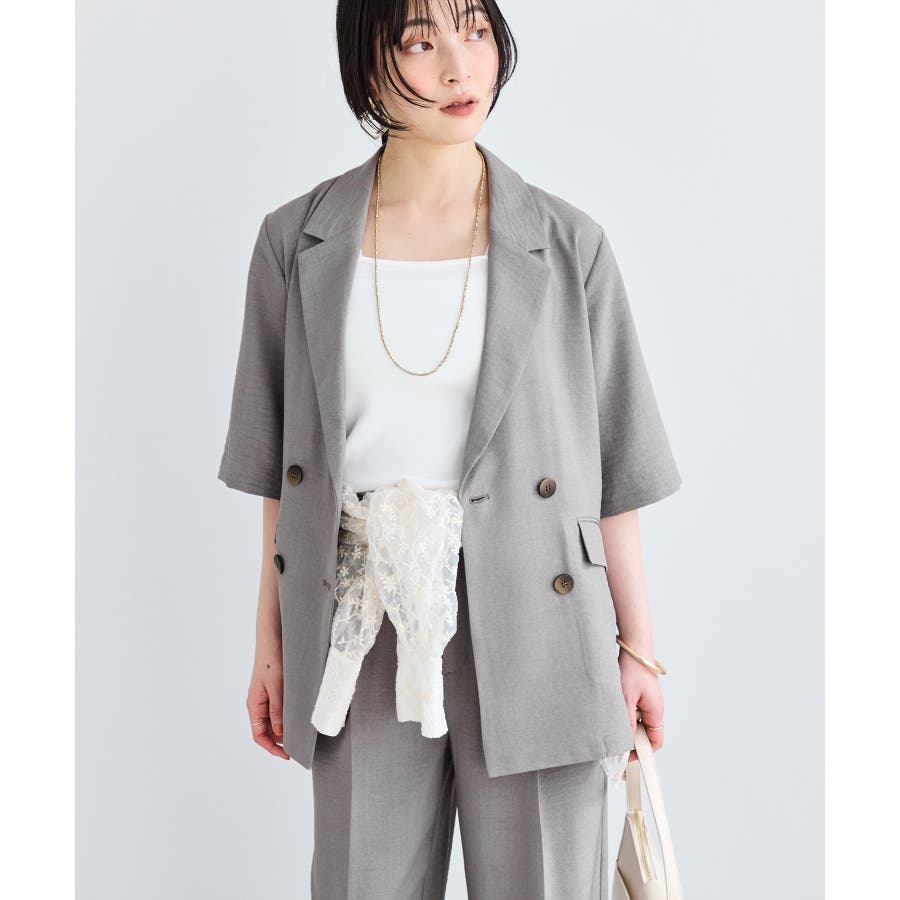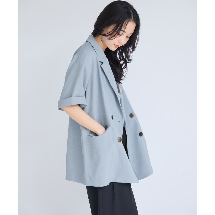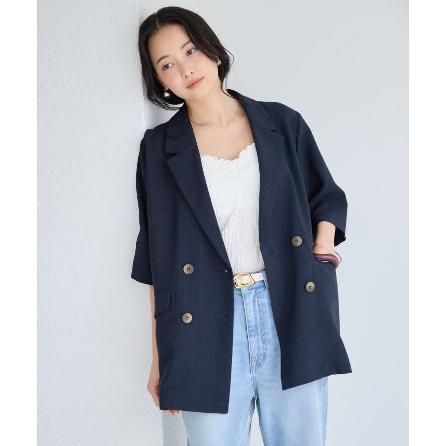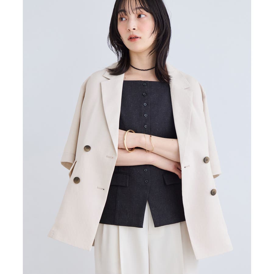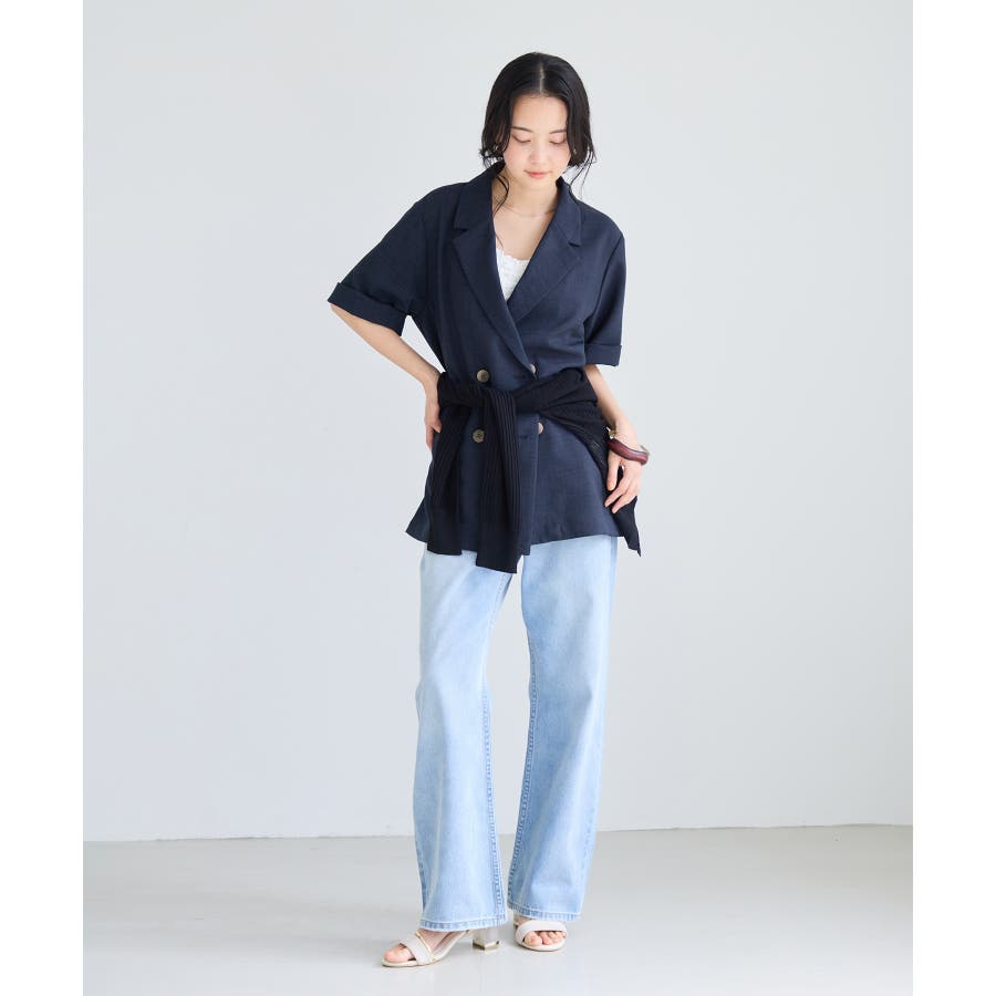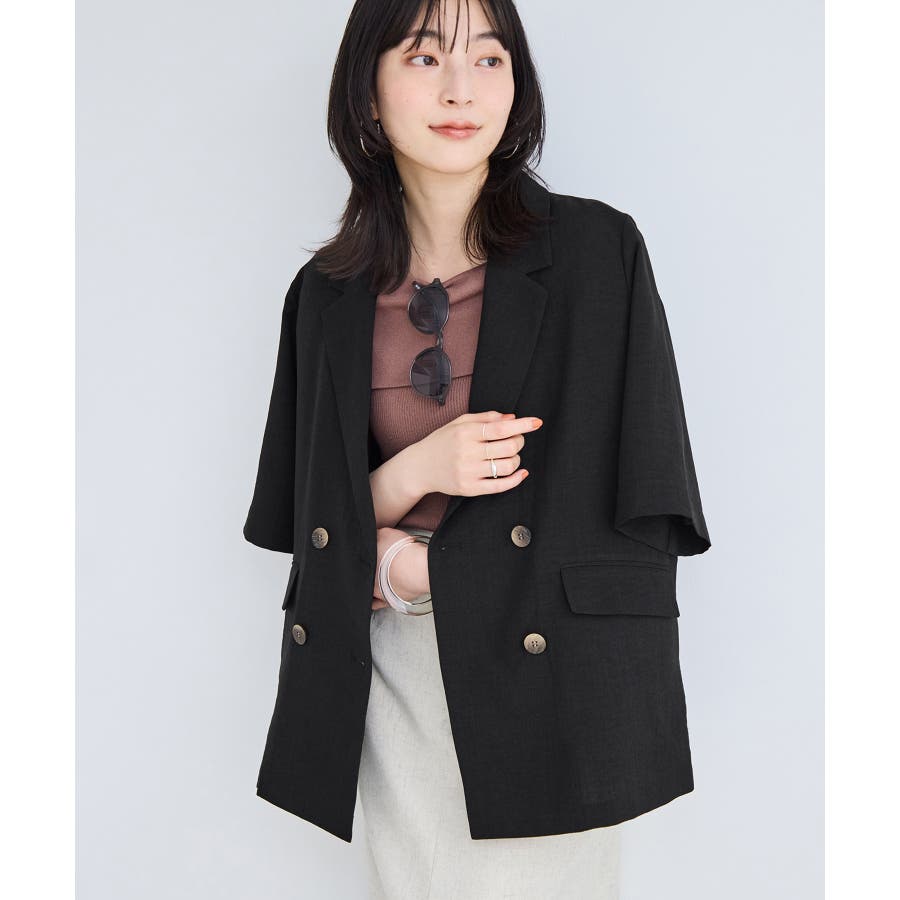 美easyリネンライクハーフスリーブダブルジャケット イージーケア 接触冷感