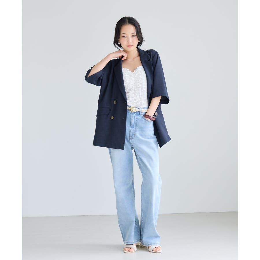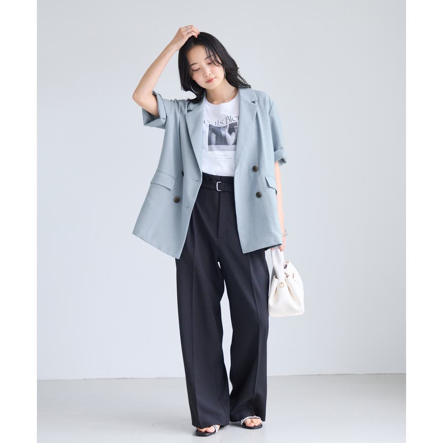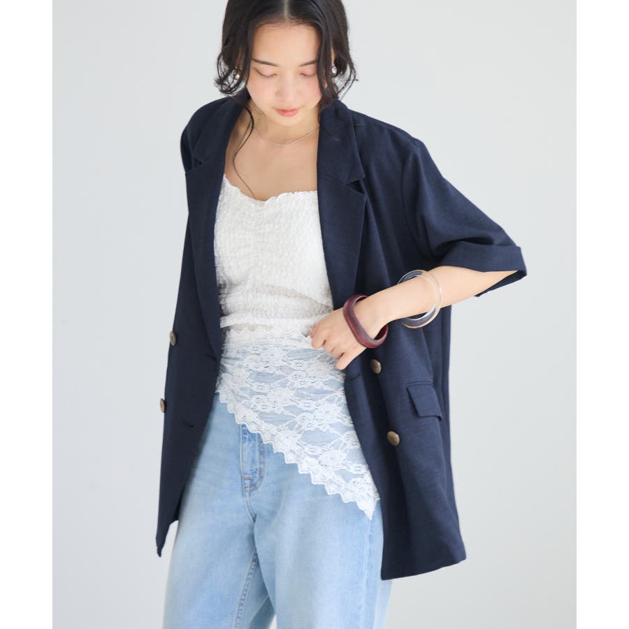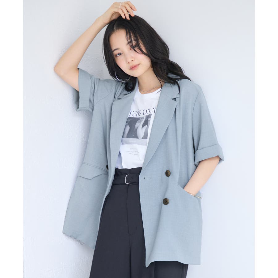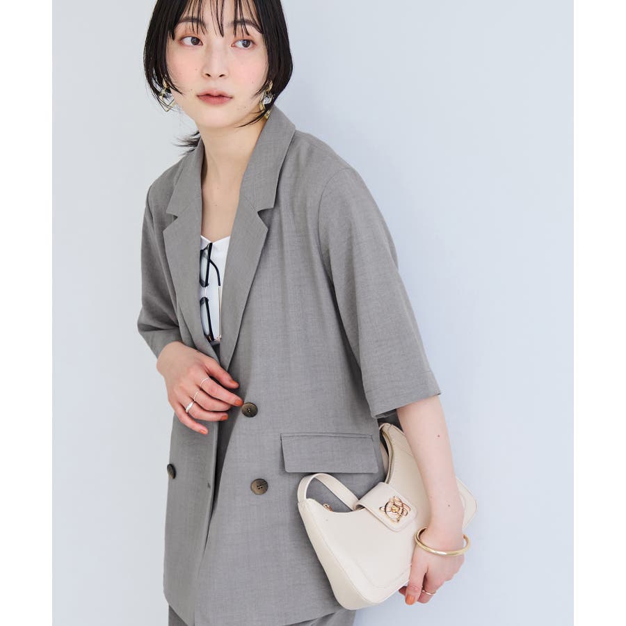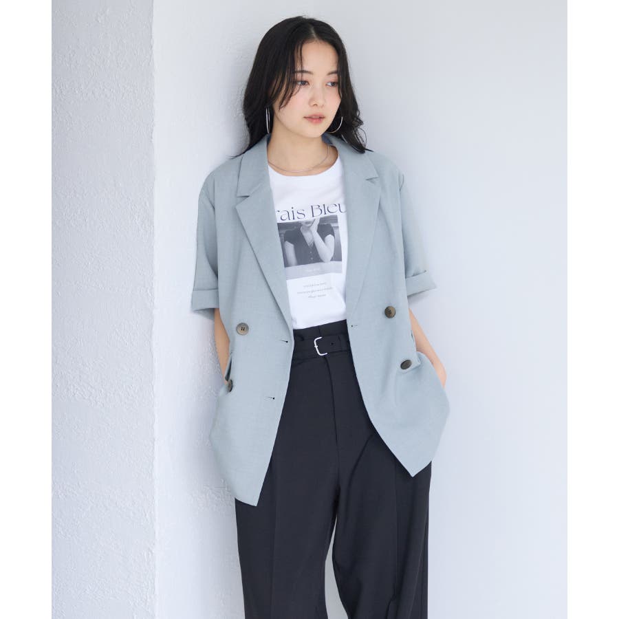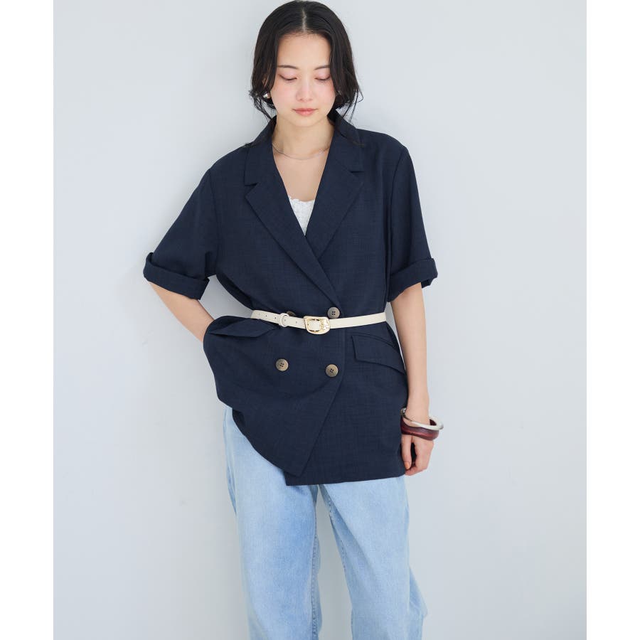 美easyリネンライクハーフスリーブダブルジャケット イージーケア 接触冷感