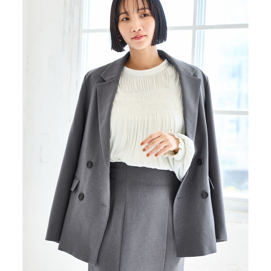 オンオフ使えるスタンダードなシルエットのダブルブレストテーラードジャケットです。
