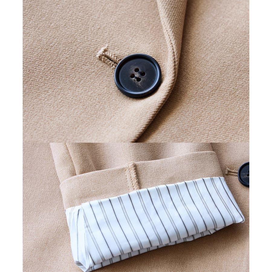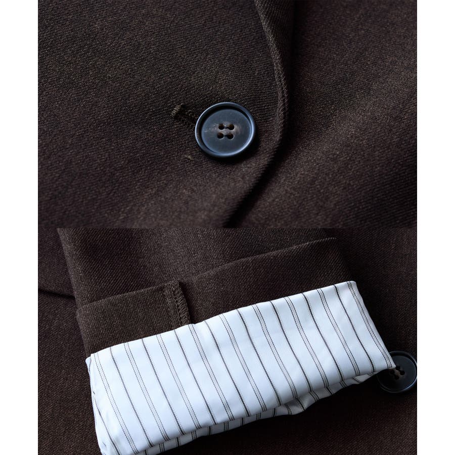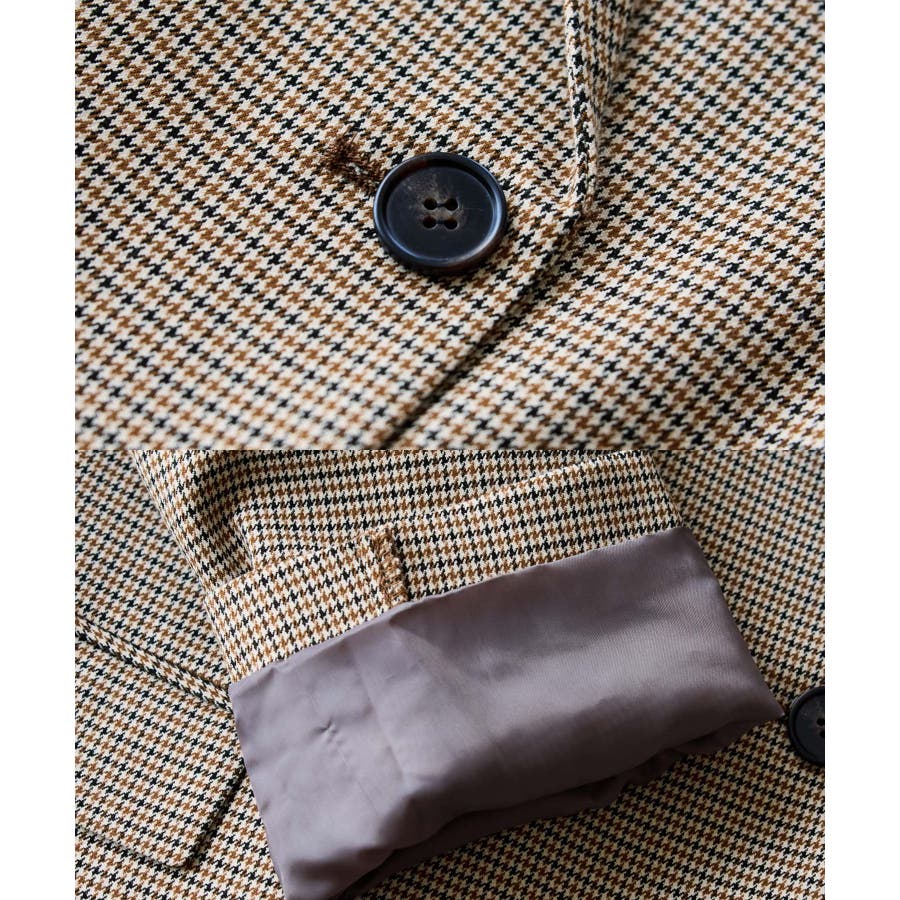 今シーズンでは、釦をマーブル釦で、裏地は白ベースのストライプ柄(表地がチェック柄以外)で高見えするジャケットに仕上げています。