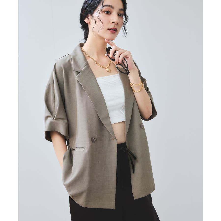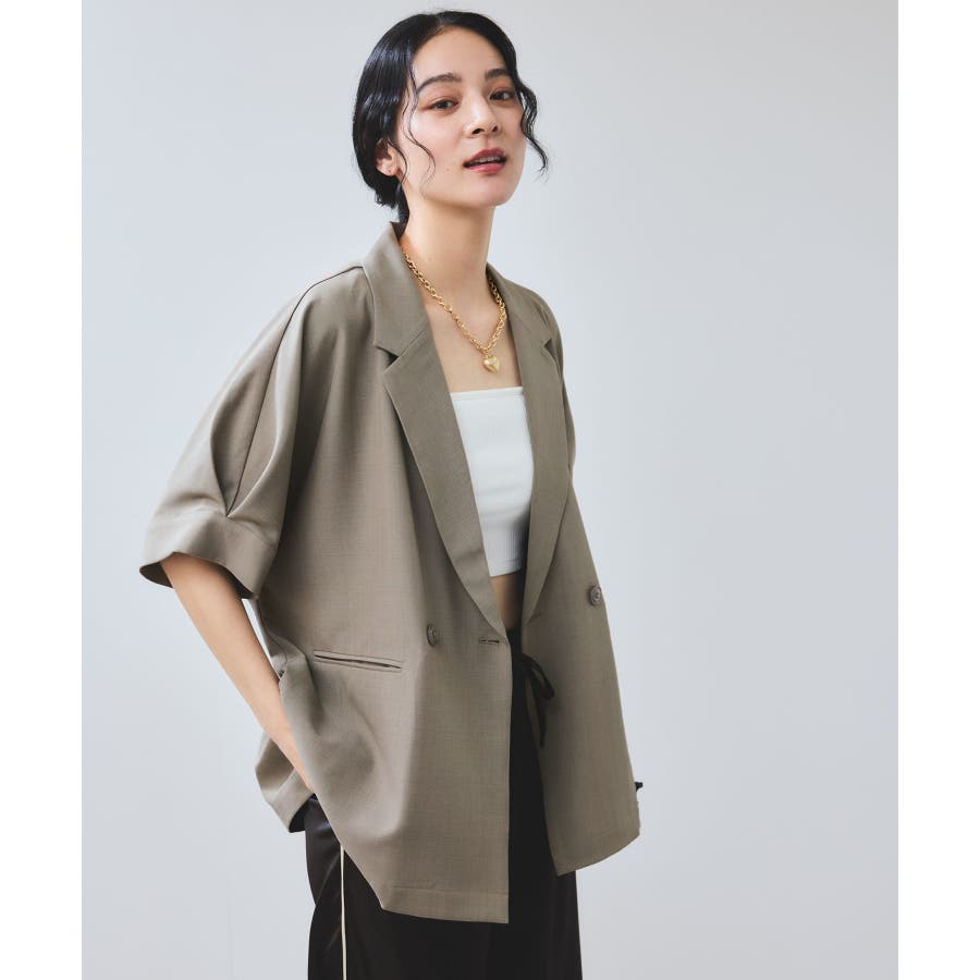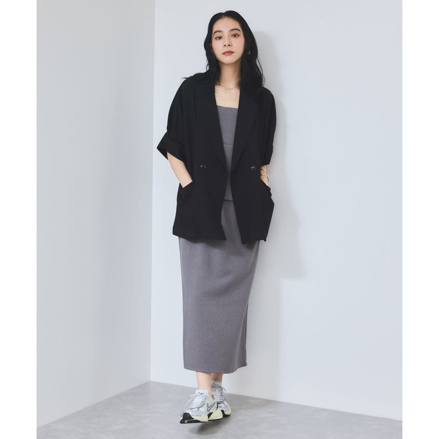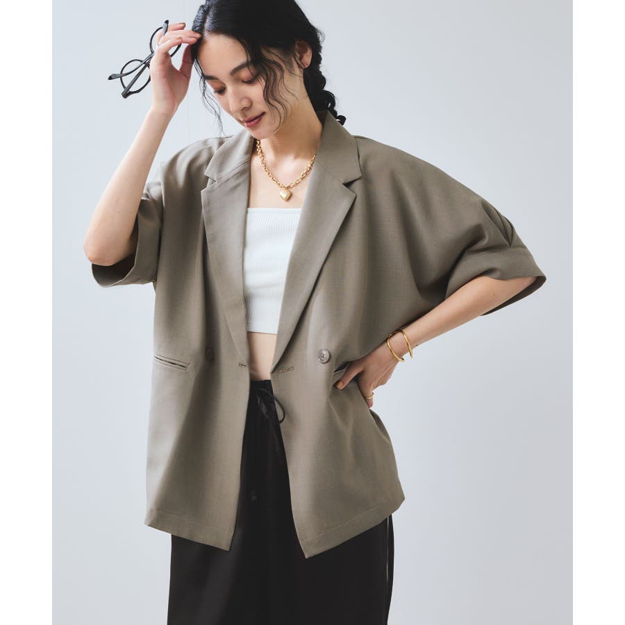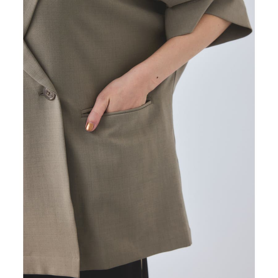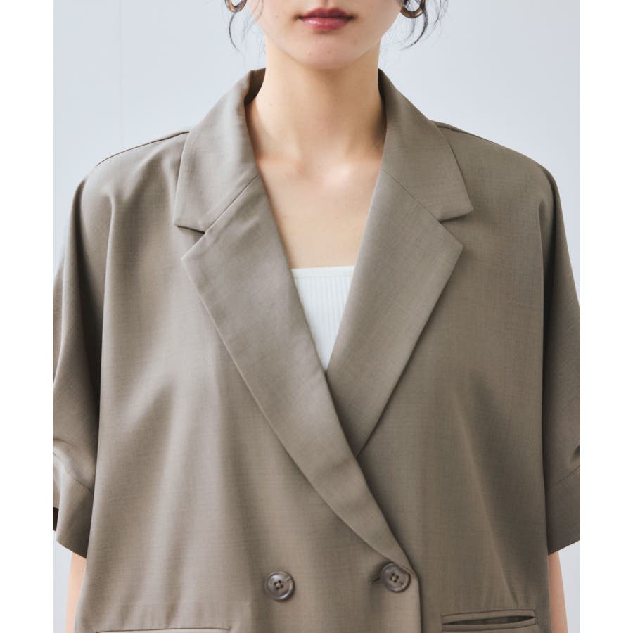 ヒップまで隠れるやや長めの丈感と、ダブルジャケット仕様で程よいきちんと感を演出。