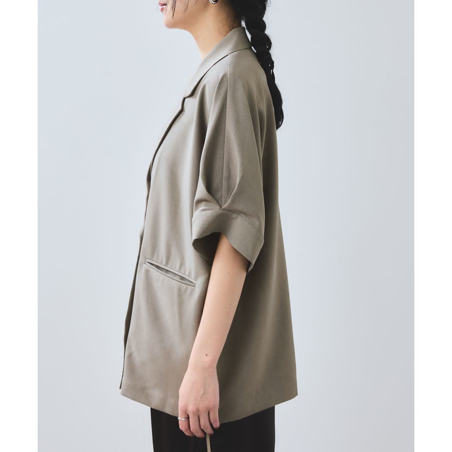 さらっと軽く、ドライな質感で夏~秋口までロングシーズン活躍。ほんのり表情のある生地感で、シンプルながらも雰囲気のある表情に。裏地なしでも肌離れがよく、軽快な着心地です。
