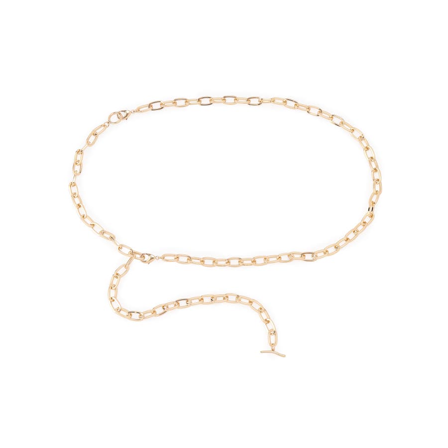 【デザイン・シルエット】 シンプルで使いやすいチェーンベルト。 じゃらっと垂らすデザインで、ウェストに合わせて引っかけ金具でお好きな位置のお留めいただけます。 2本のチェーンが繋がった仕様のため、切り離すことでネックレスとしてもお使いいただけるマルチな仕様となっております。 デニムにはもちろん、ウェストマークしたい時におすすめです。 【カラー】 ゴールド・シルバーの2色展開。 ※画像の商品はサンプルです。 実際の商品と仕様、加工、サイズが若干異なる場合がございます。