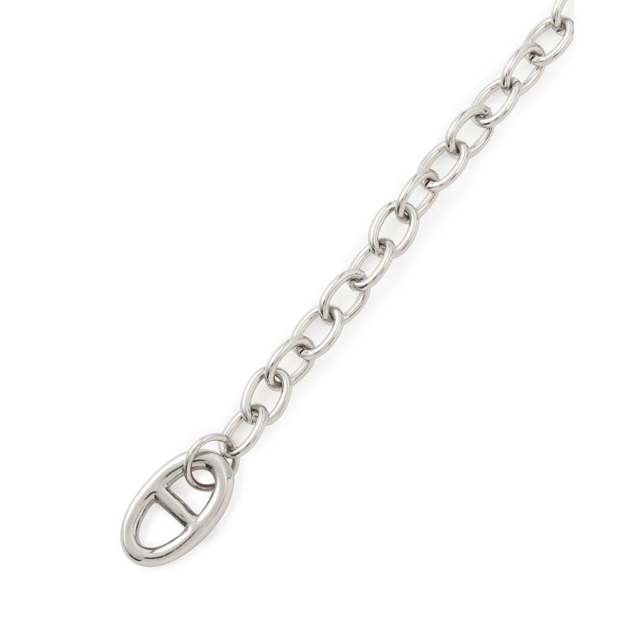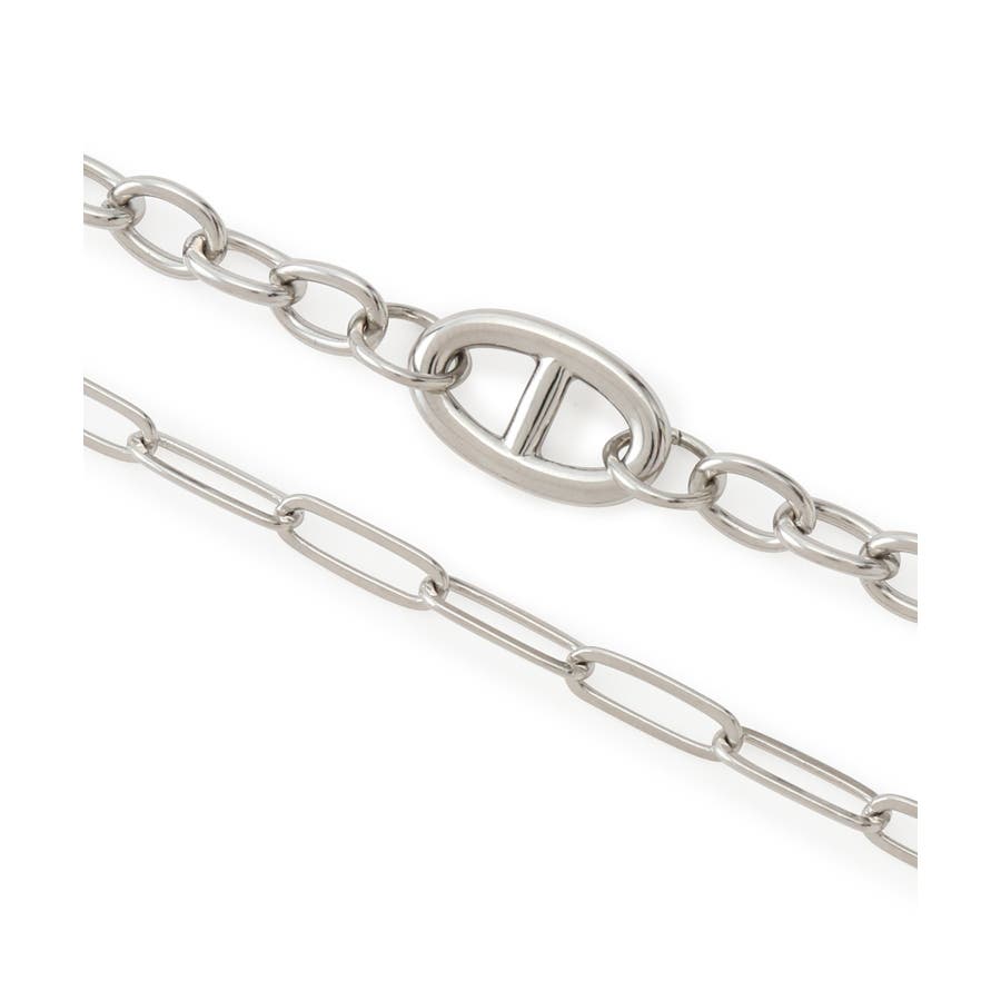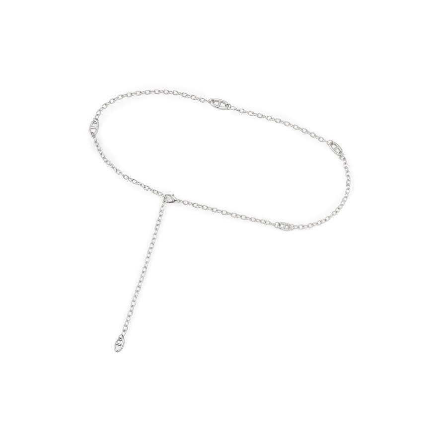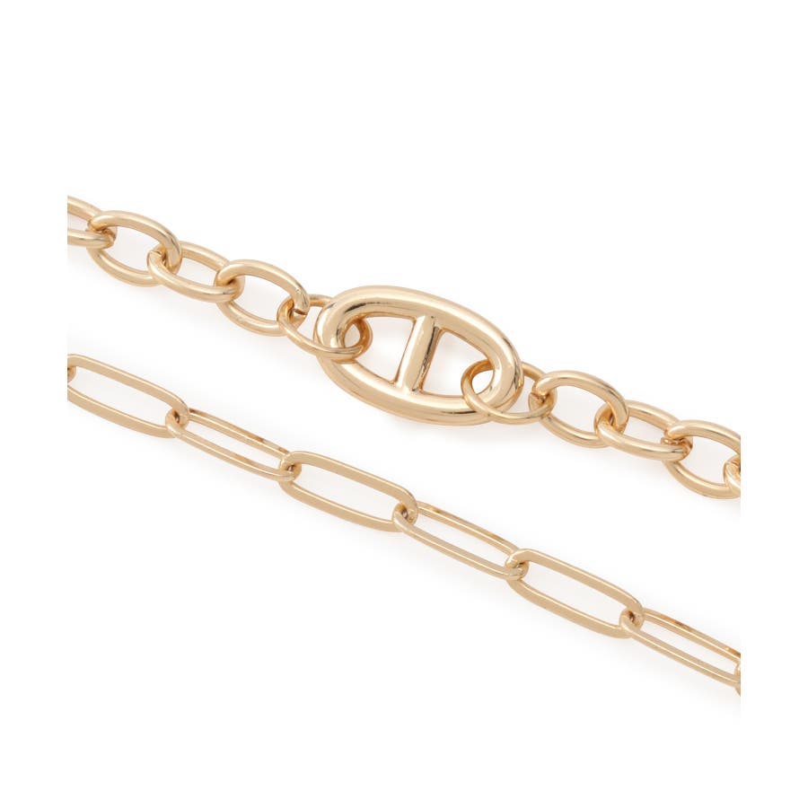 ◆2024春夏◆ 【デザイン・シルエット】 レイヤードデザインのチェーンベルト。 じゃらっと垂らすデザインで、ウェストに合わせて引っかけ金具でお好きな位置のお留めいただけます。2種類のチェーンでウェスト周りにメリハリが出て、先端にもデザインパーツが付いているので垂らした時のワンポイントになります。レイヤードチェーンは単体でもネックレスとしてご使用いただけるマルチウェイとなっております。 デニムにざっくりと合わせていただくのがおすすめです。 【カラー】 シルバーとゴールドの2色展開。