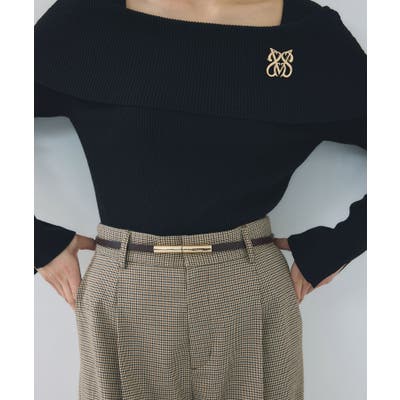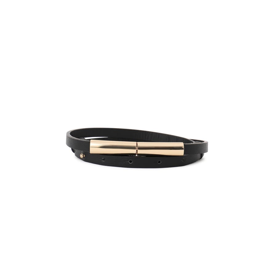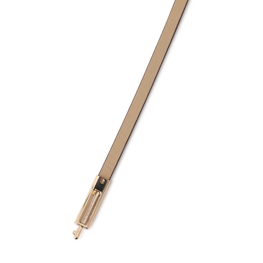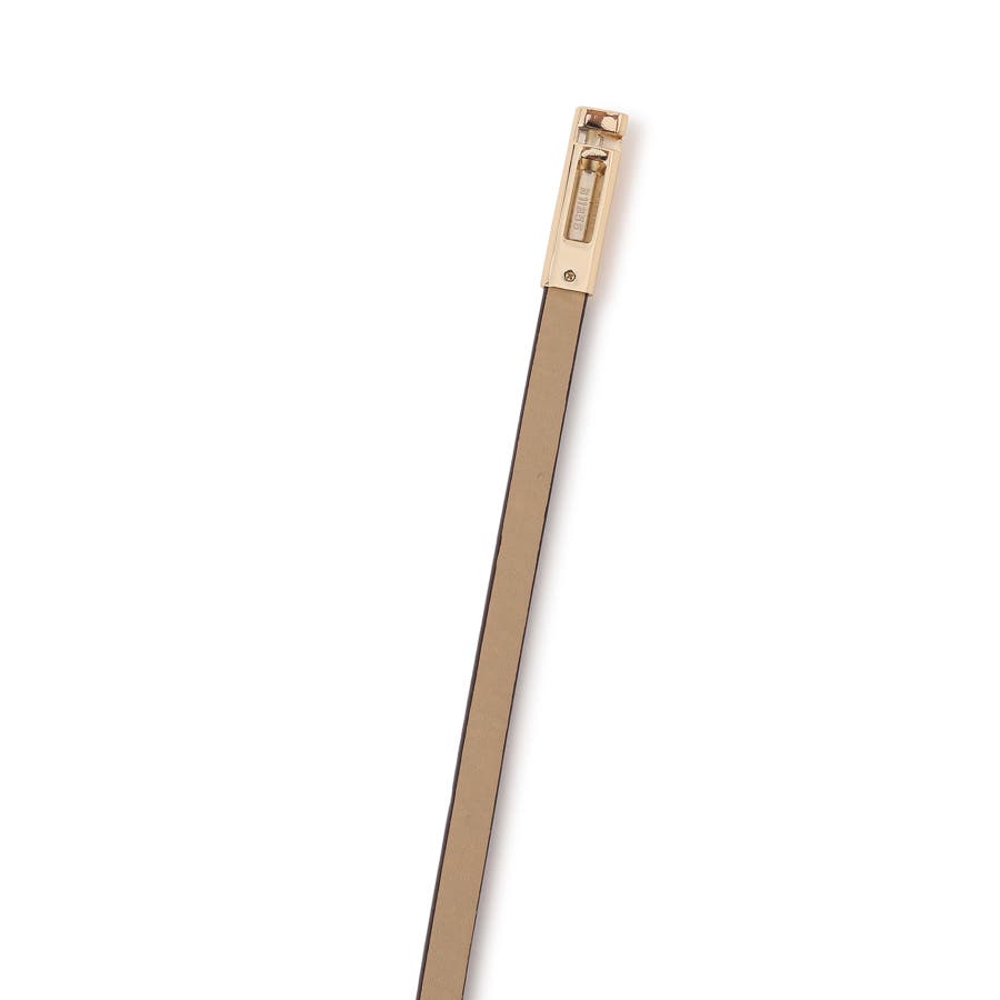 ゴールドのバックルデザインがさりげないアクセントになり、高級感をプラスするナローベルト。
