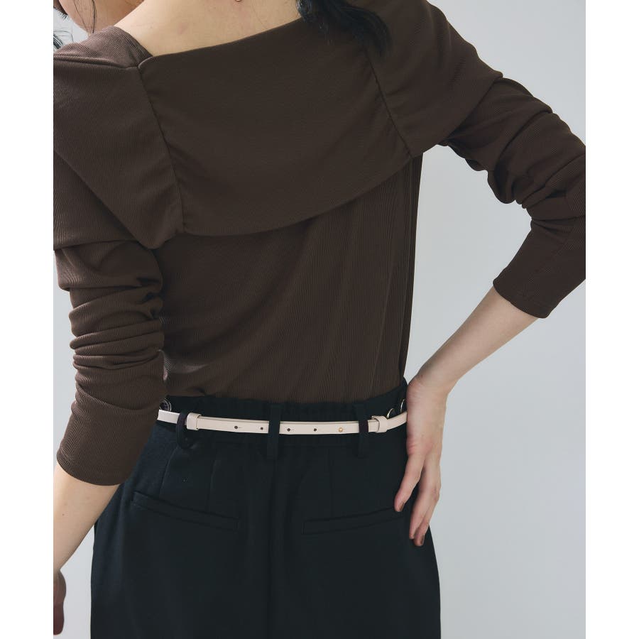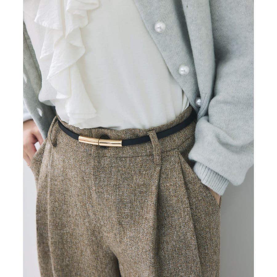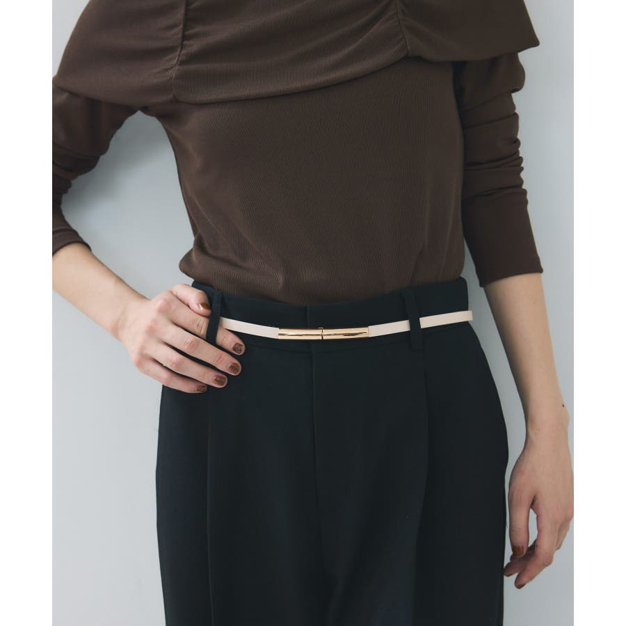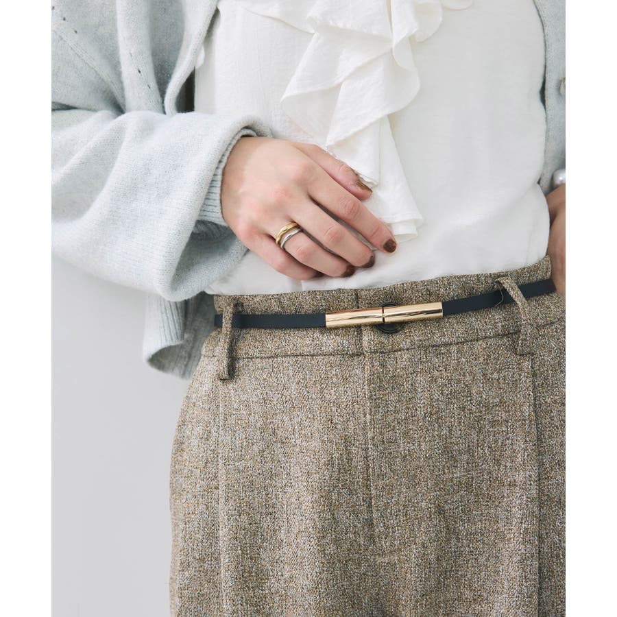 華奢なナローベルトでウエストを引き締め、アクセサリーのようなアクセントに。